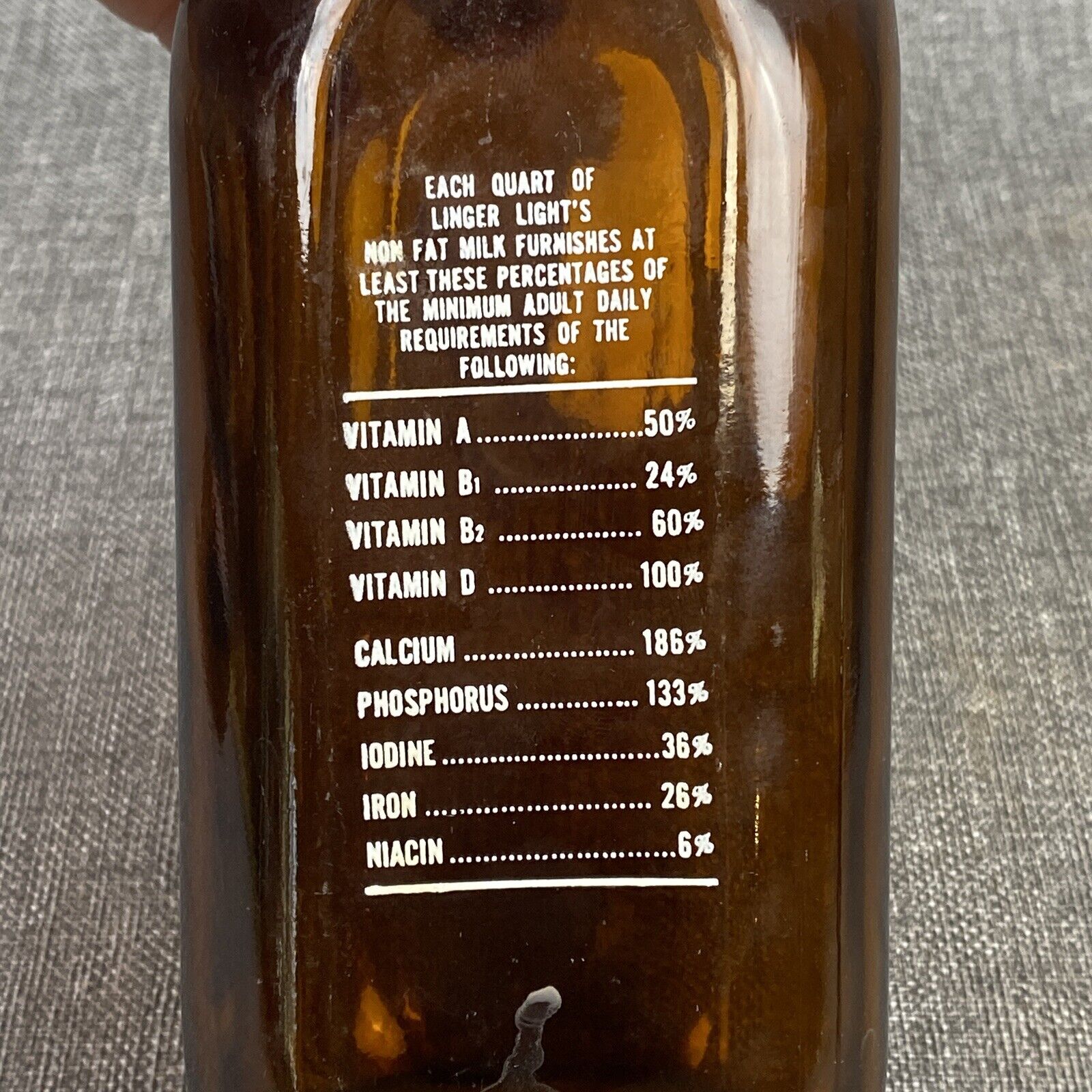 Linger Light Dairy Farm Amber Milk Bottle New Castle PA Vintage Quart
