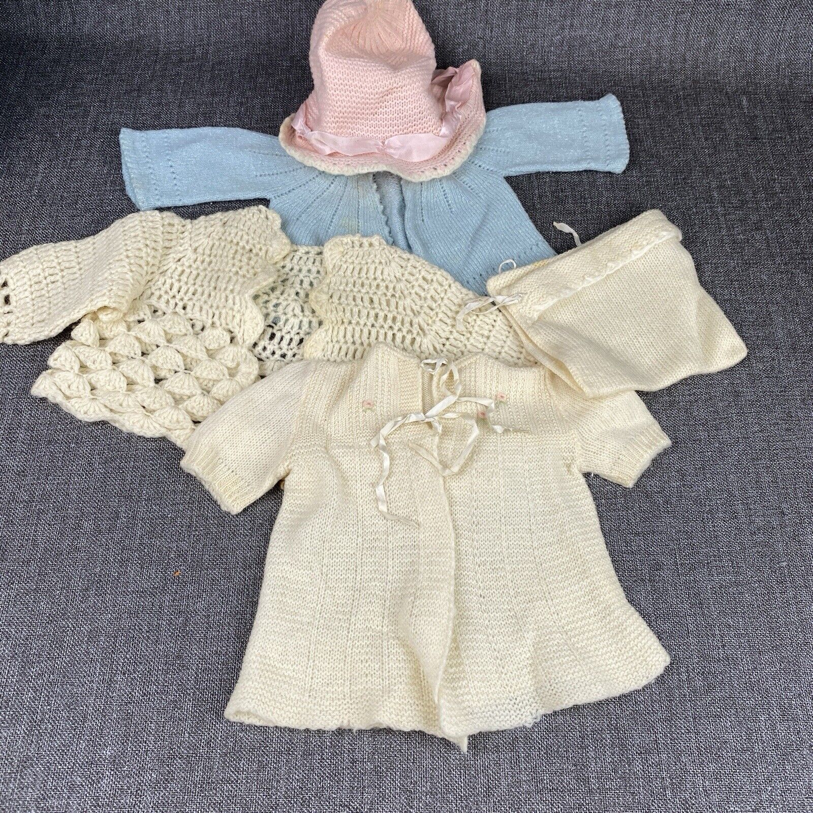 Lot Knitted Crocheted Baby Doll Infant Clothes Sweater Hats Vtg Handmade