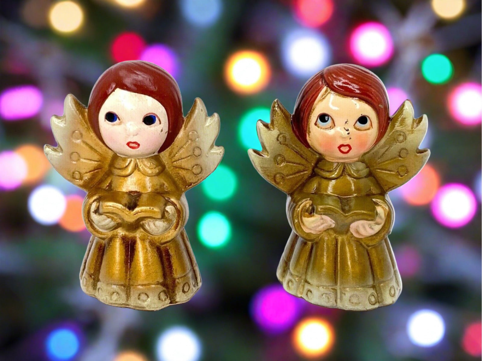 Lot of 2 Vintage Singing Angels Christmas Figurine Ornament