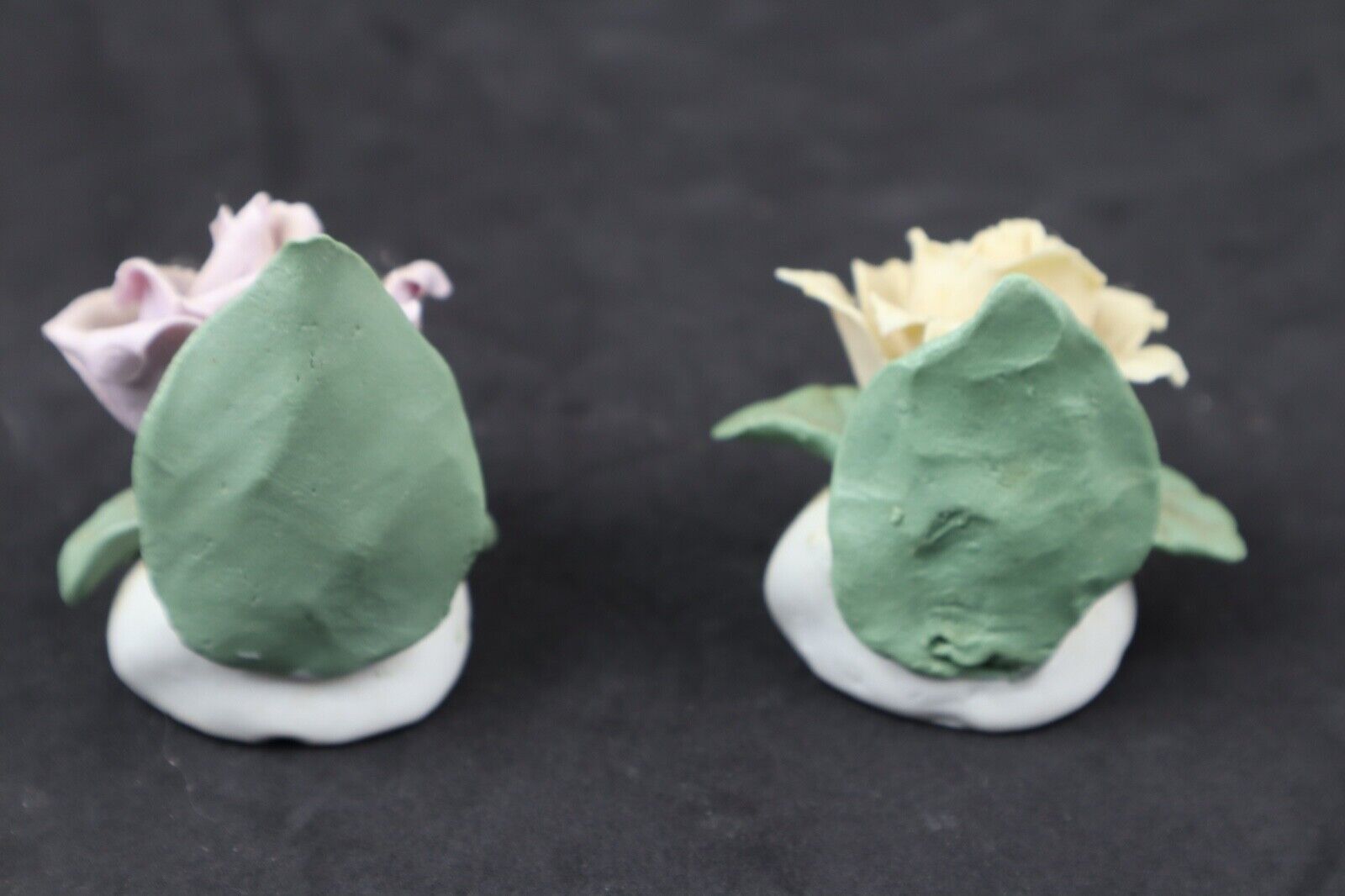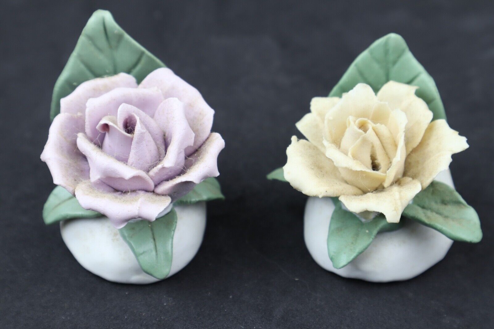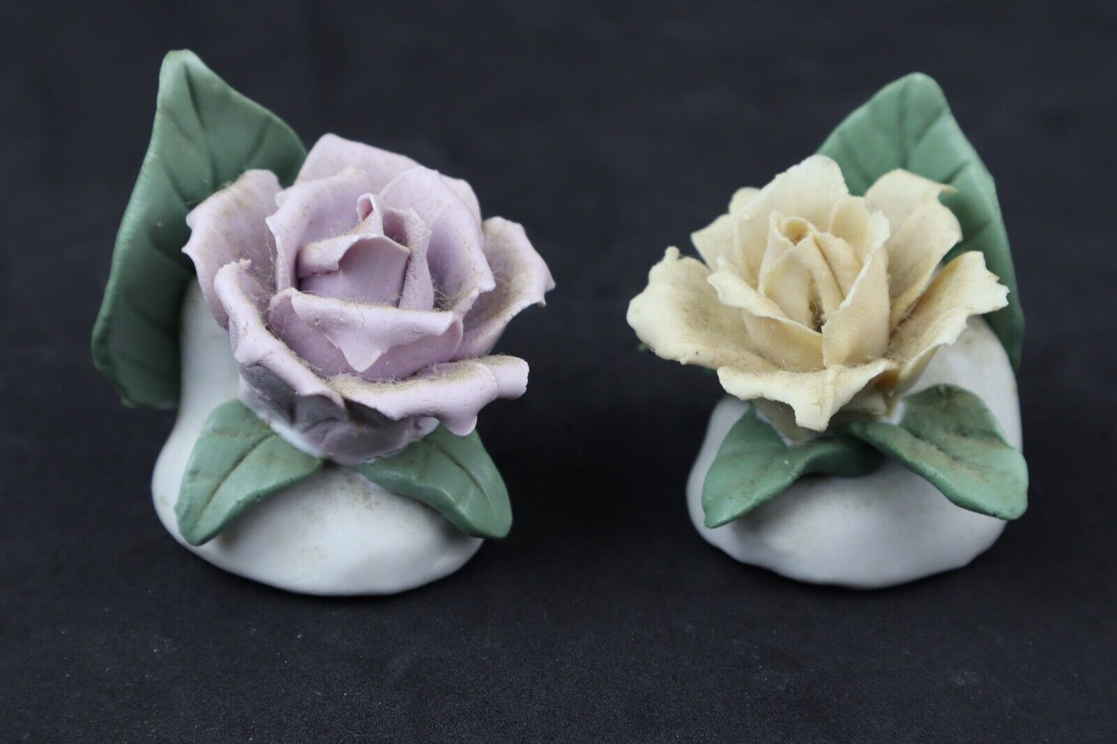 Lot of 2 - Vintage Style Handmade Dusky Yellow / Mauve (Pink) Roses Flower Clay