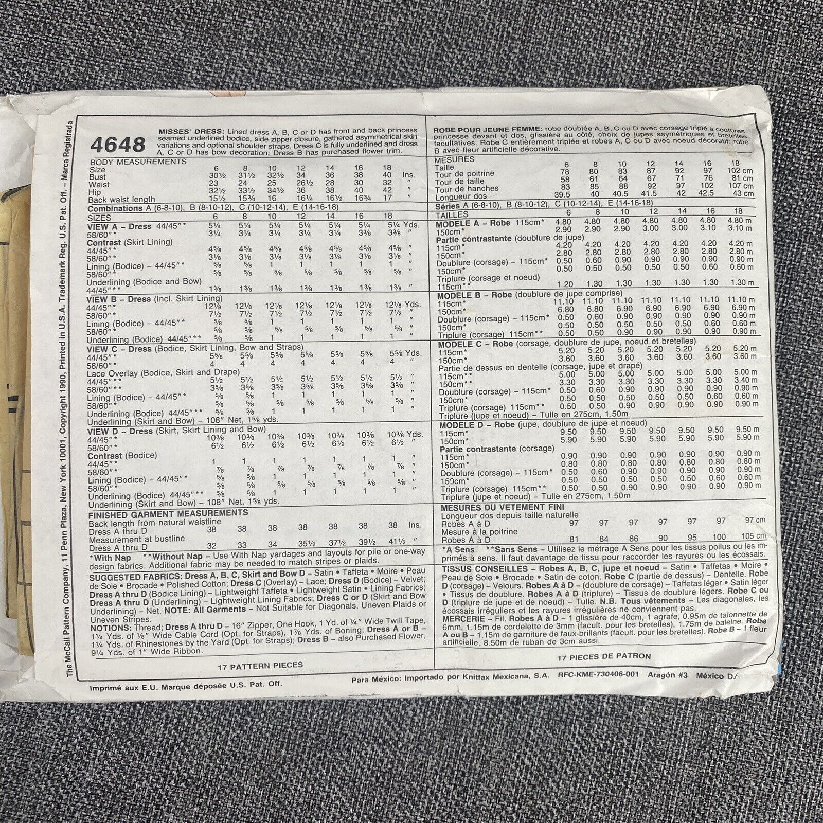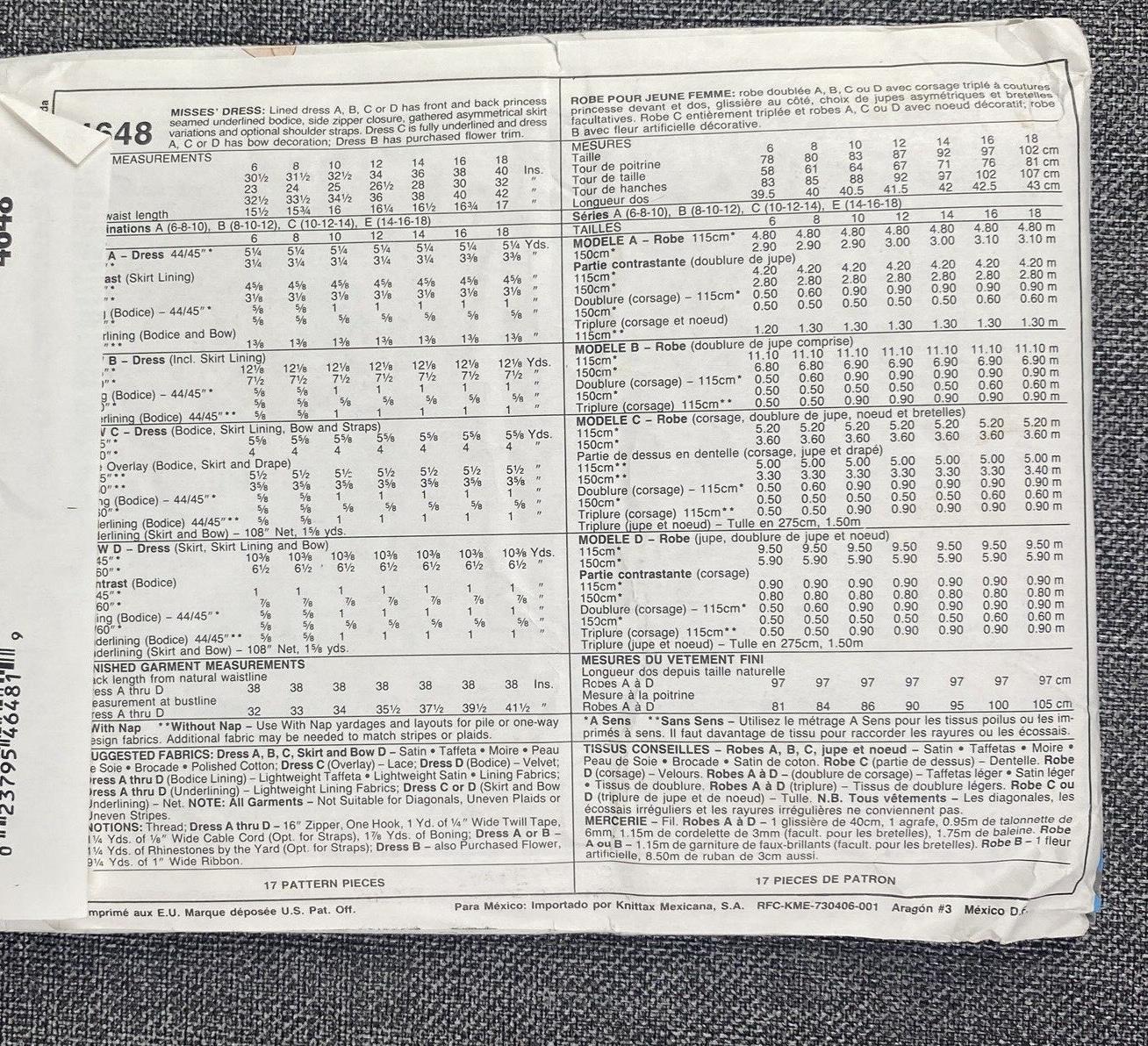 McCall's 4648 Misses Sewing Pattern Size Tall A 6, 8, 10 UnCut