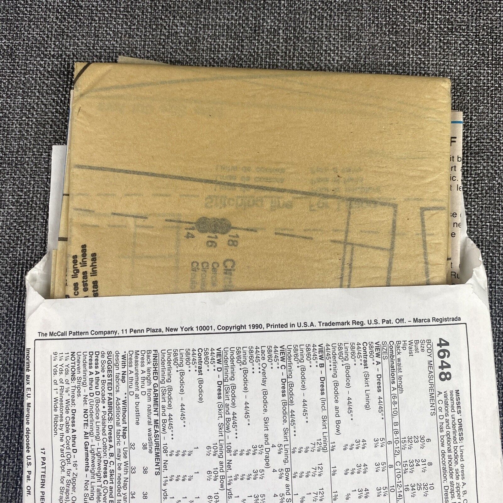 McCall's 4648 Misses Sewing Pattern Size Tall E 14, 16, 18 UnCut 1990