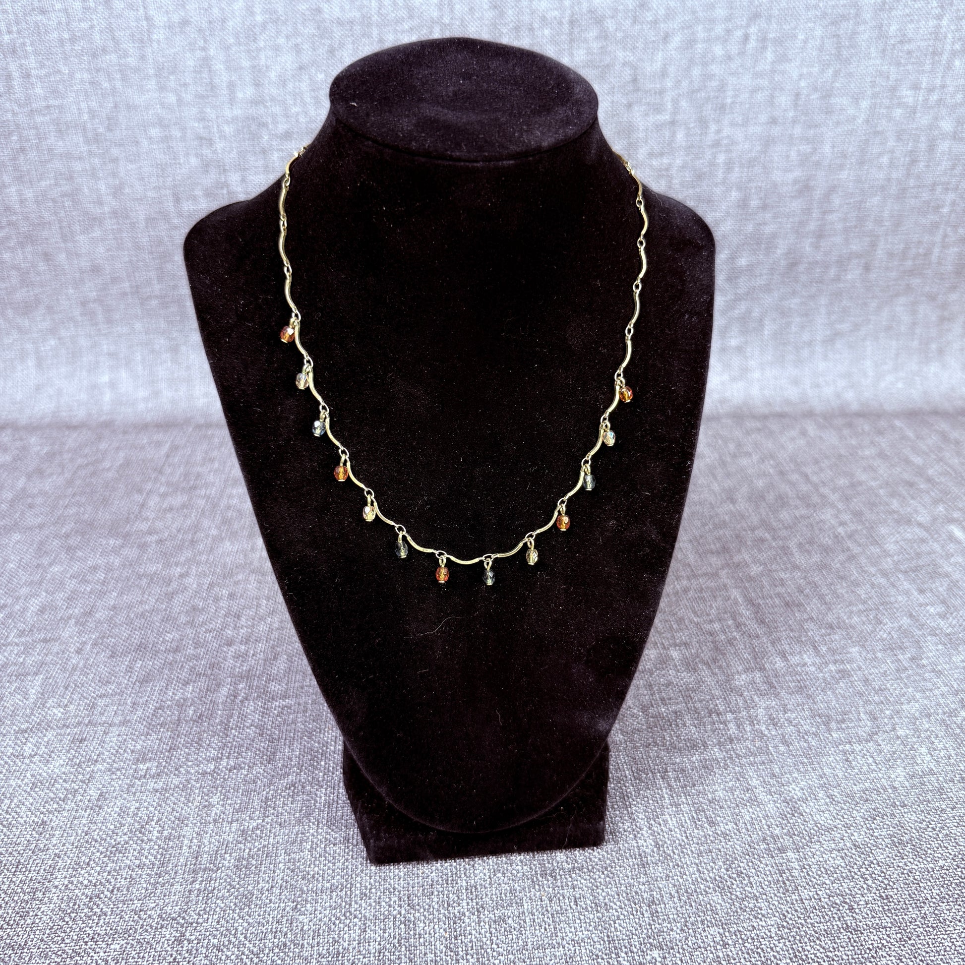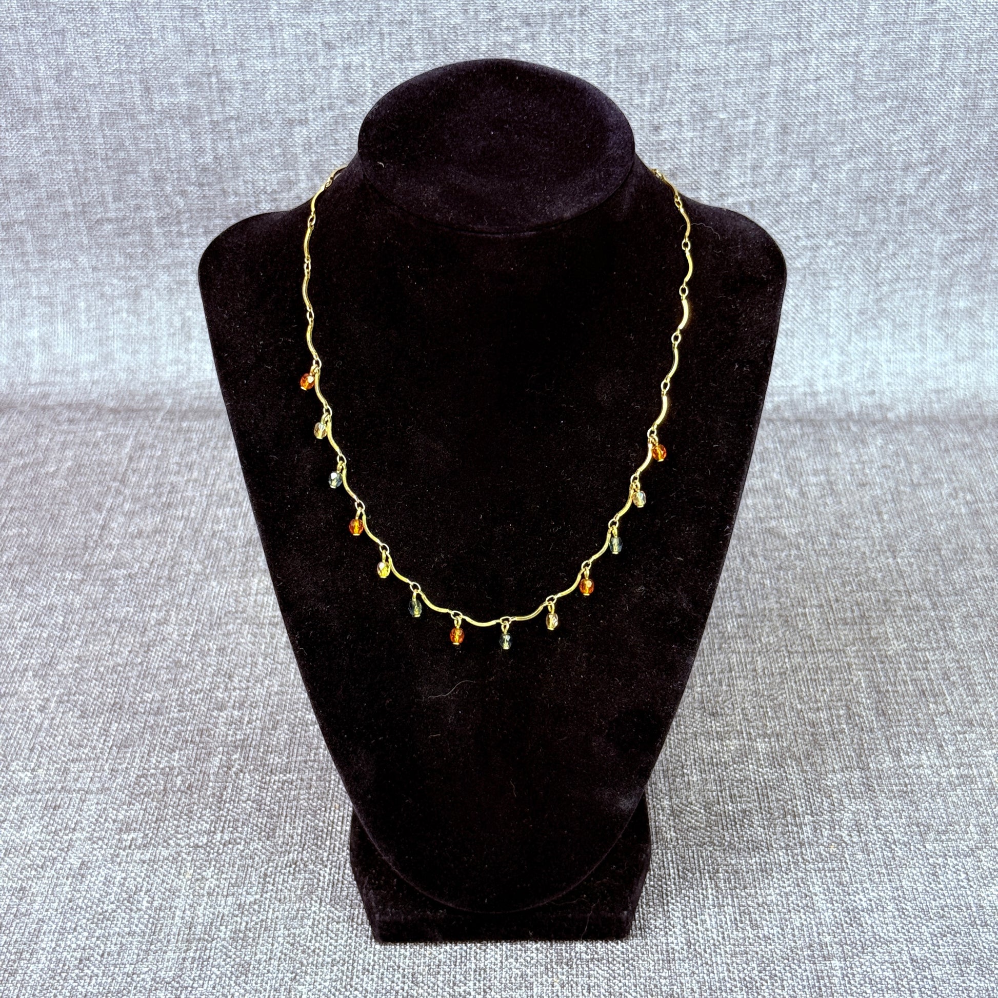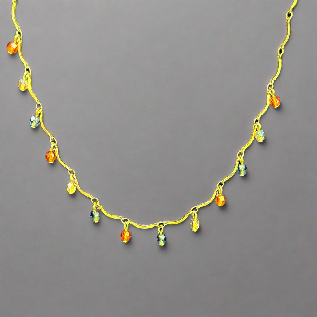 Necklace Gold Color with Colorful Teardrop accents 16"