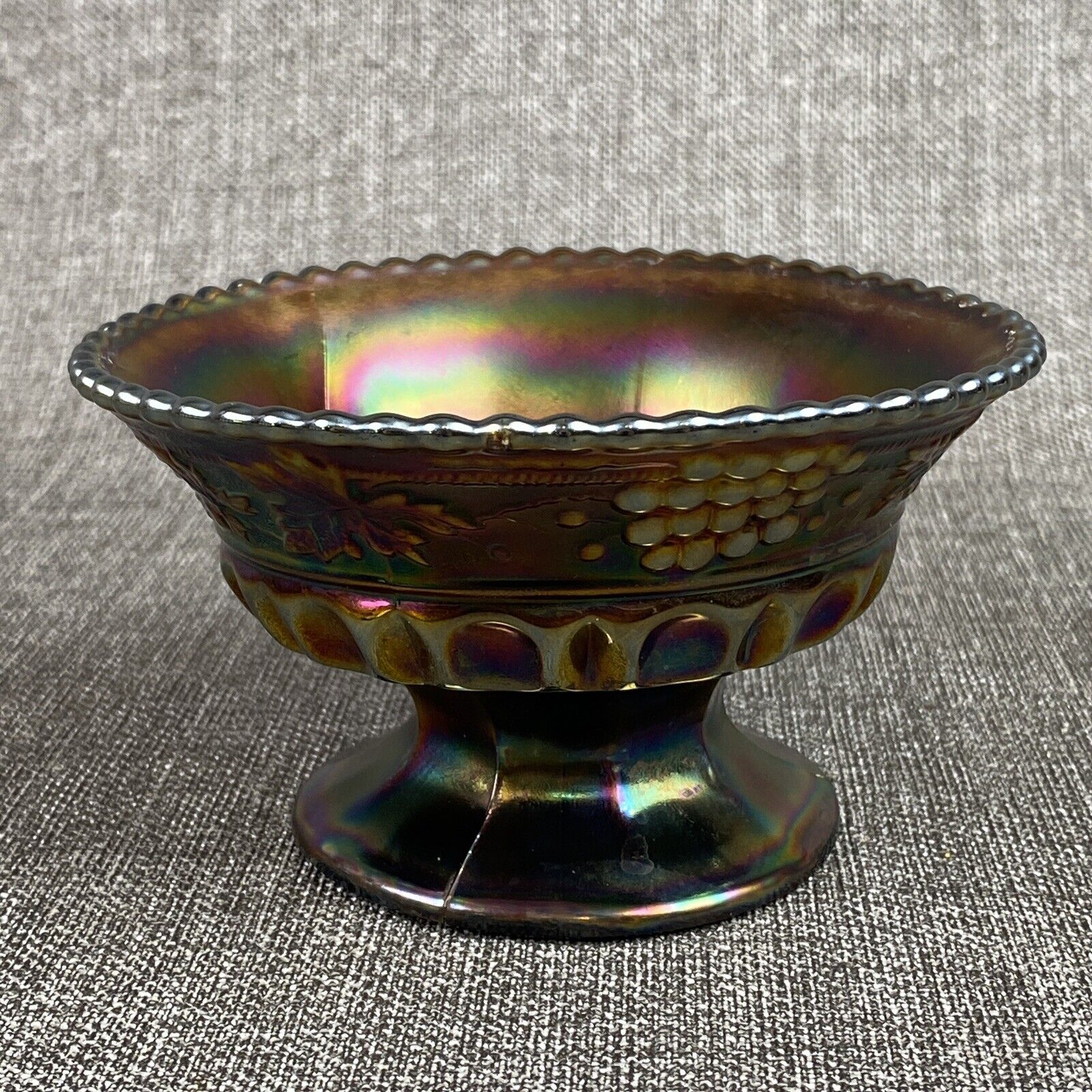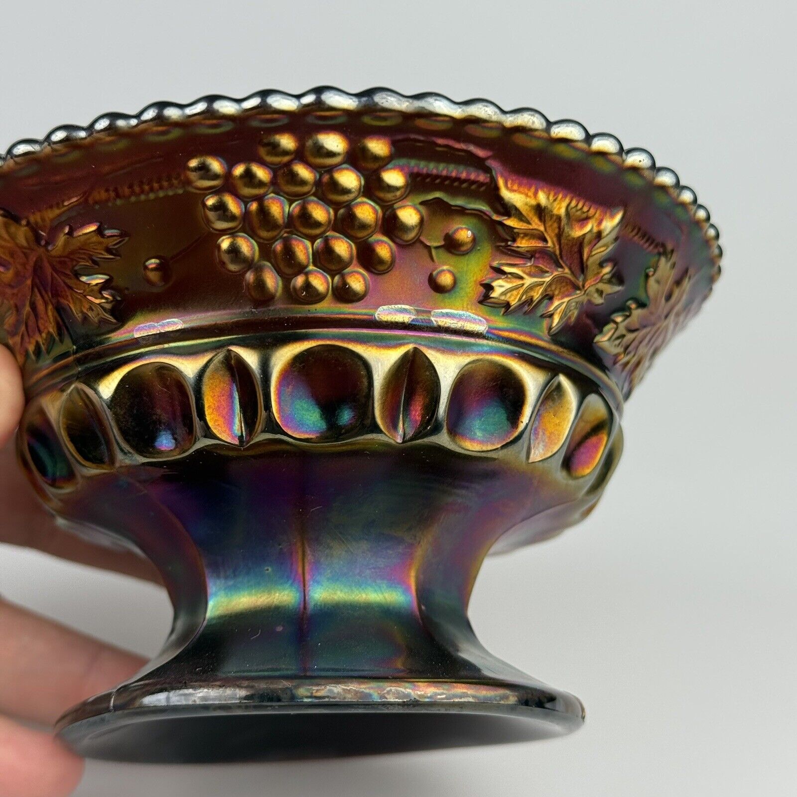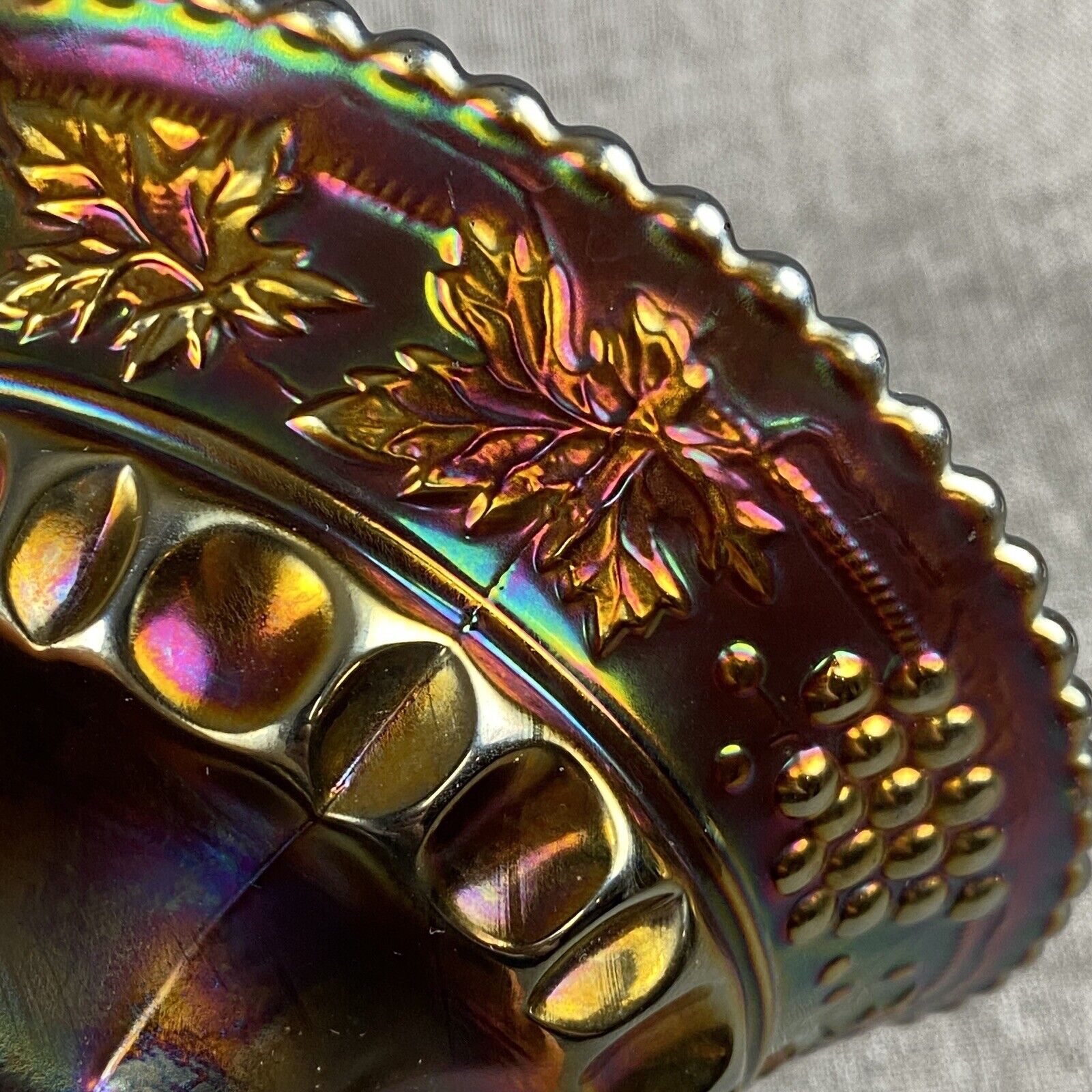 NORTHWOOD Carnival Glass Grape and Cable Amethyst Purple Small Footed Bowl