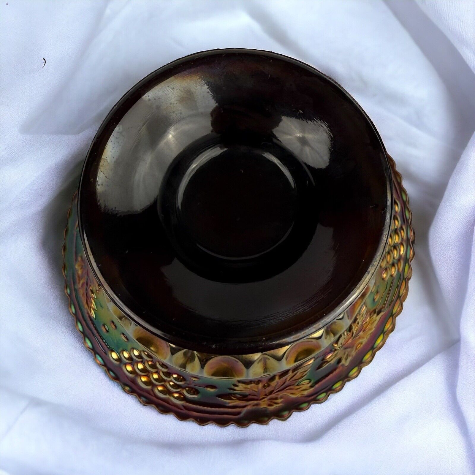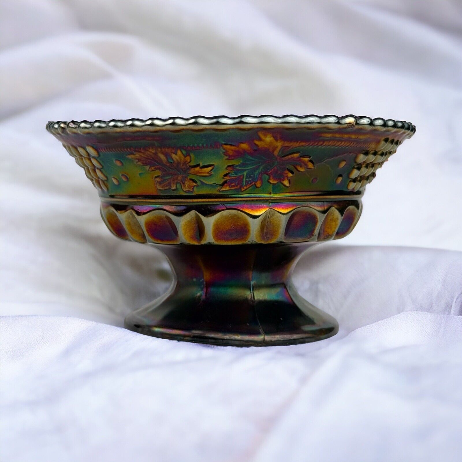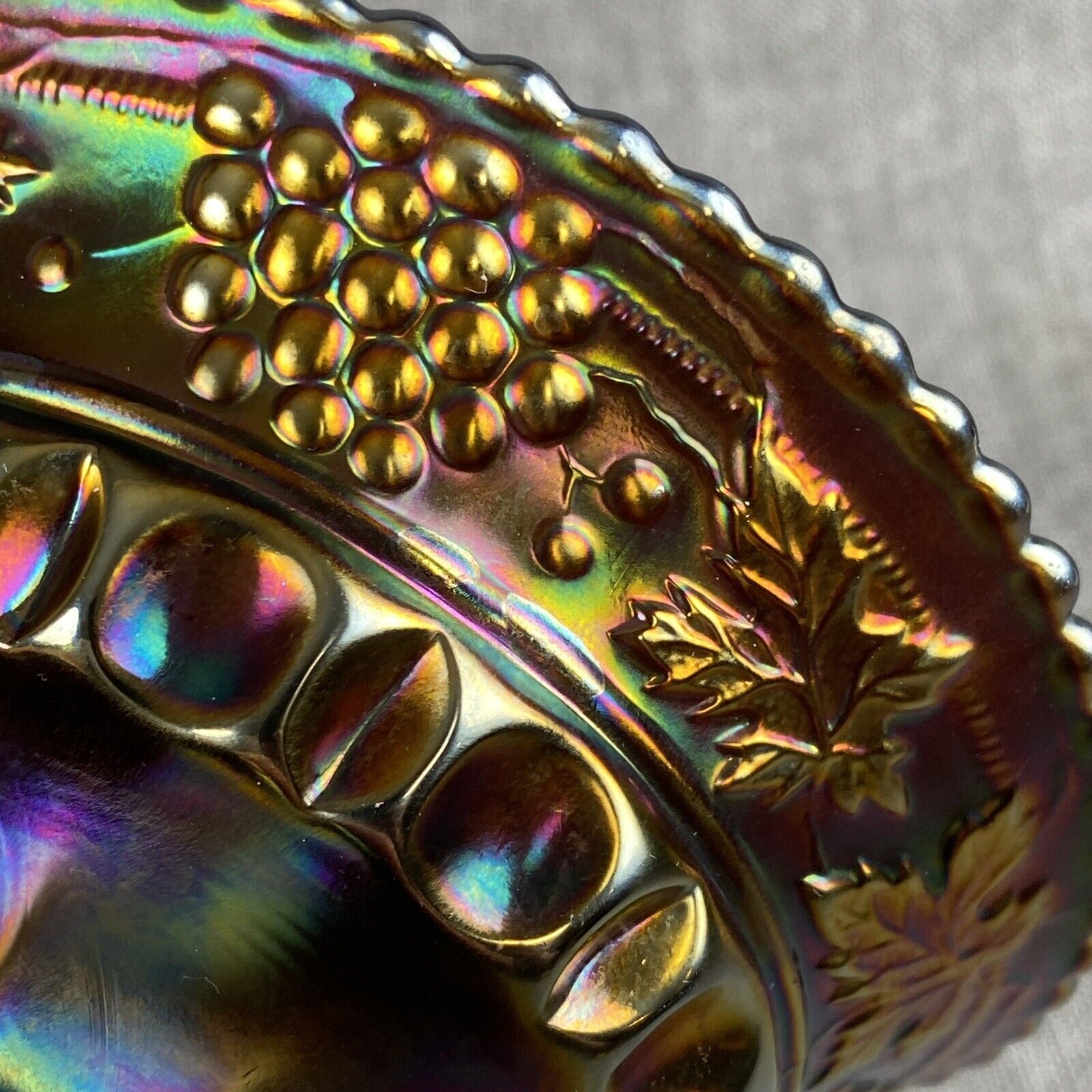 NORTHWOOD Carnival Glass Grape and Cable Amethyst Purple Small Footed Bowl