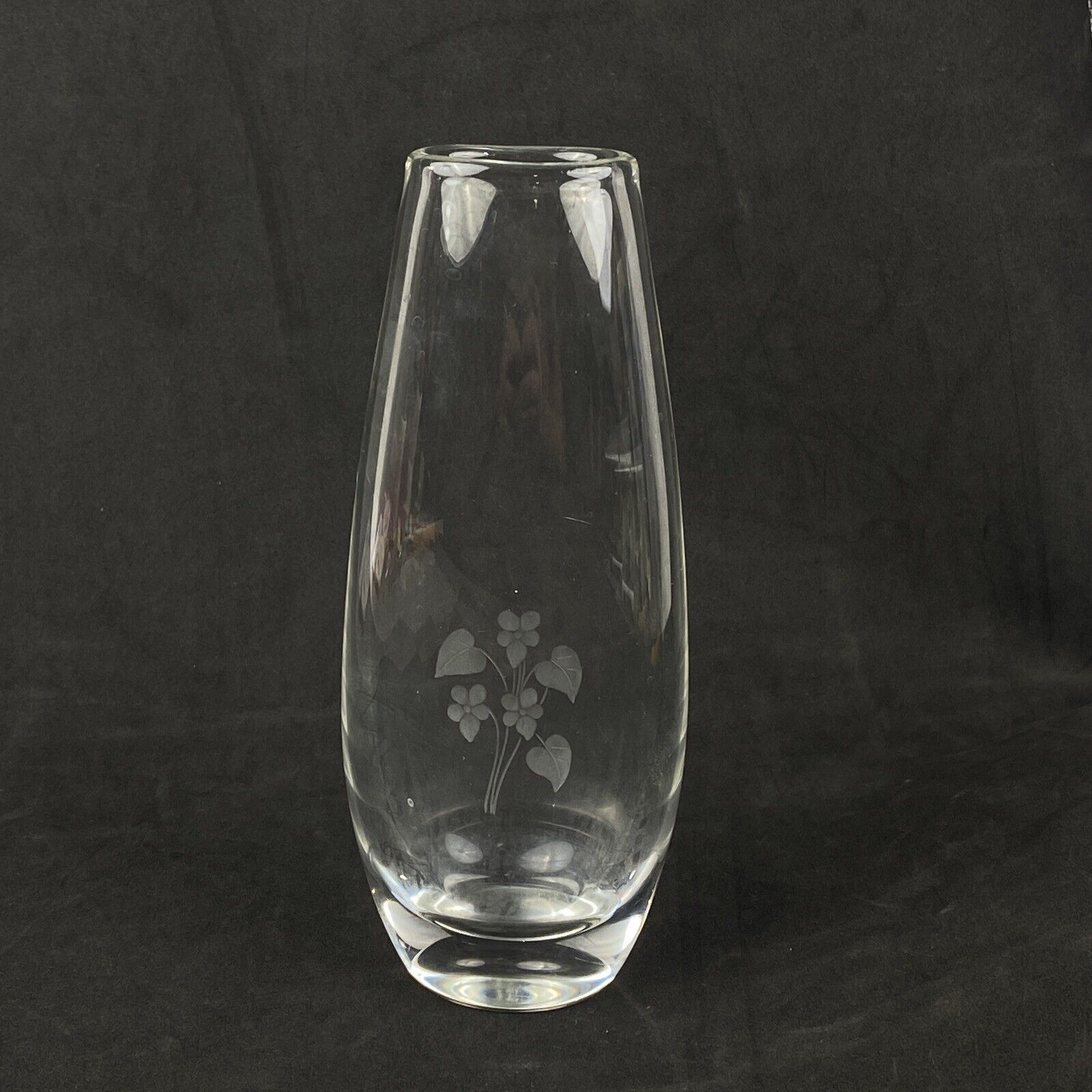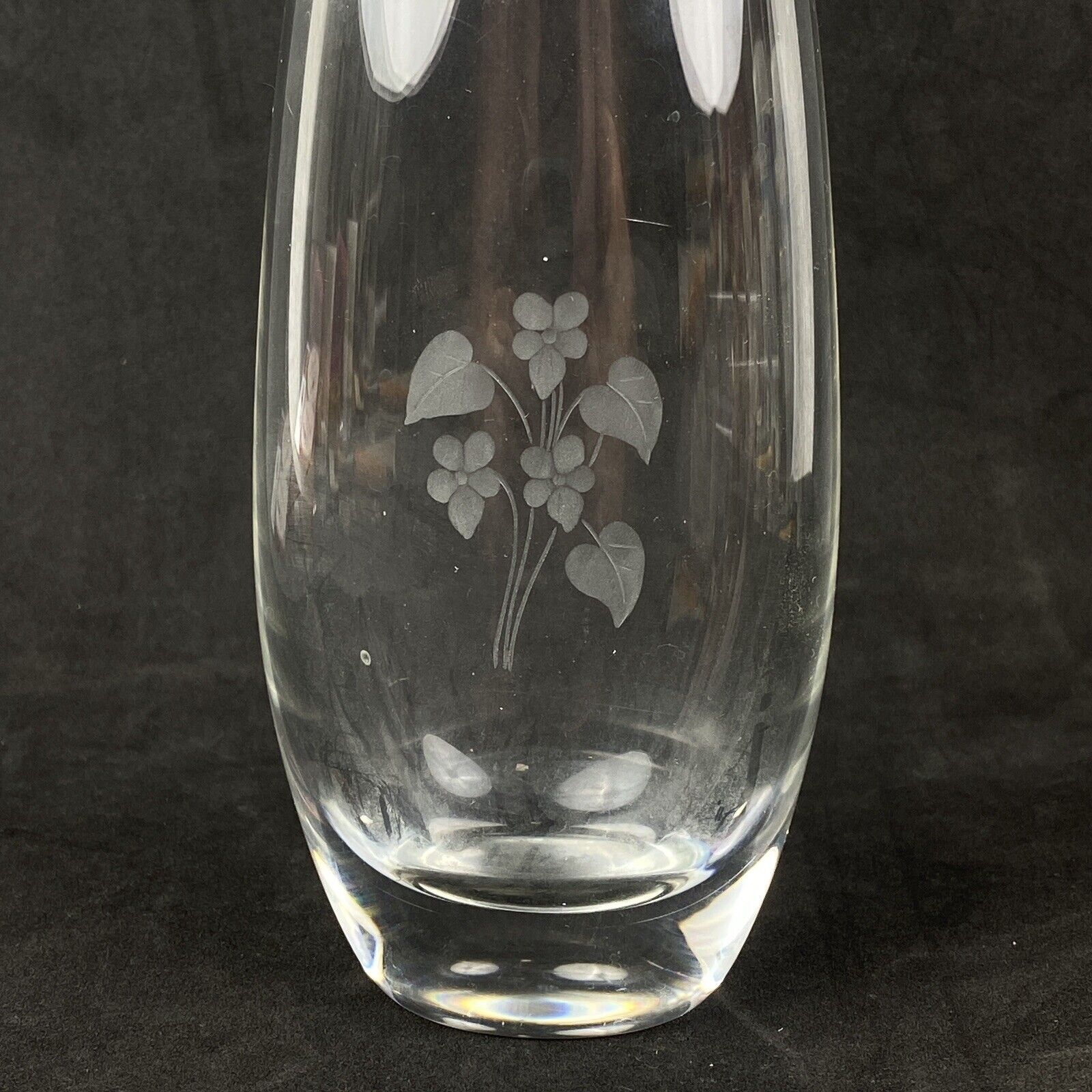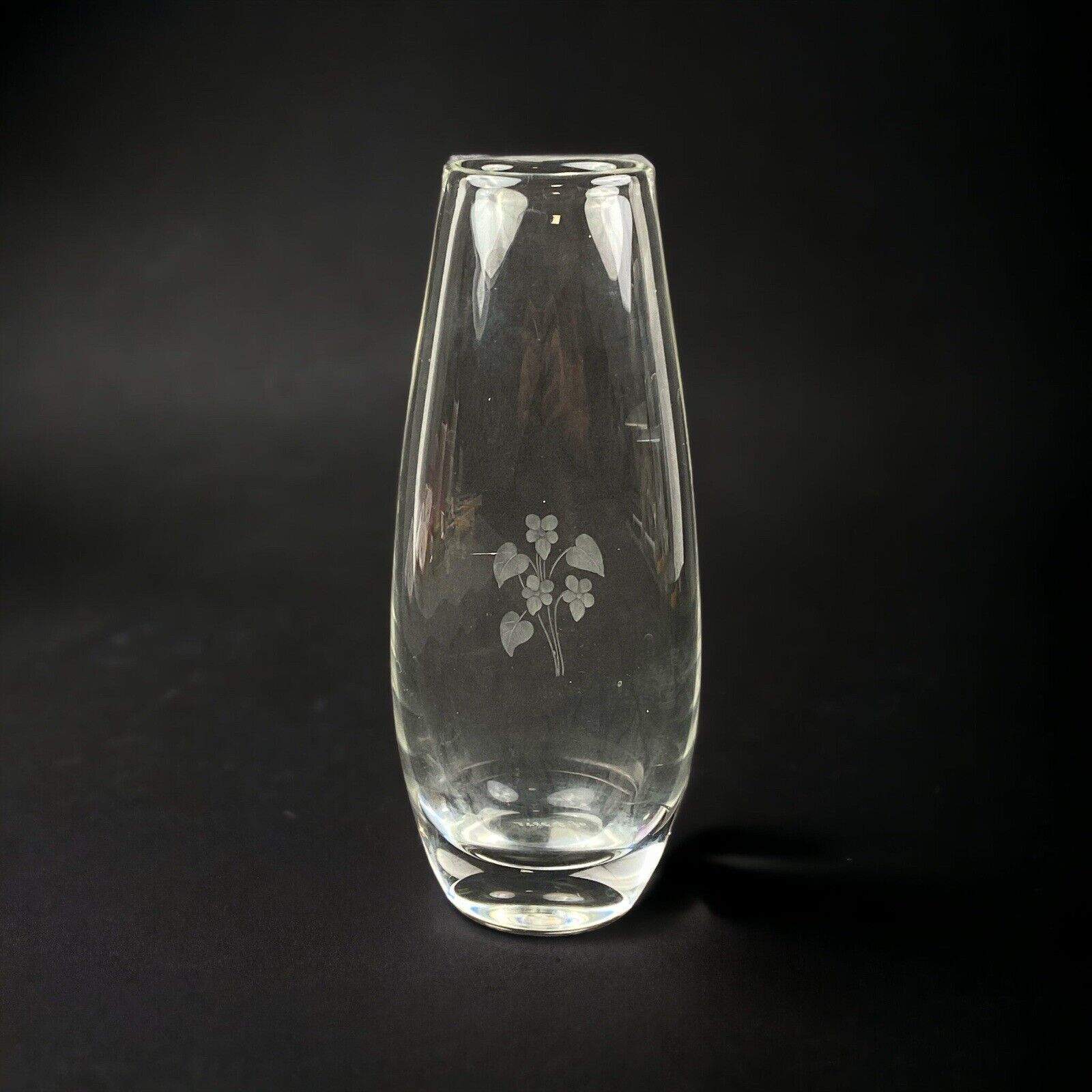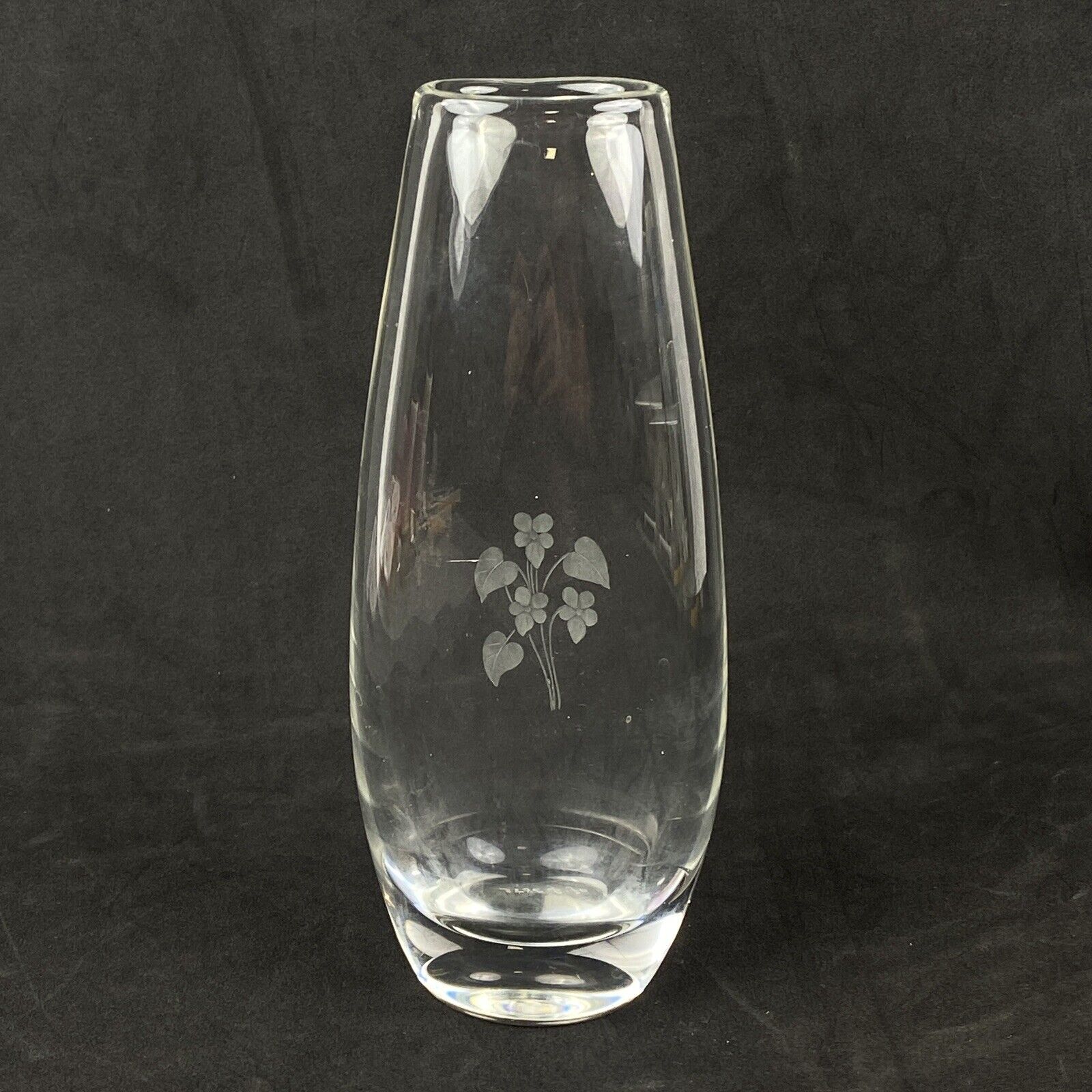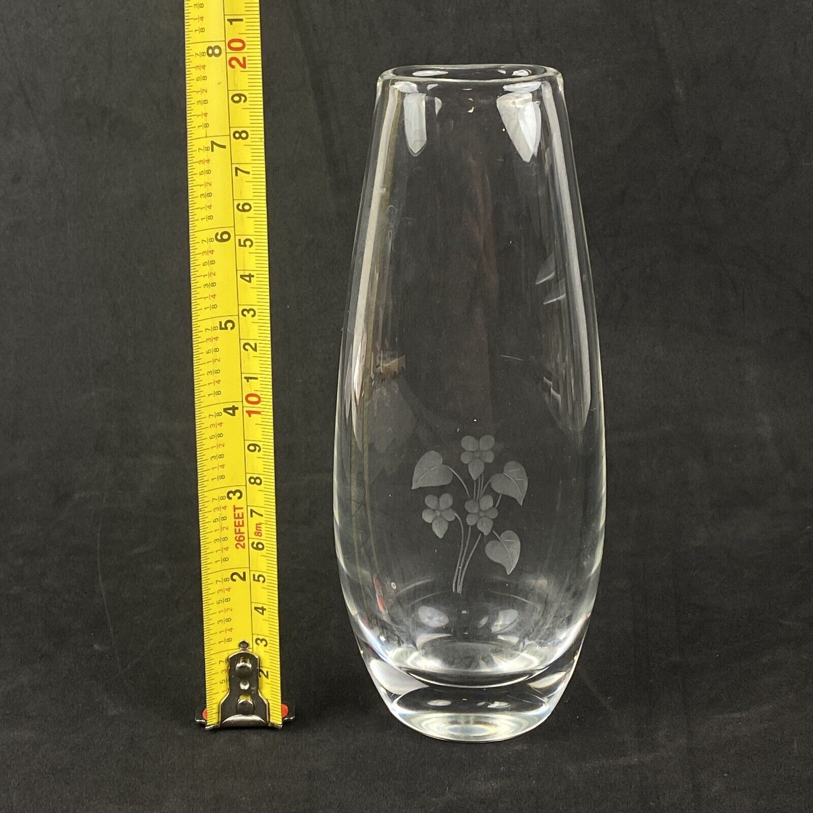 Orrefors Sweden Vase Signed with Etched Flower 7.5" Tall
