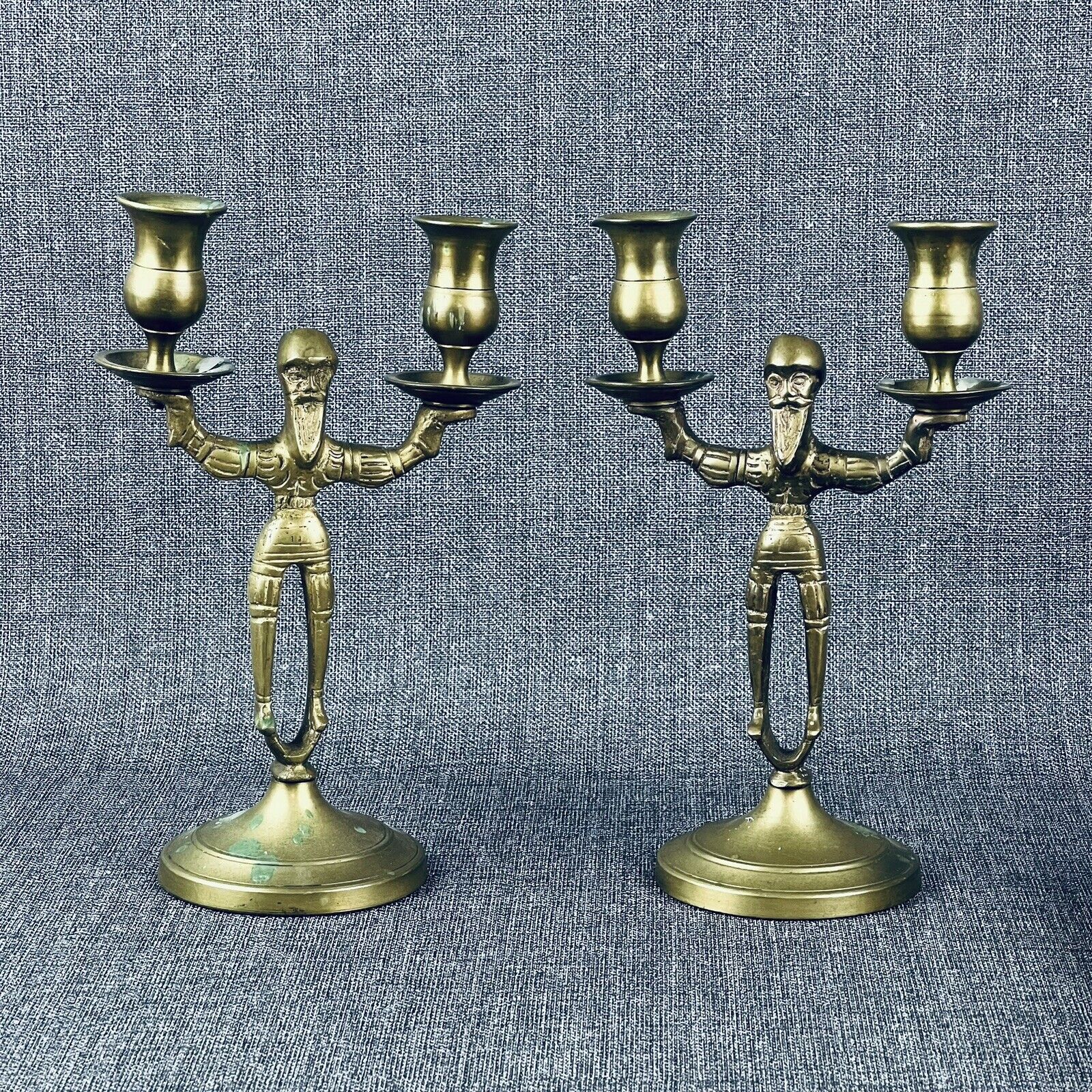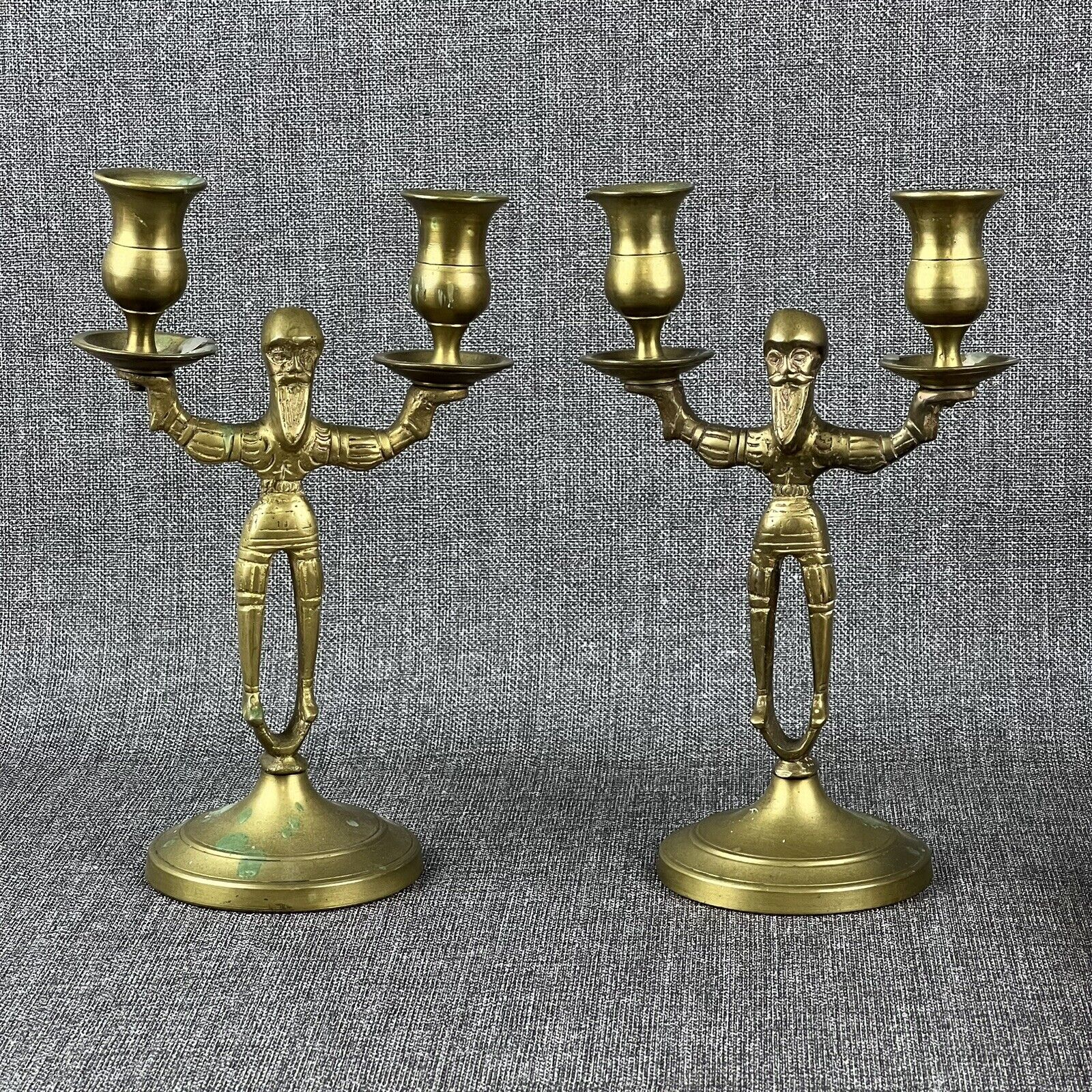 Pair of Solid Brass Candle Holders - Old Man with Beard