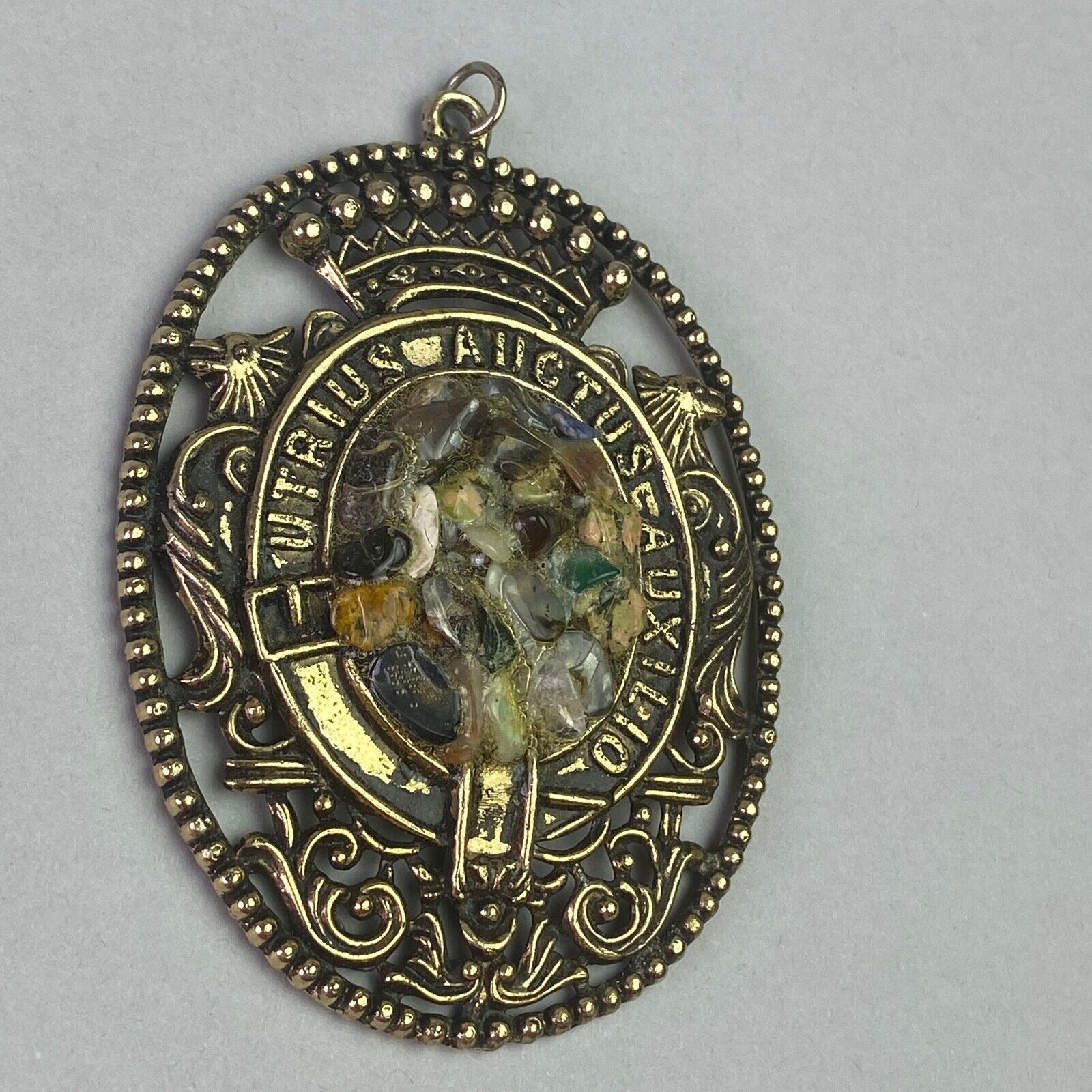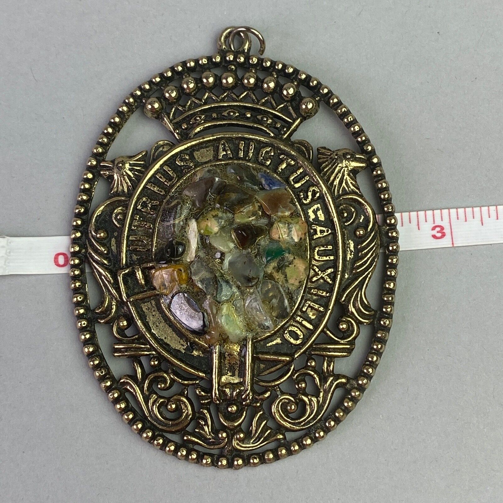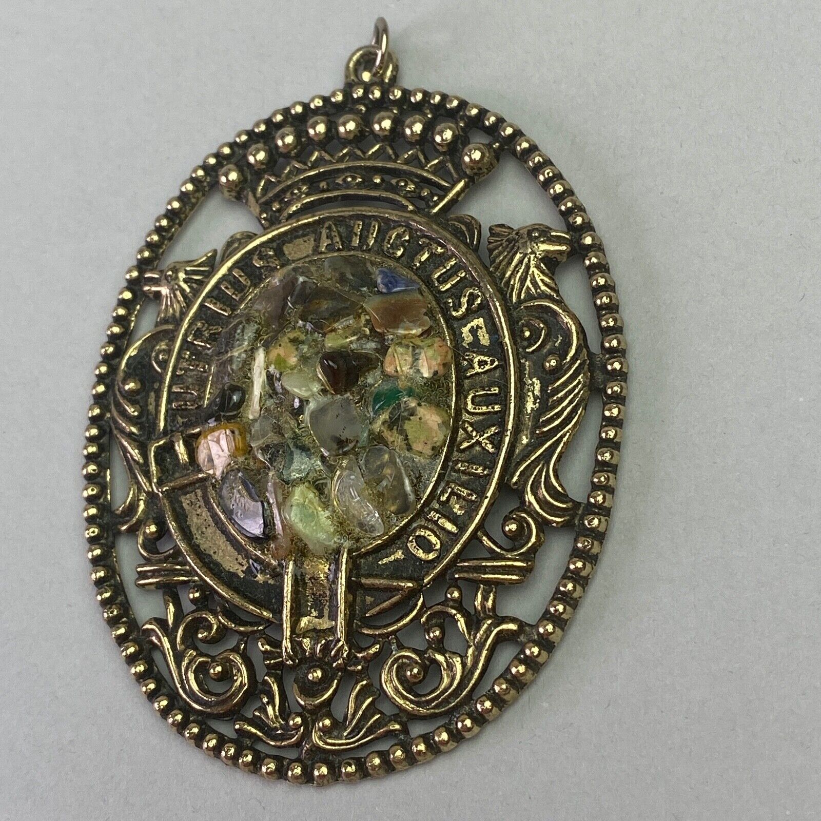 Pendant Necklace Jewelry Stones Crown Coat of Arms Latin Utrius Auctus Auxilio