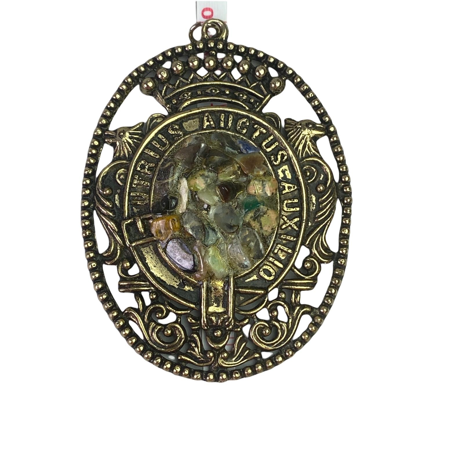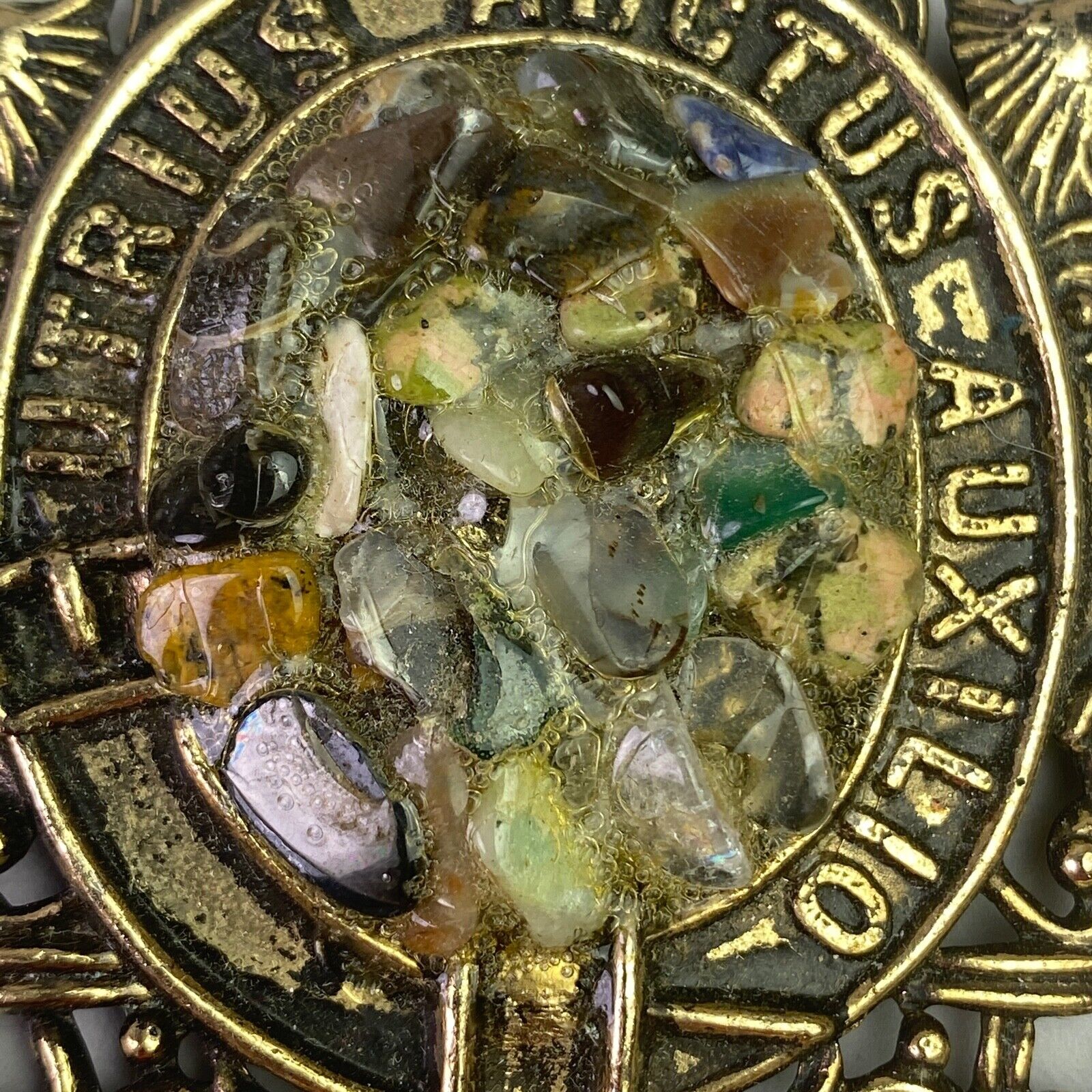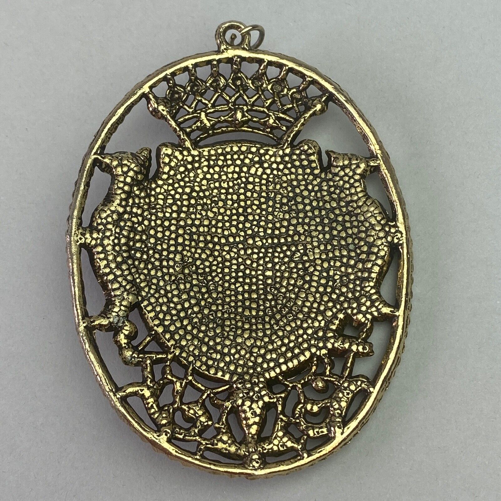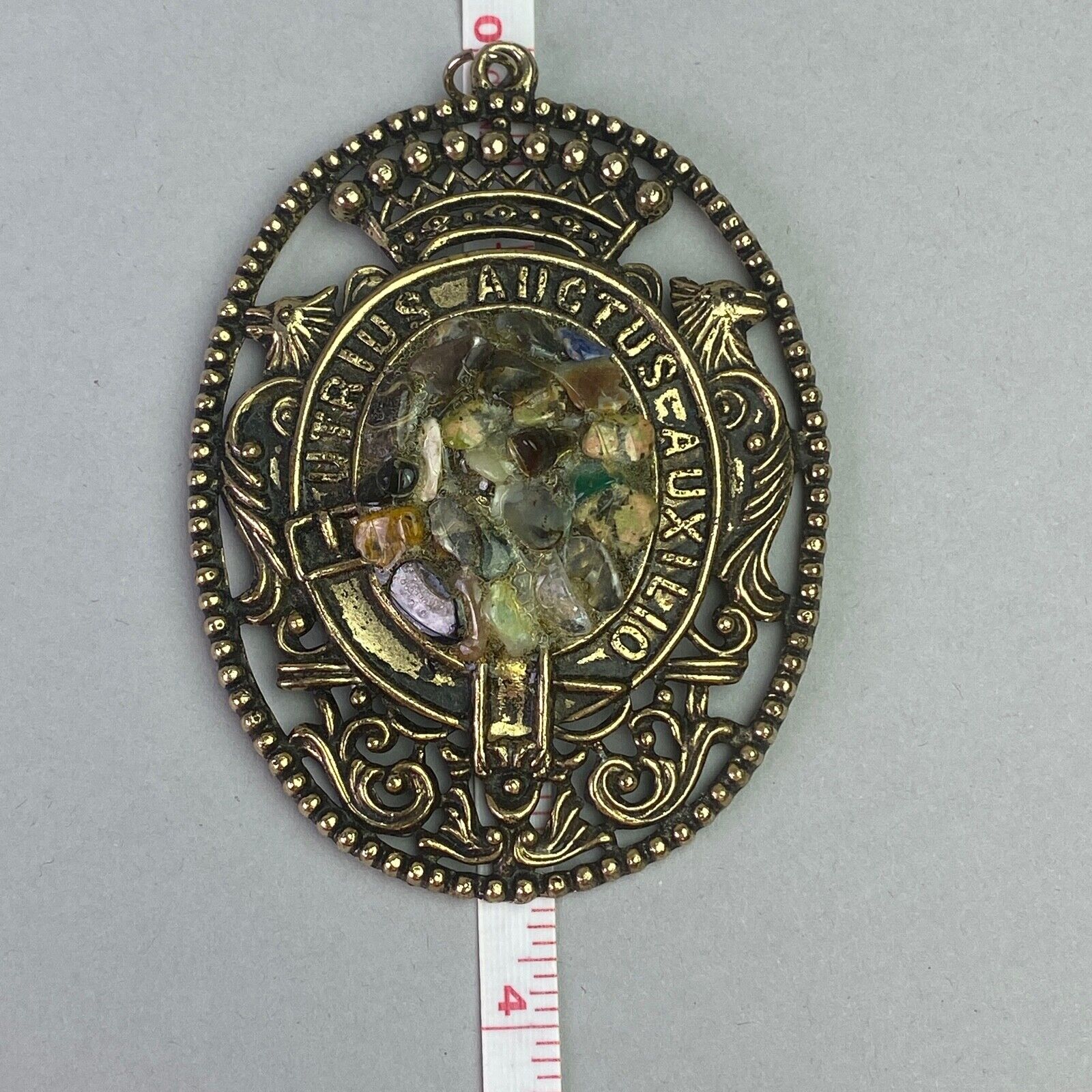 Pendant Necklace Jewelry Stones Crown Coat of Arms Latin Utrius Auctus Auxilio