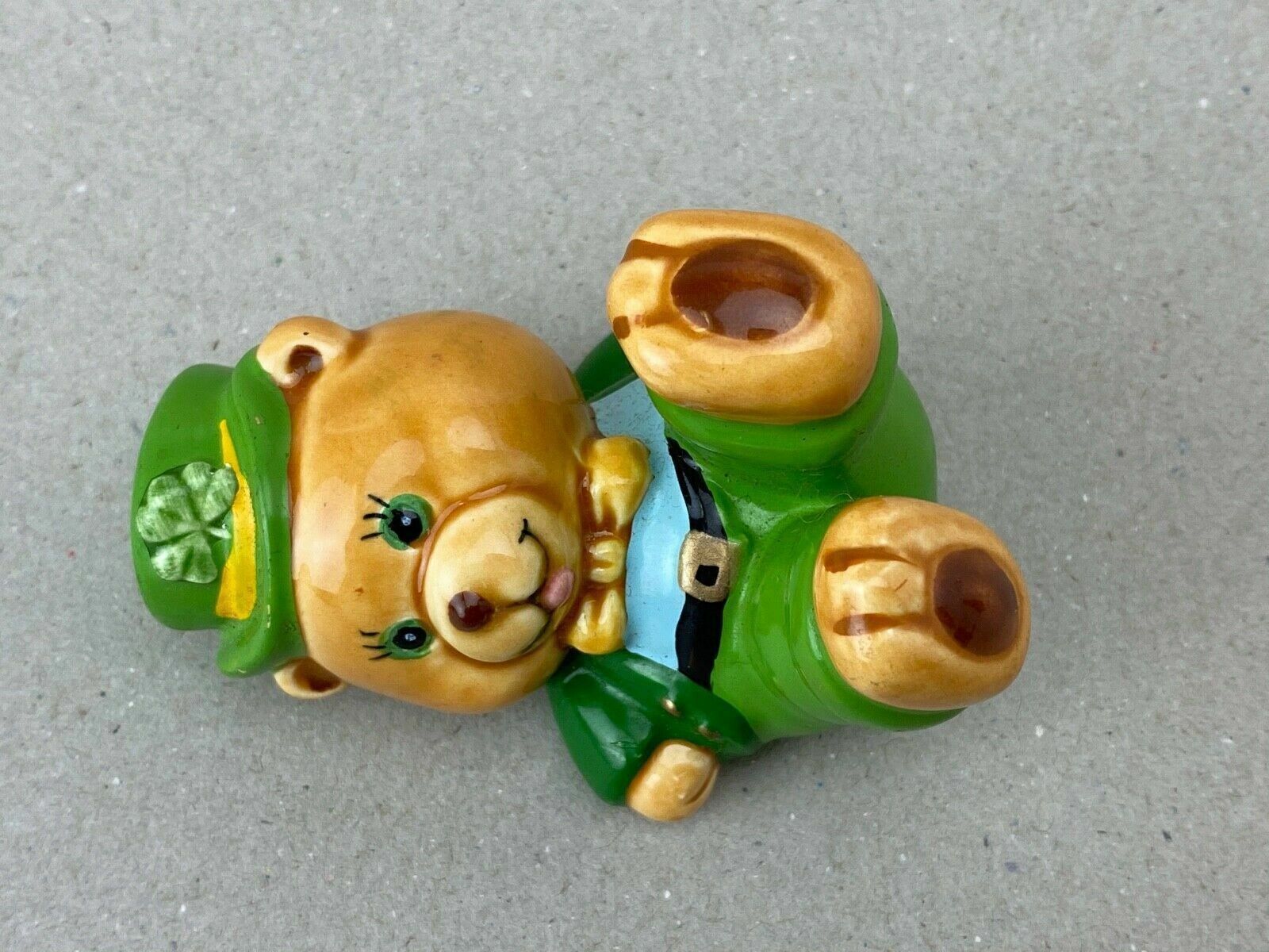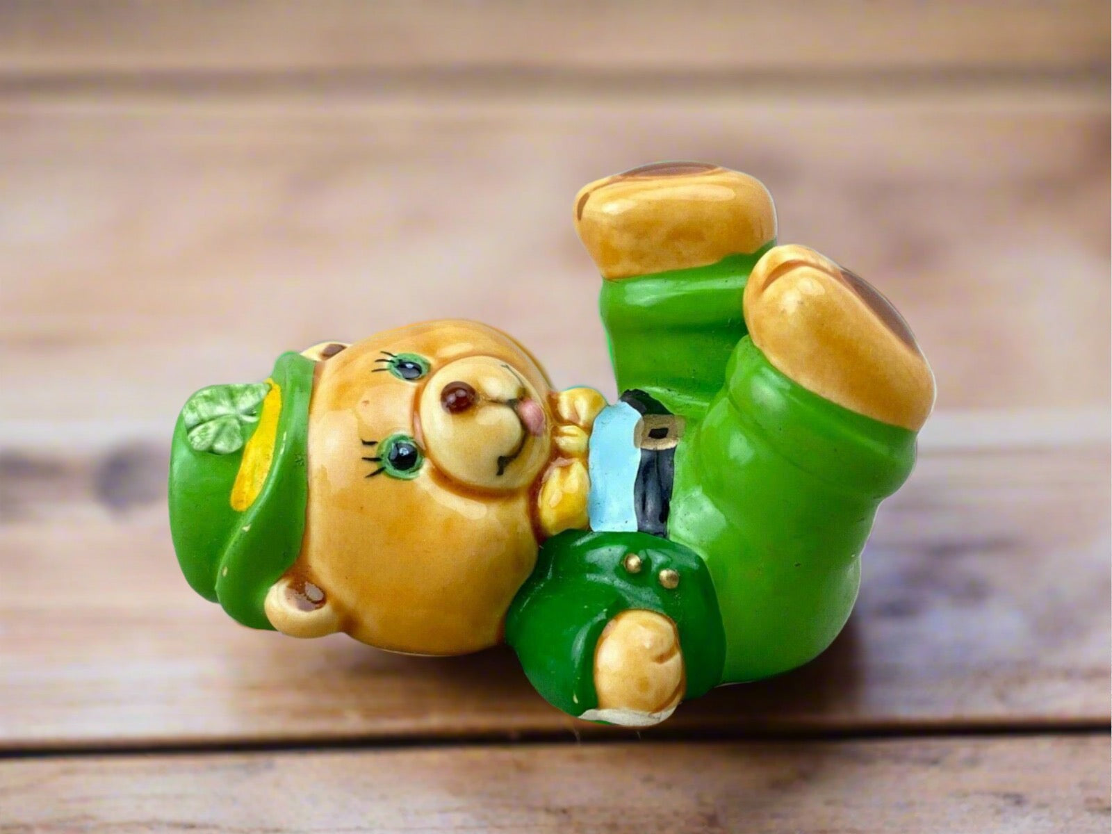 Russ Shamrock Bear Figurines Ceramic High Gloss Saint Patrick's Day