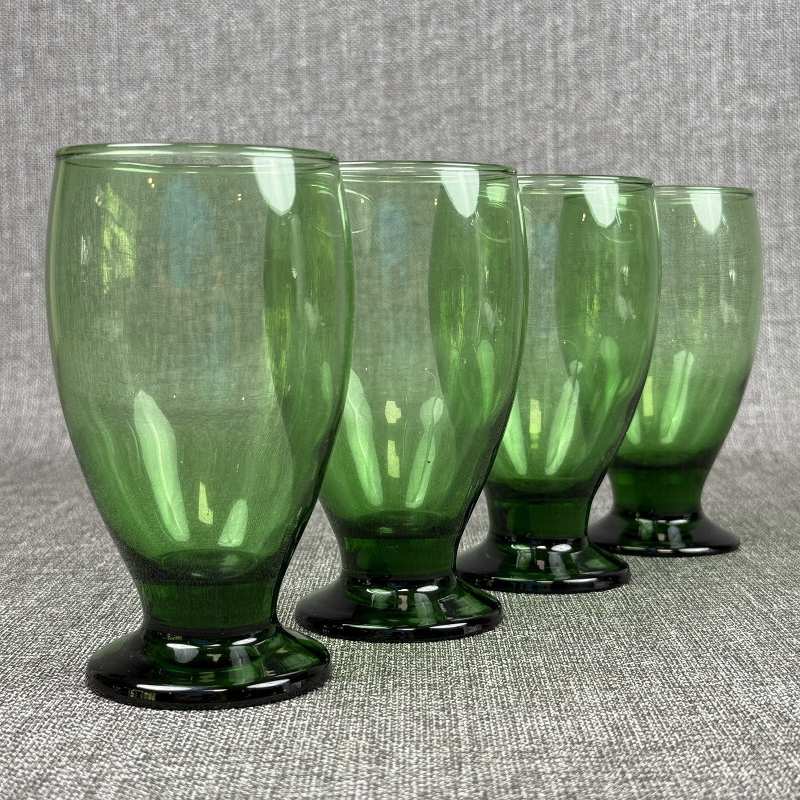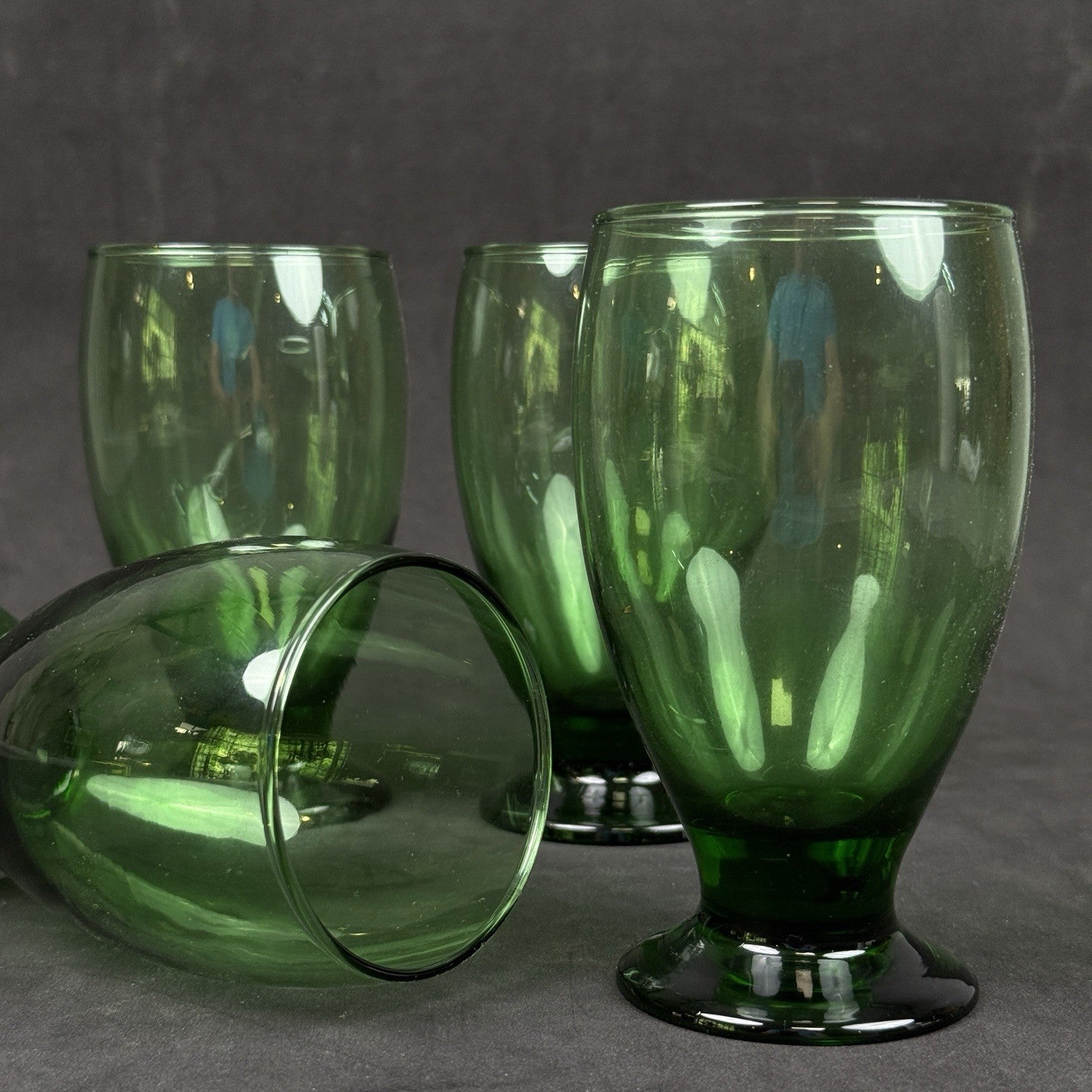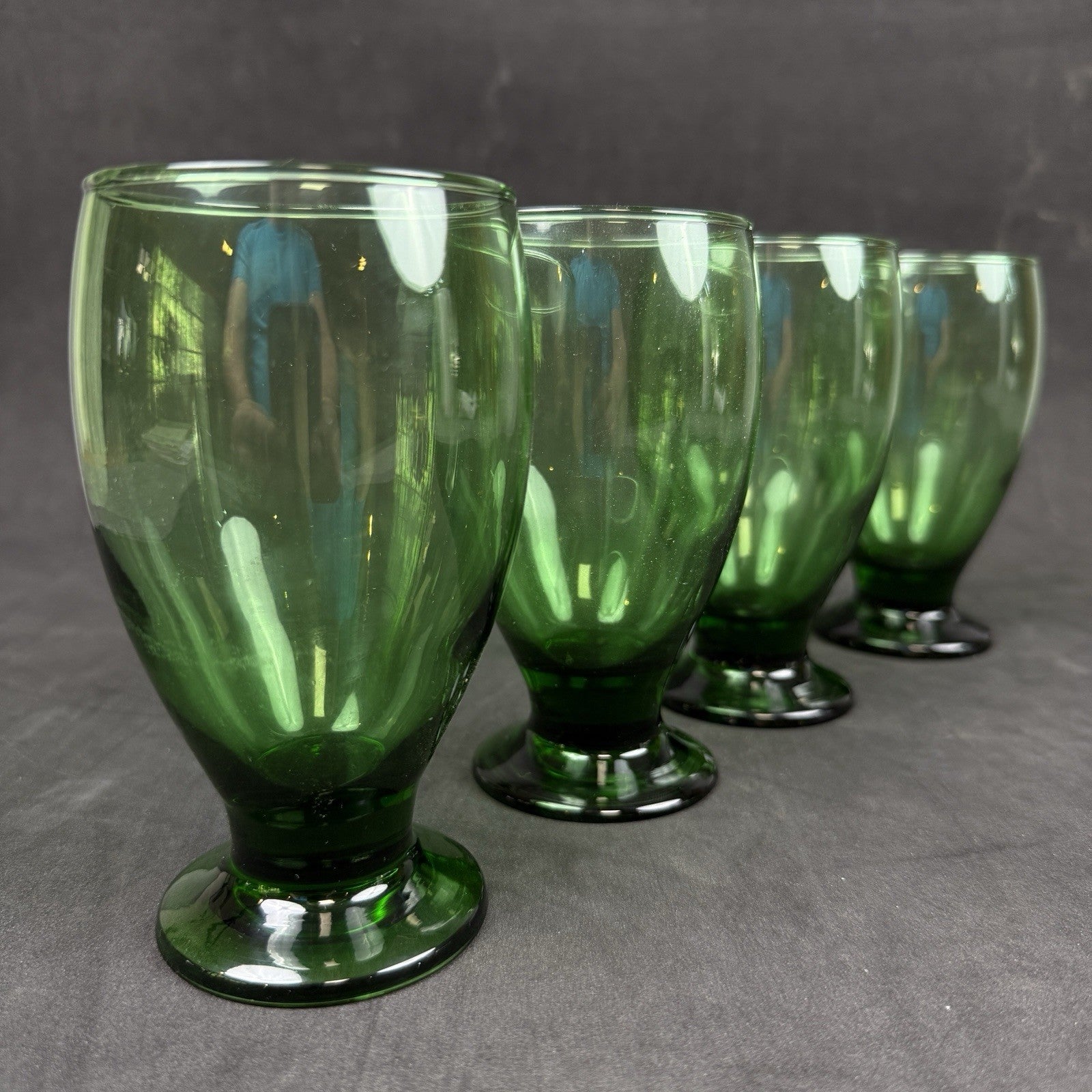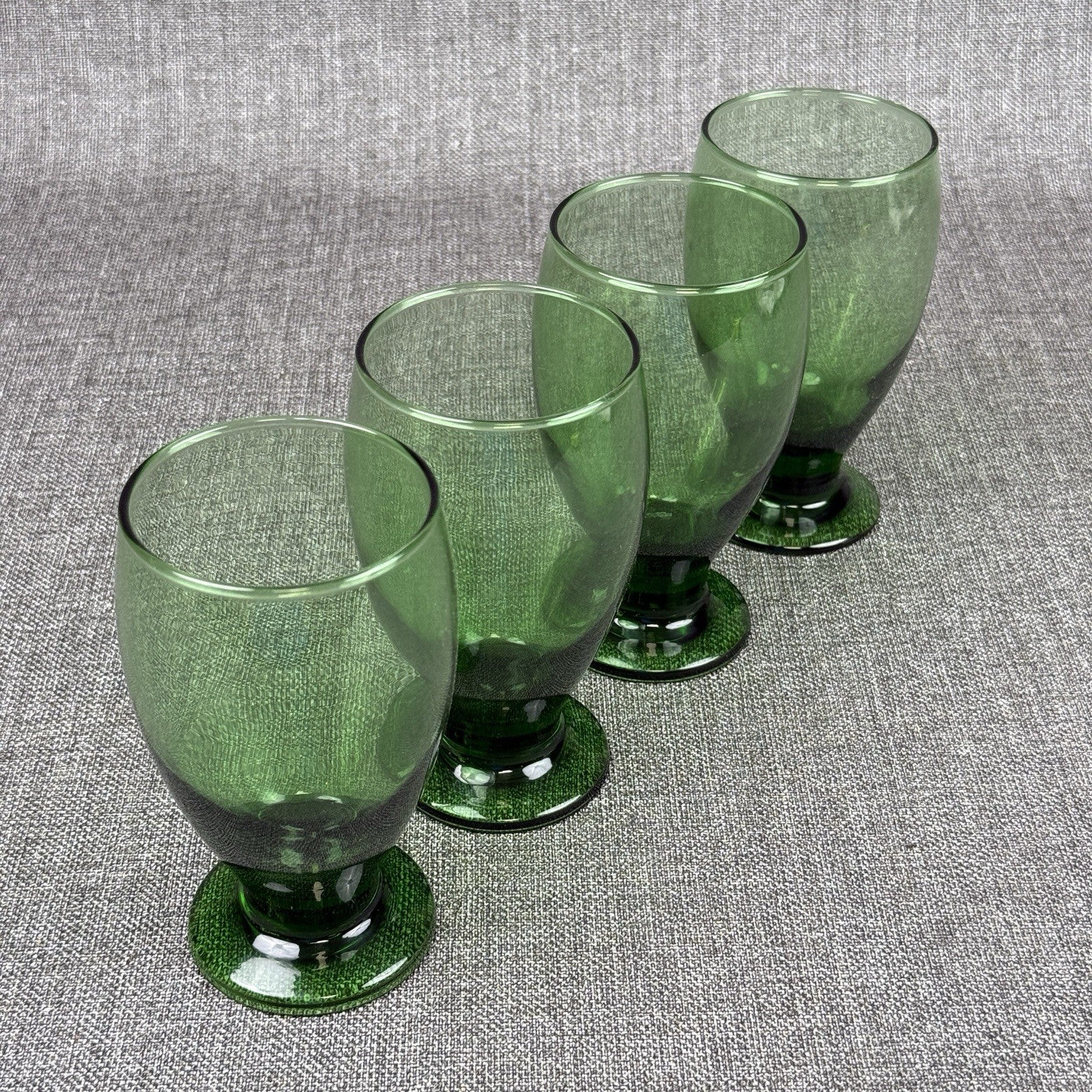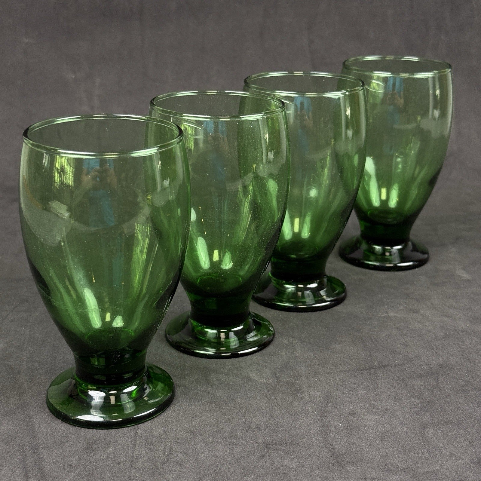Set 4 Cristar Emerald Green Glass 5 1/4" Pedestal Water Wine Goblet Mid Century