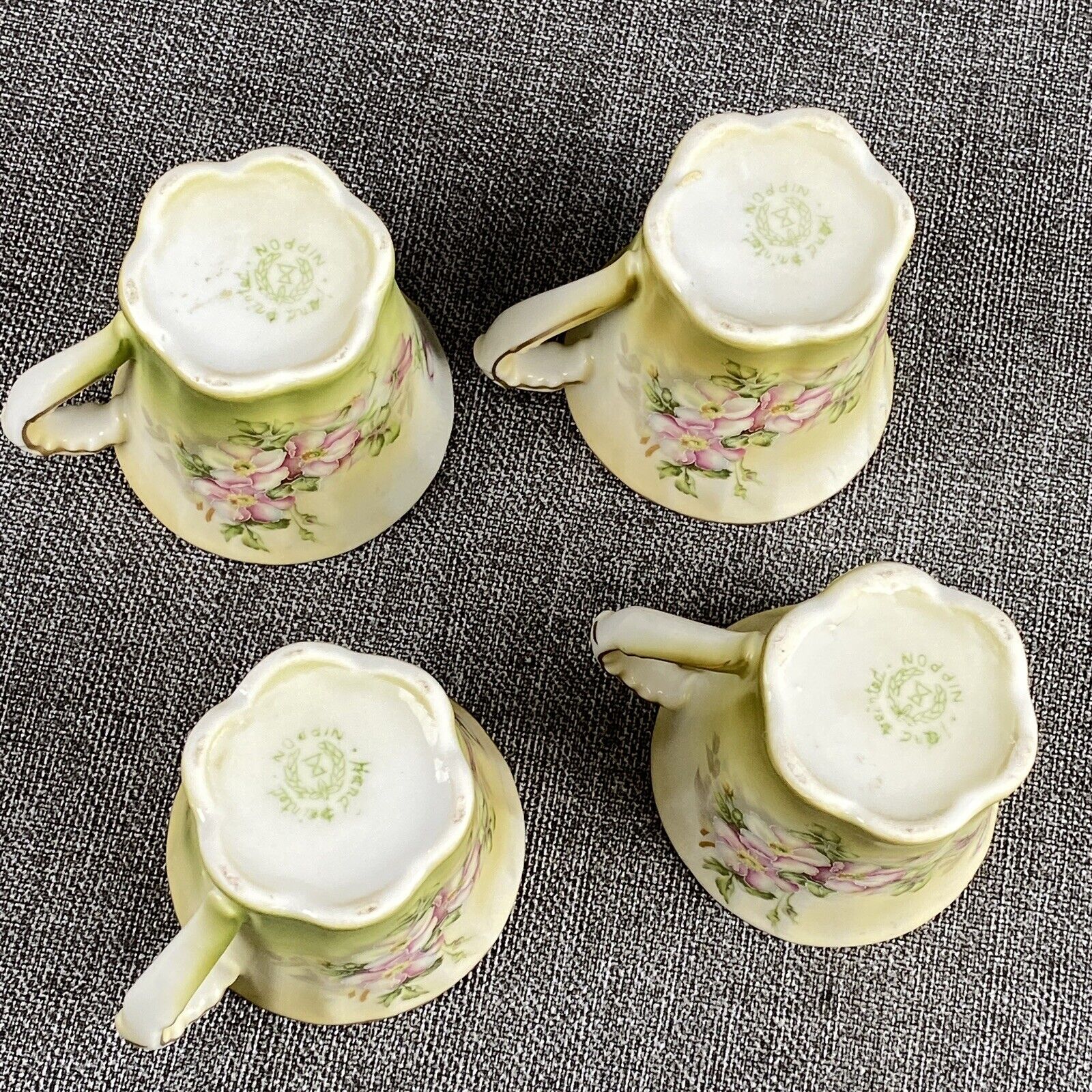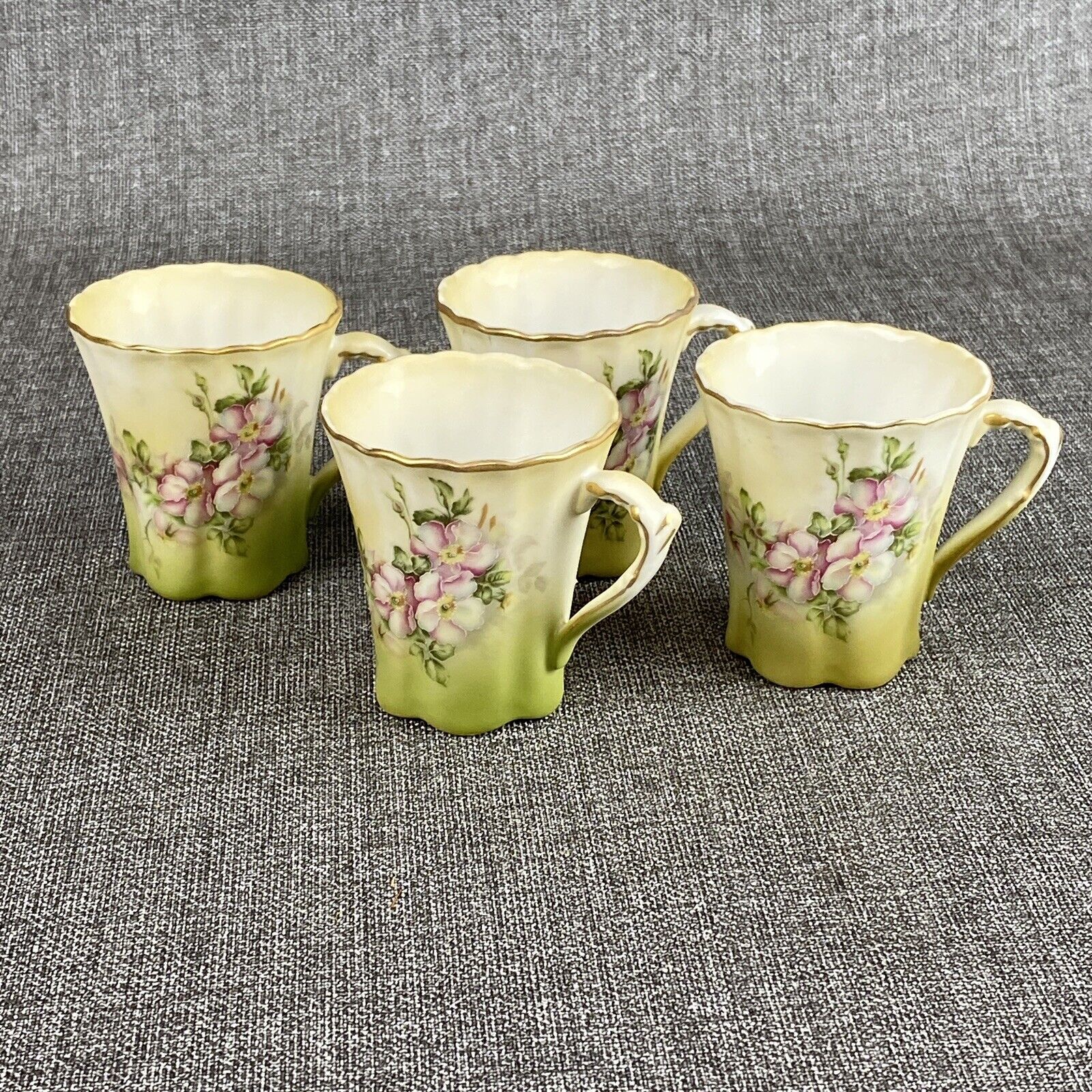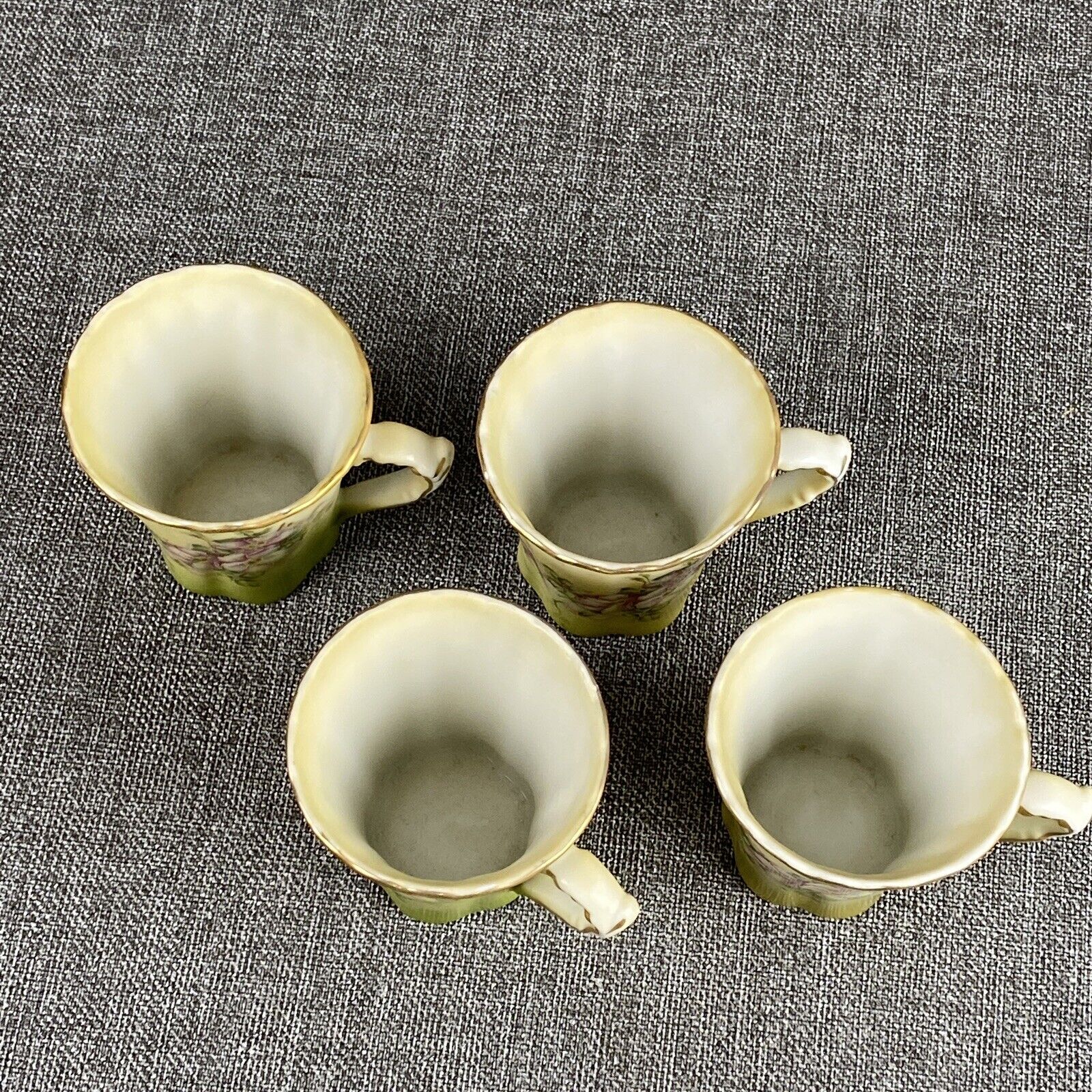 Set of 4 Vintage Chocolate Cups Green with Pink and Cream Floral