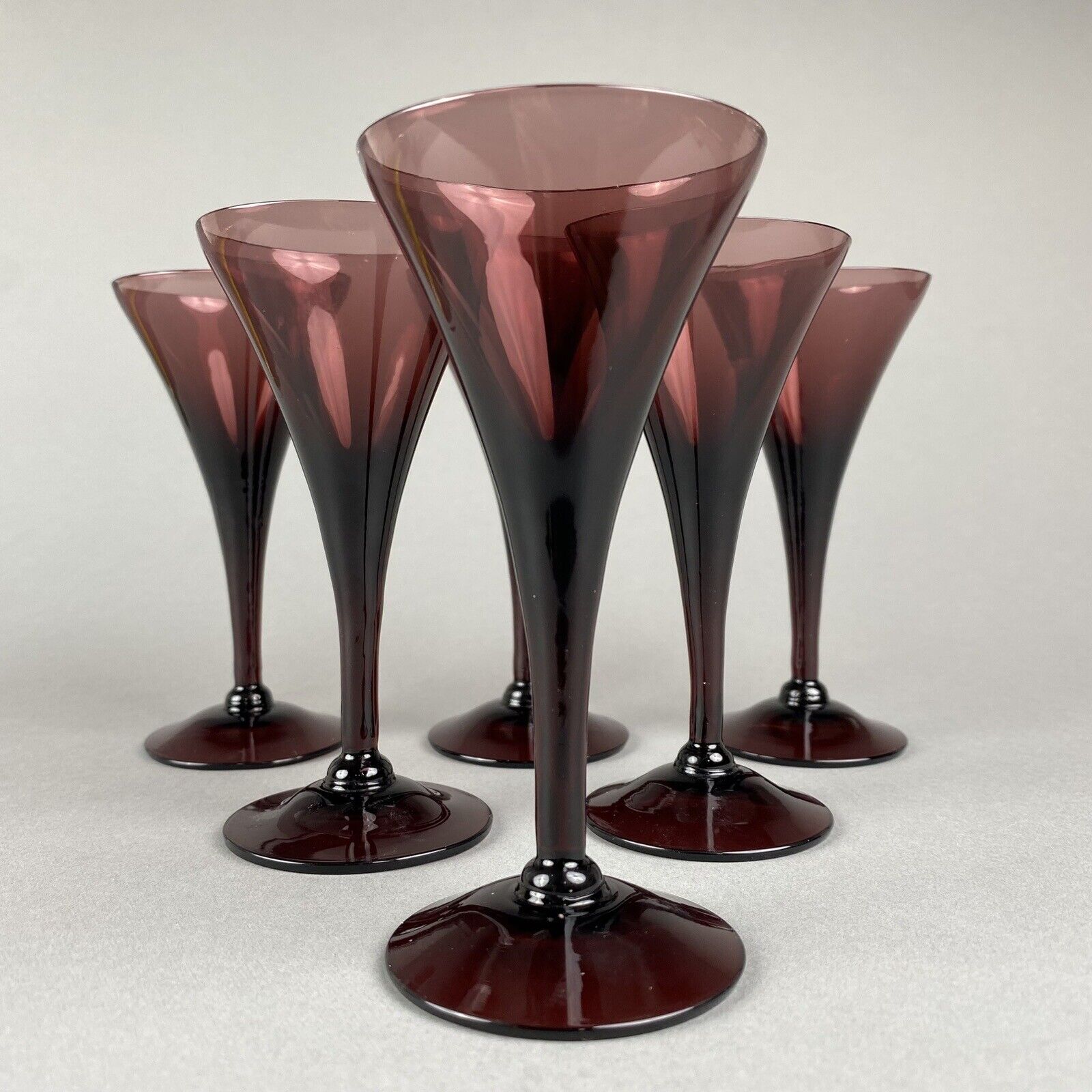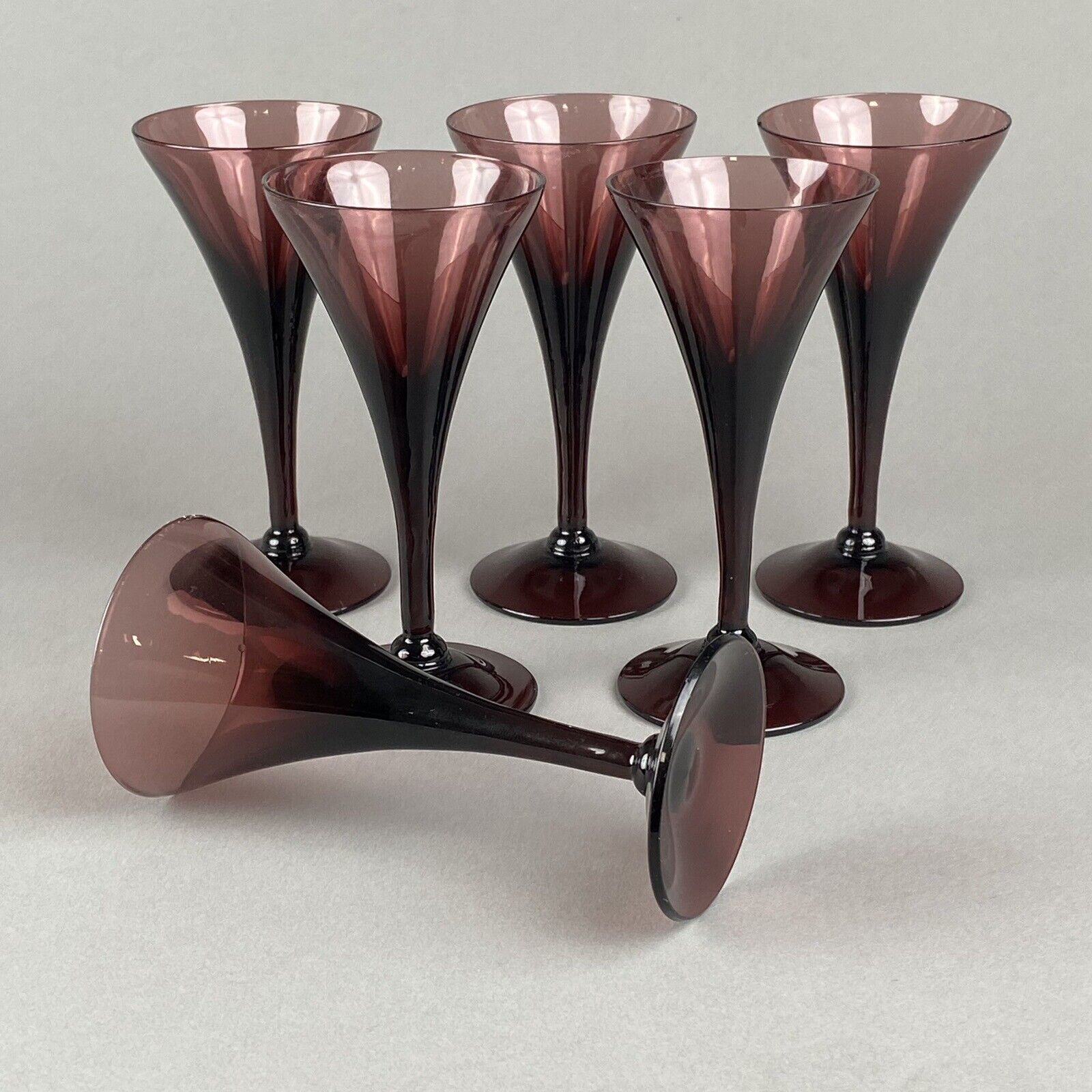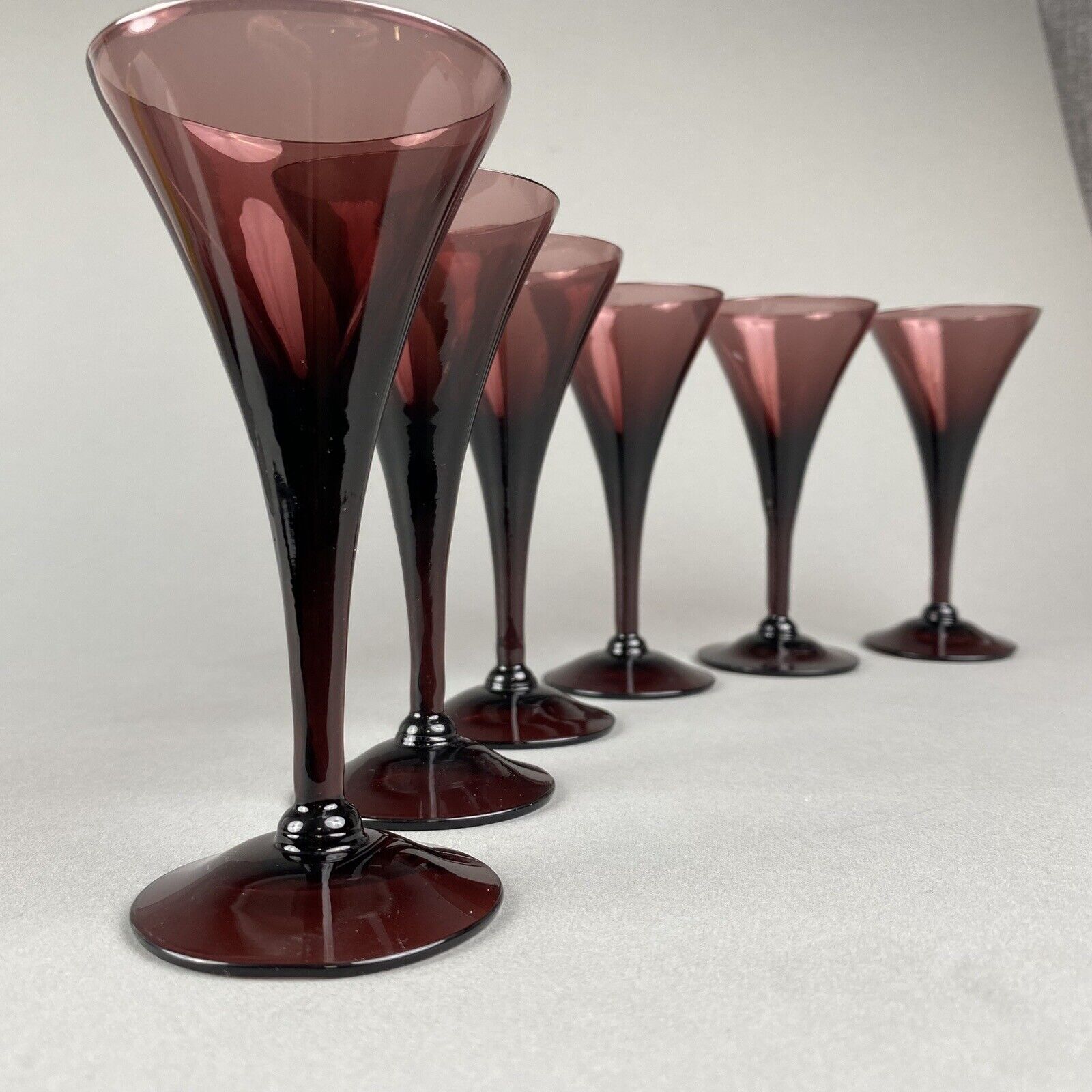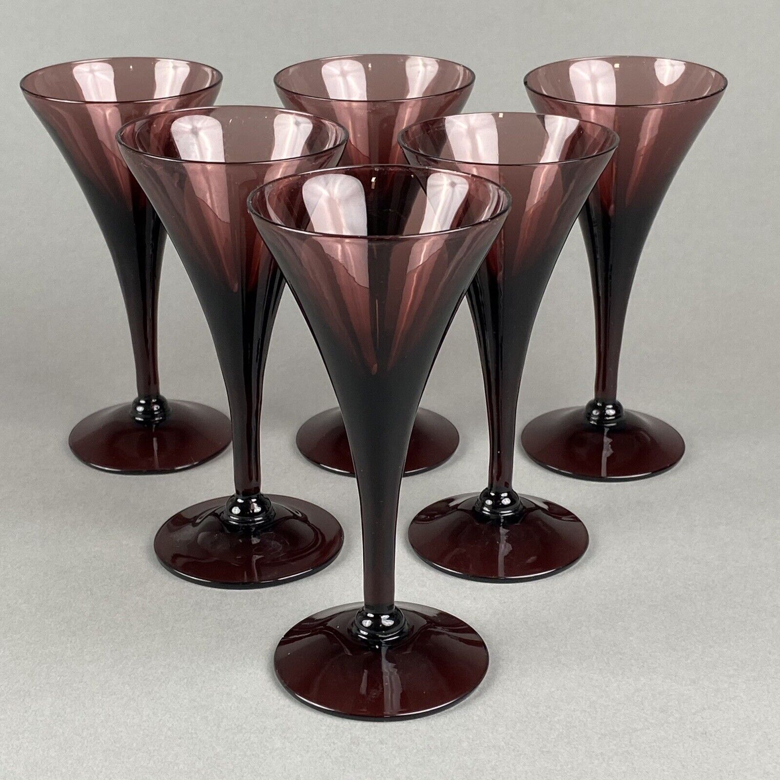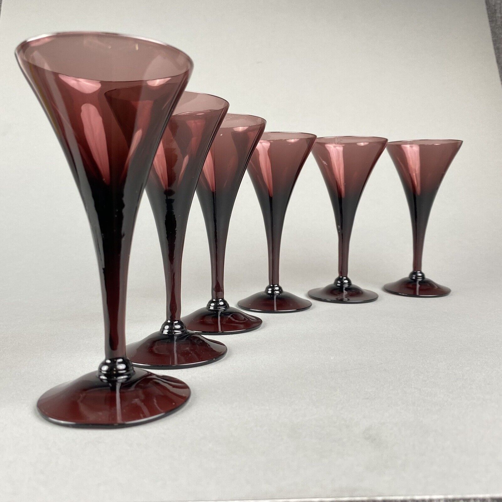 Set of 6 Cambridge Amethyst Glasses Mid Century Modern Wine Champagne