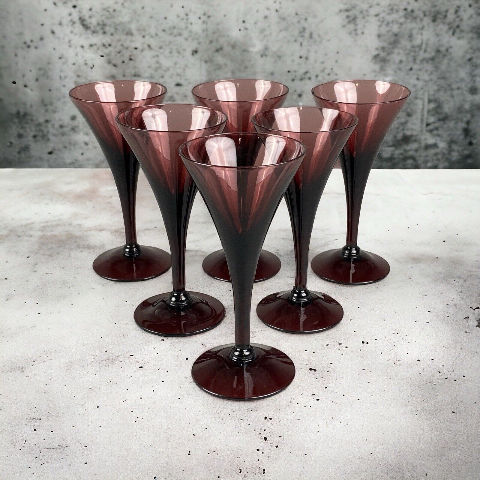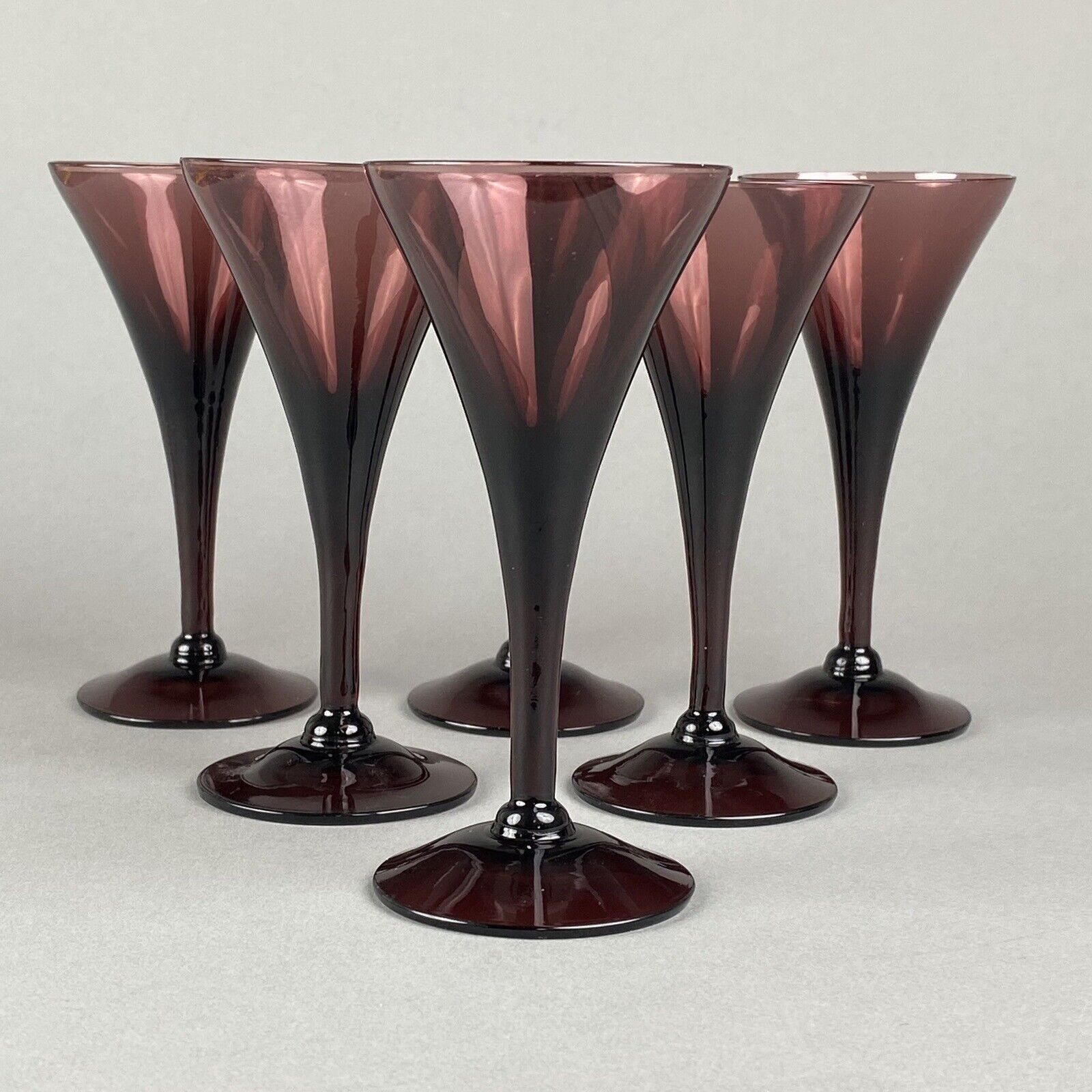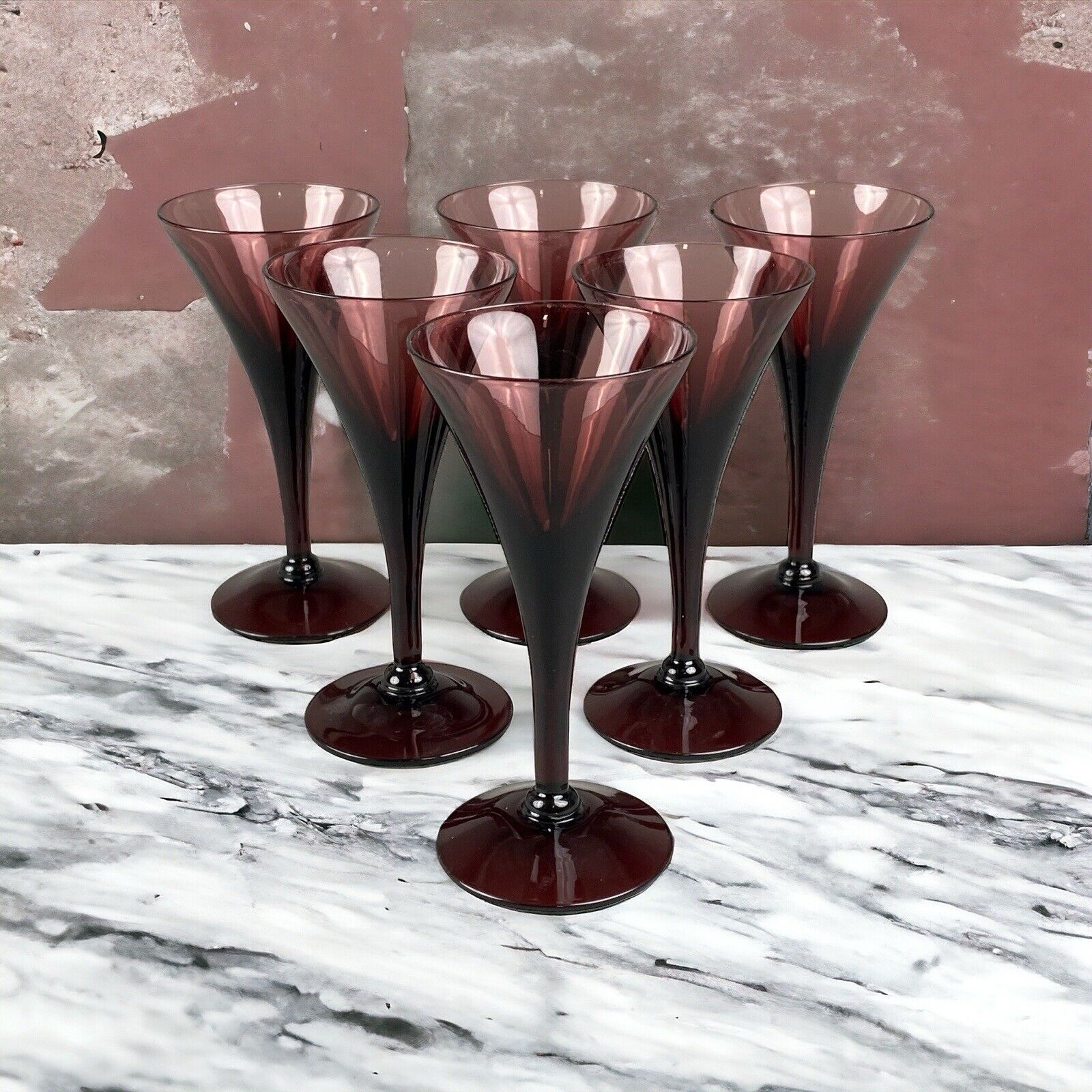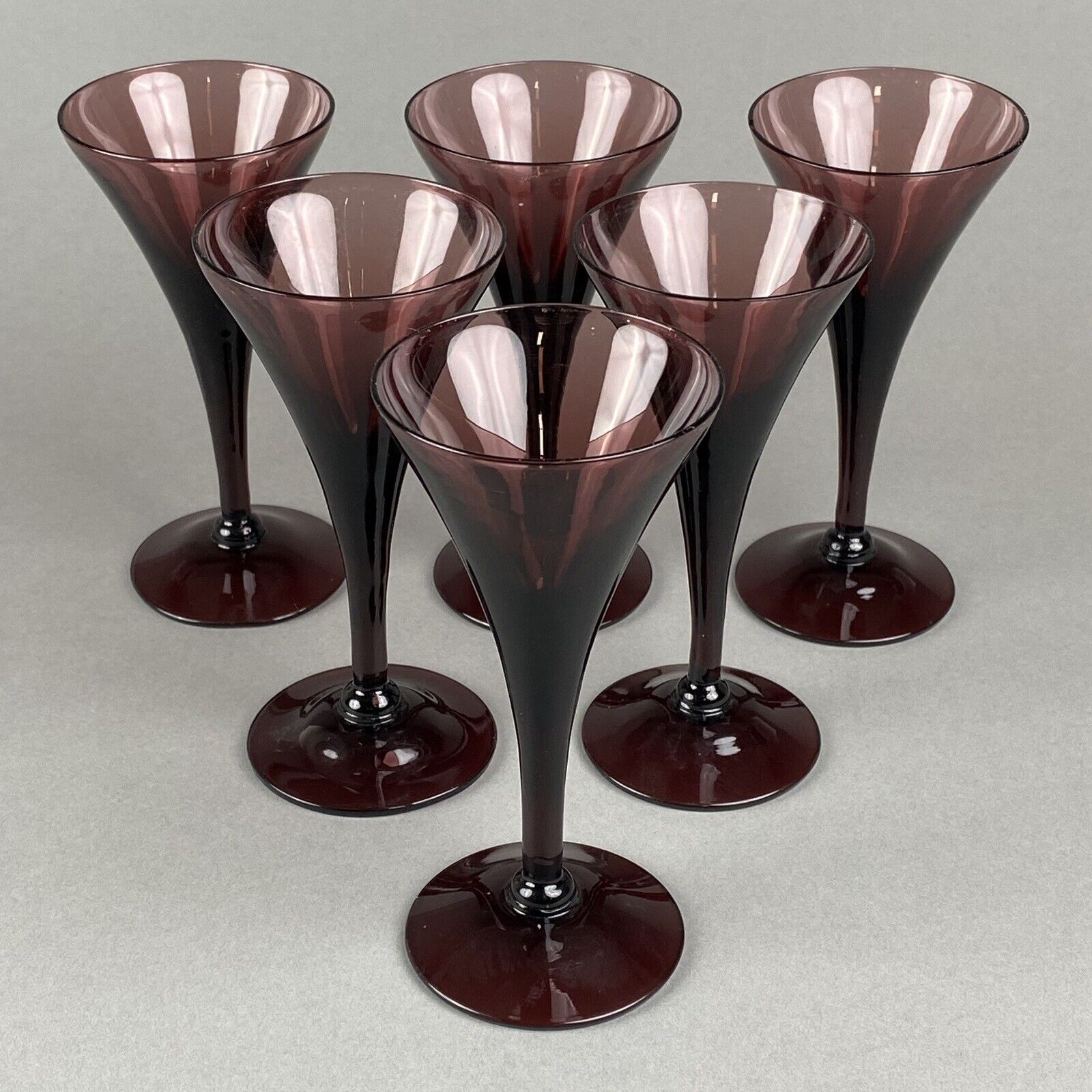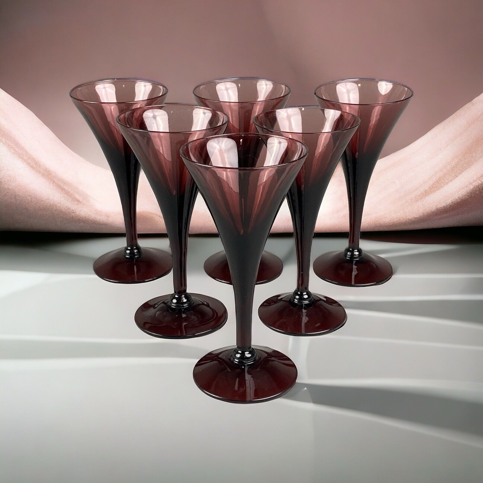 Set of 6 Cambridge Amethyst Glasses Mid Century Modern Wine Champagne