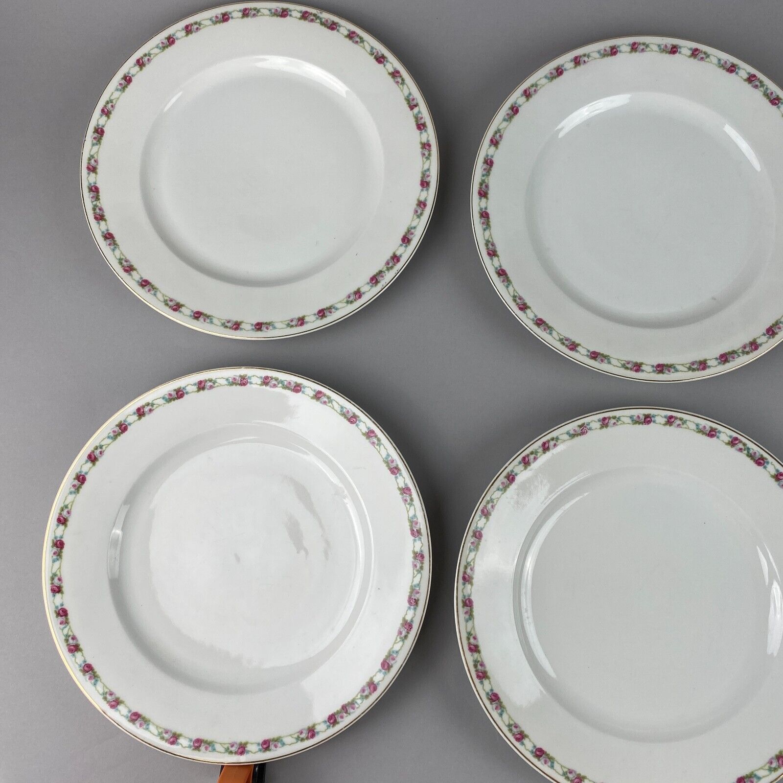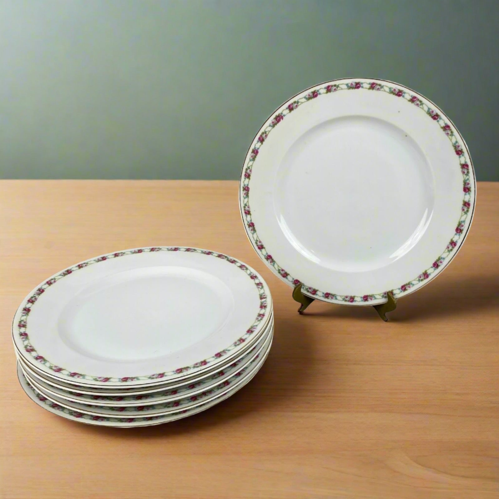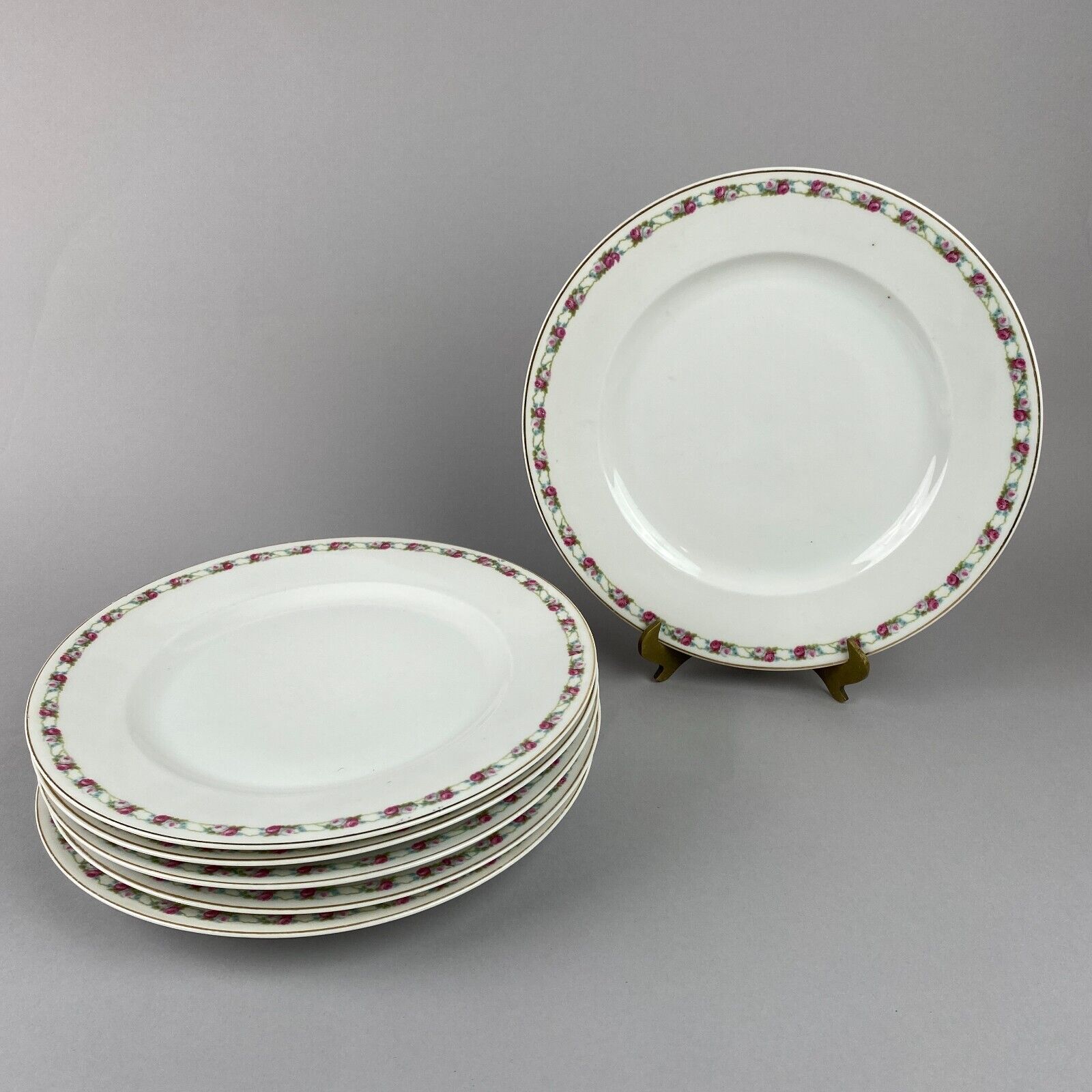 Set of 6 Vintage TK Czechoslovakia Floral Plates with Gold Trim