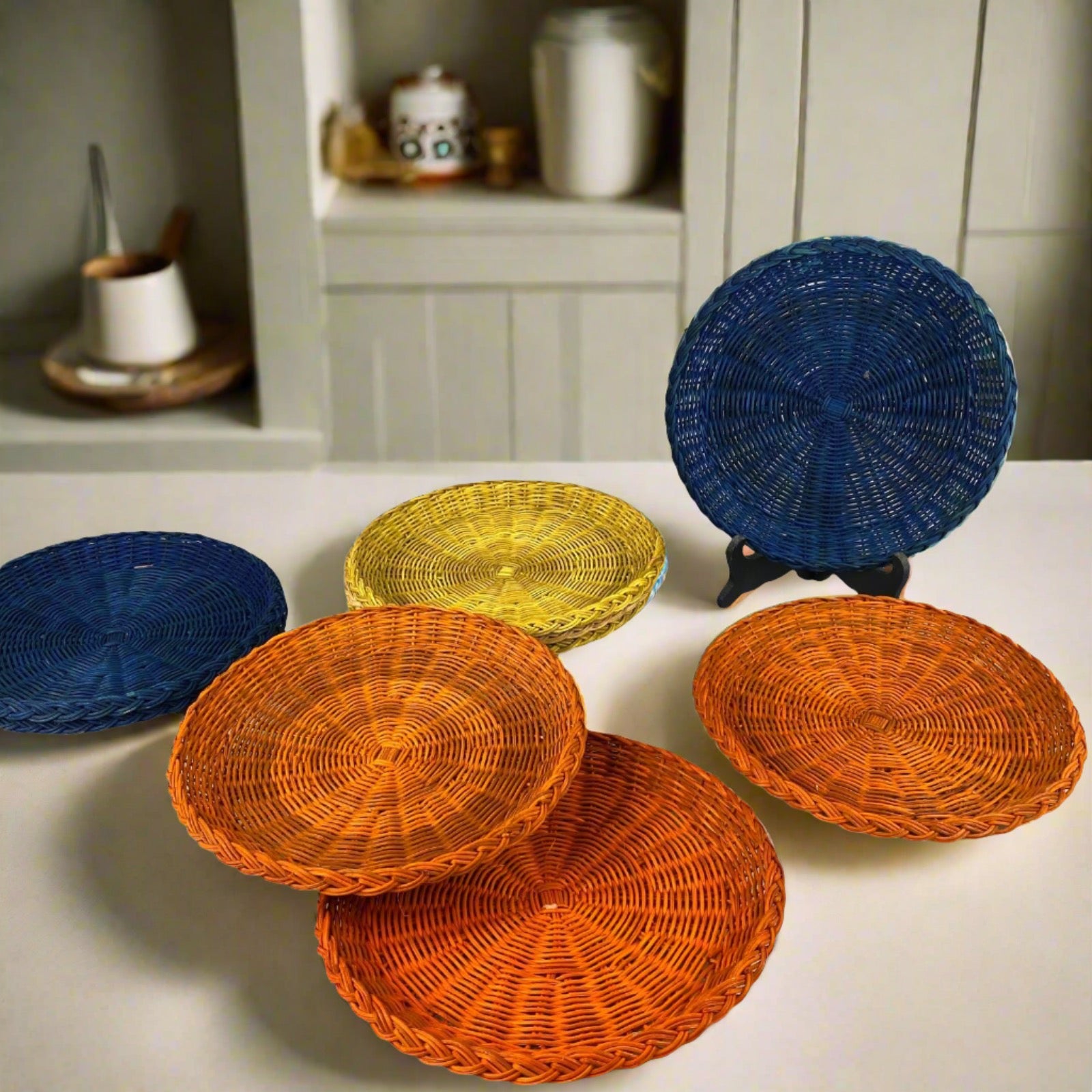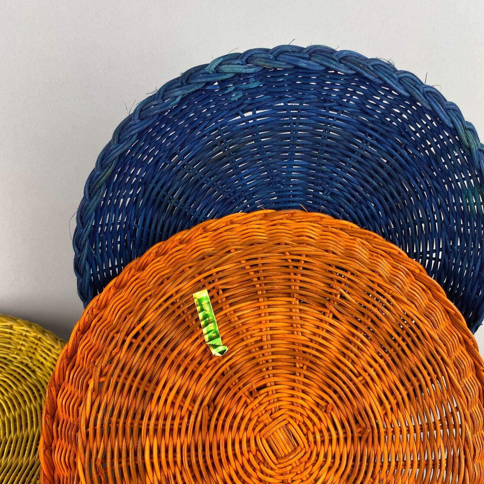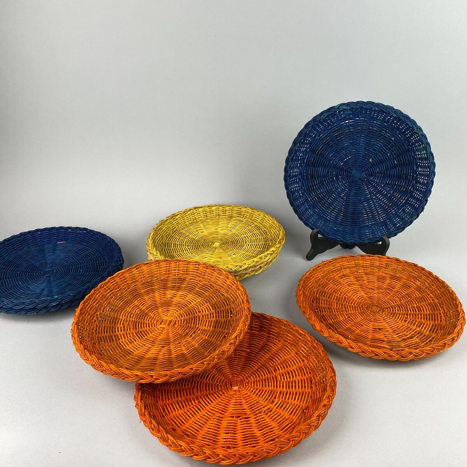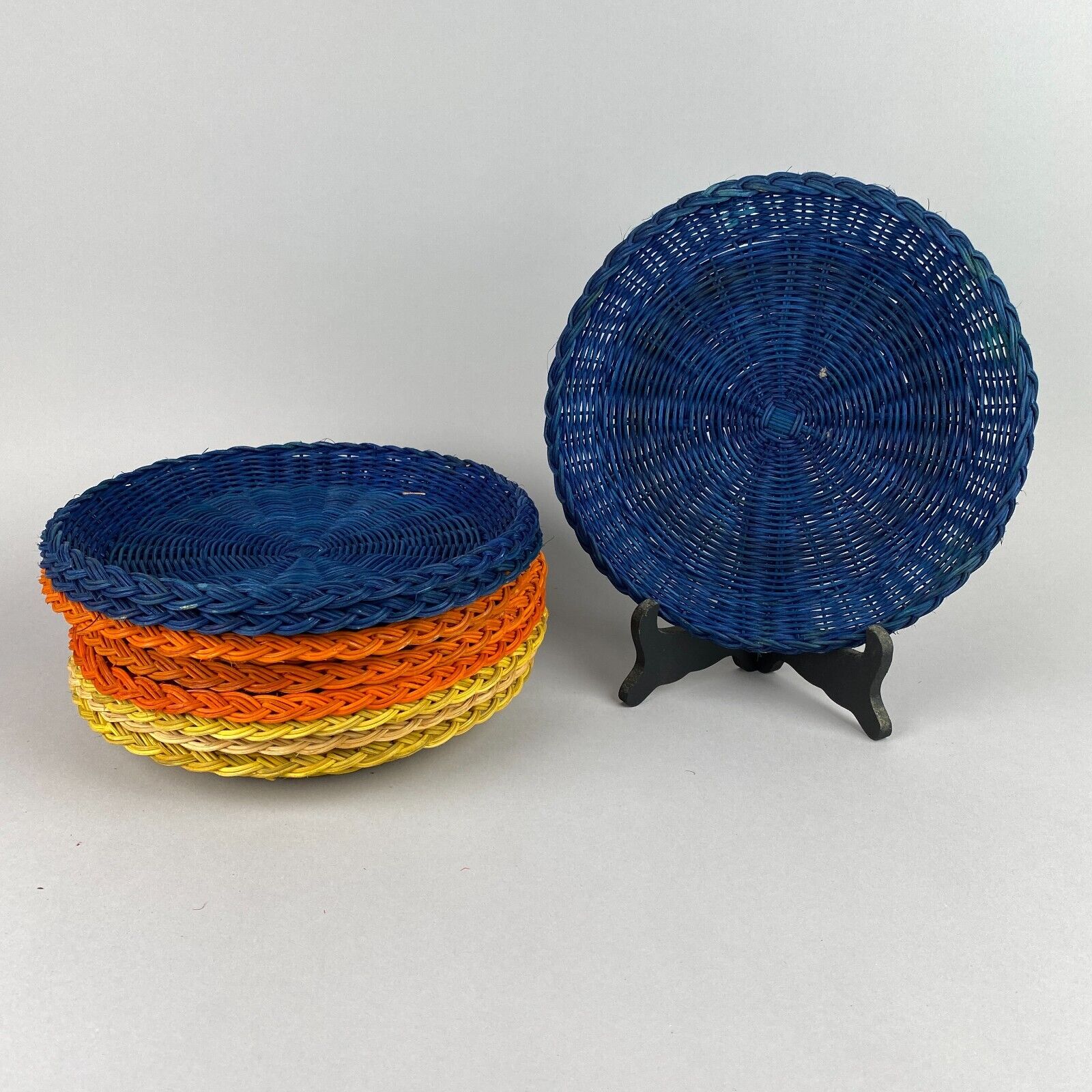 Set of 9 Multicolor Rattan Plates, Made in Hongkong