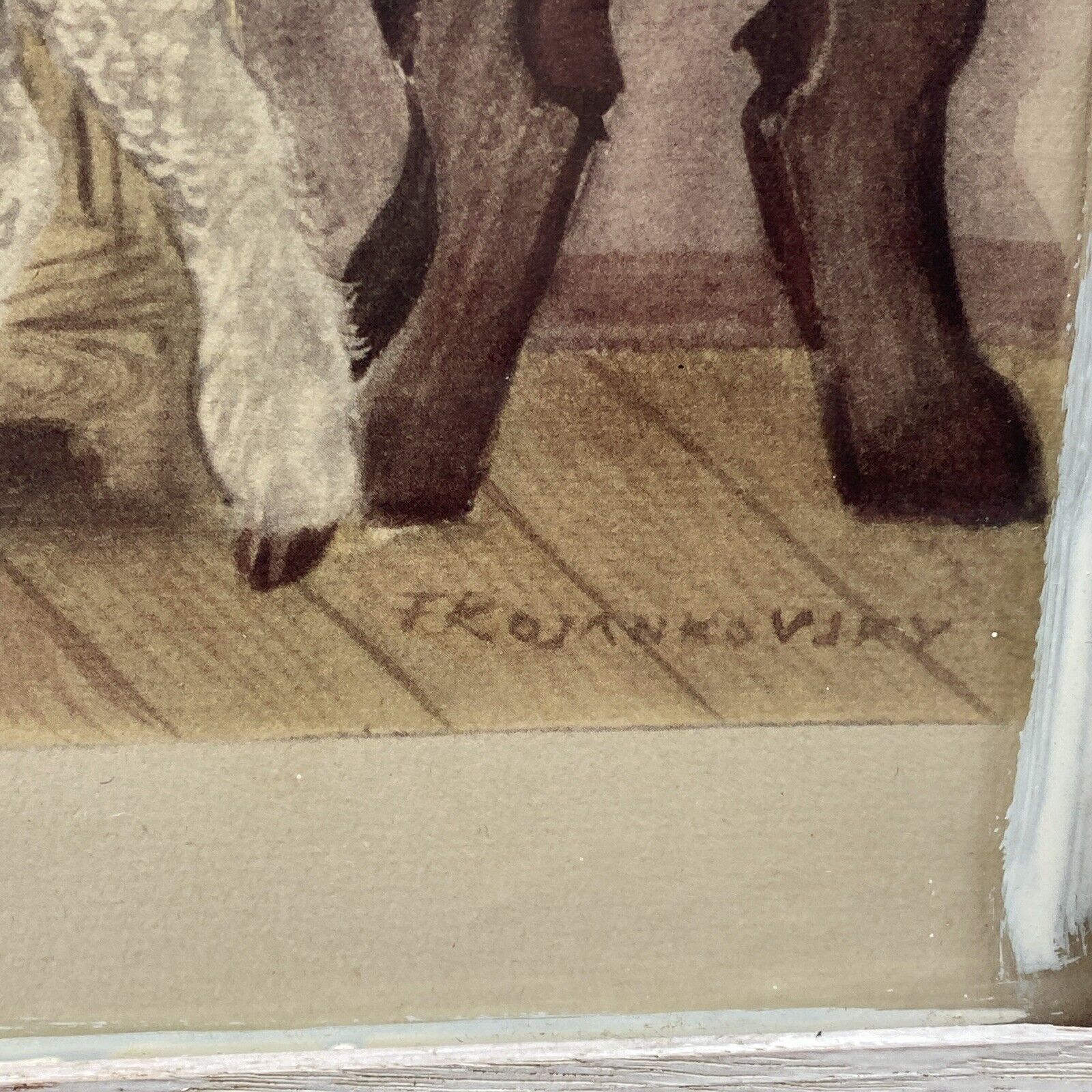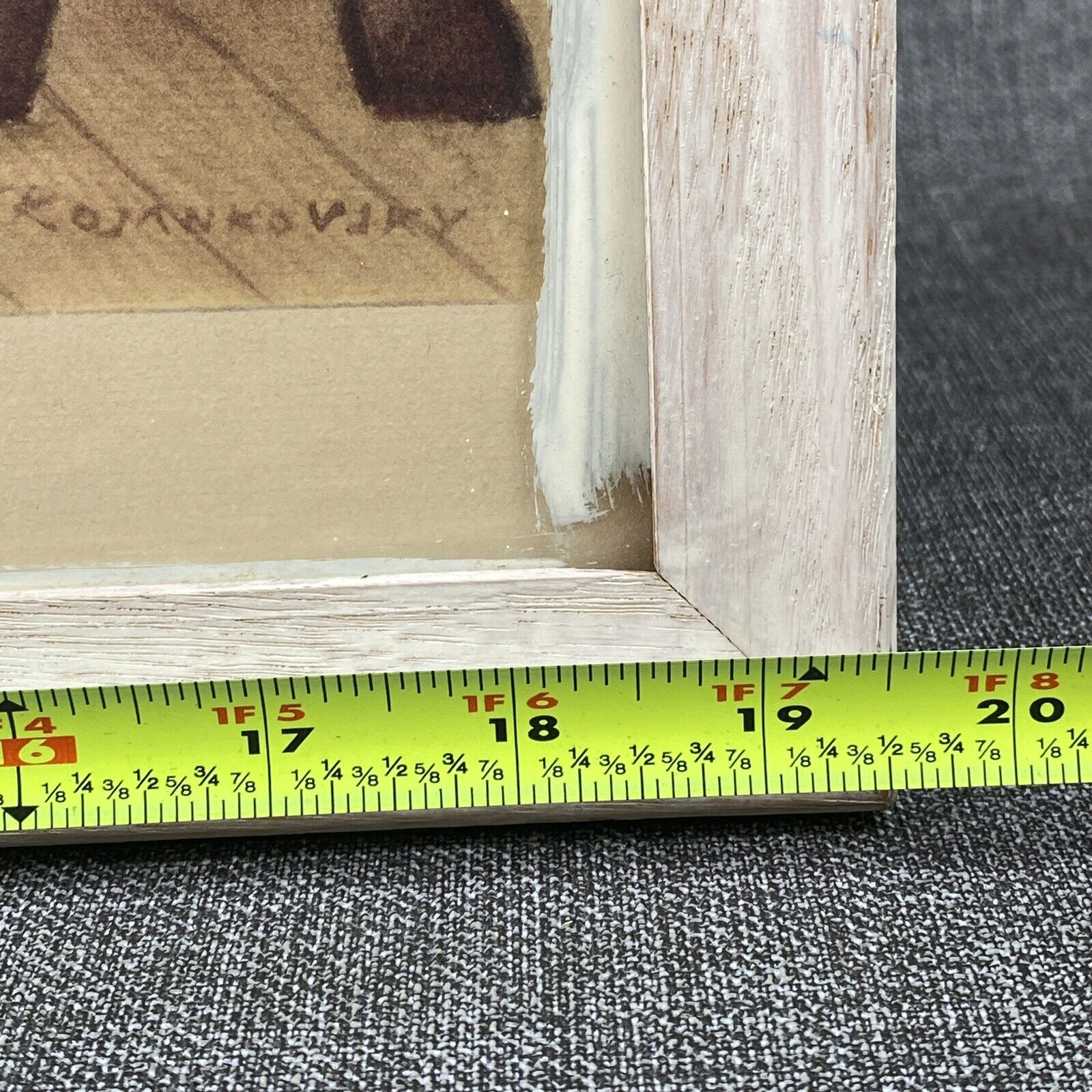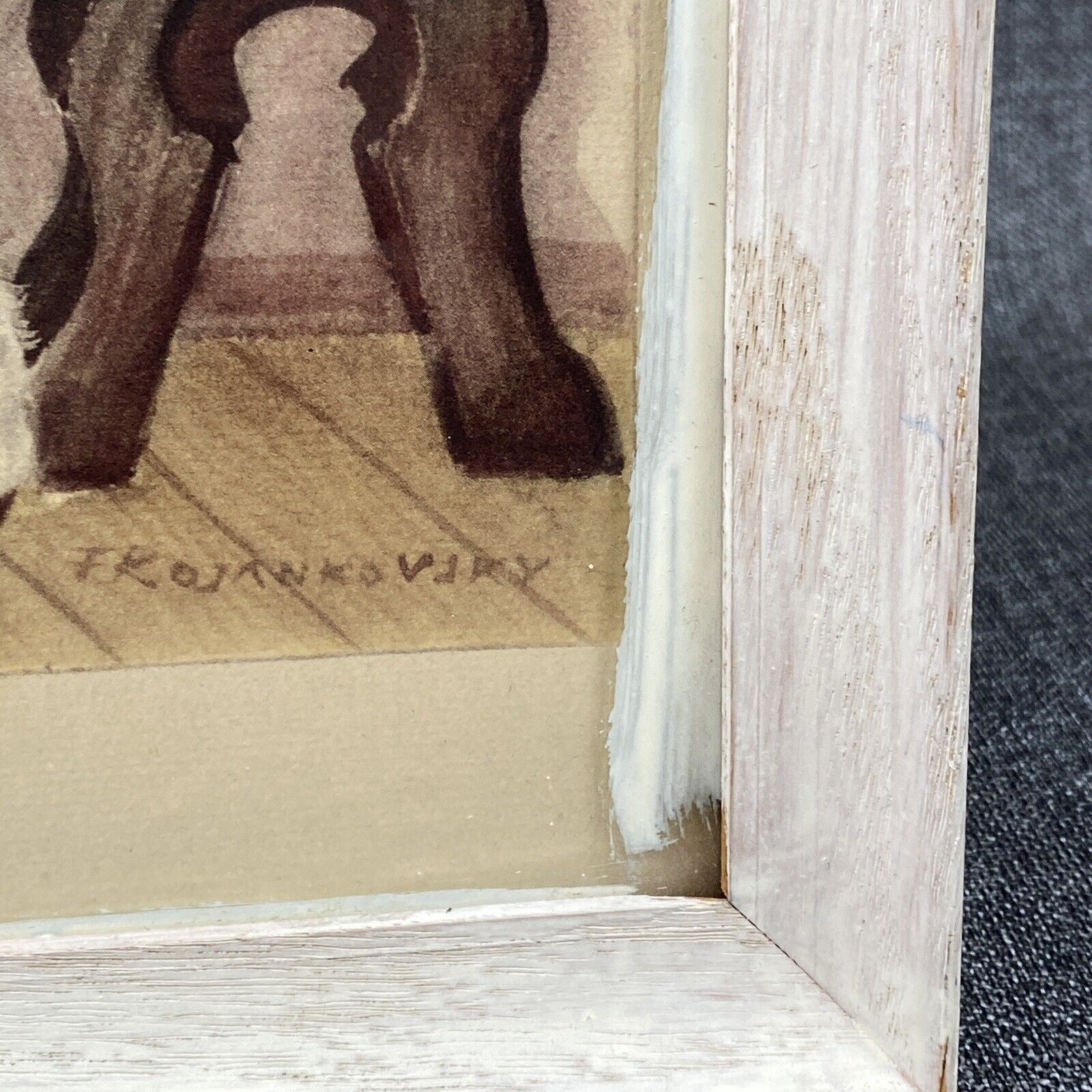 hard wood frame was painted at some point (overpaint on the glass)