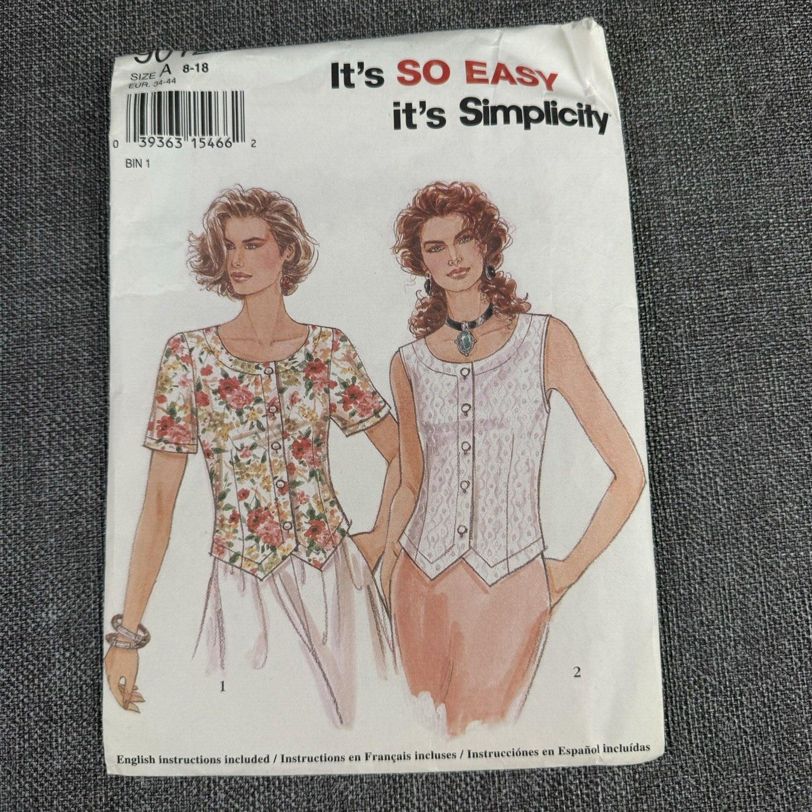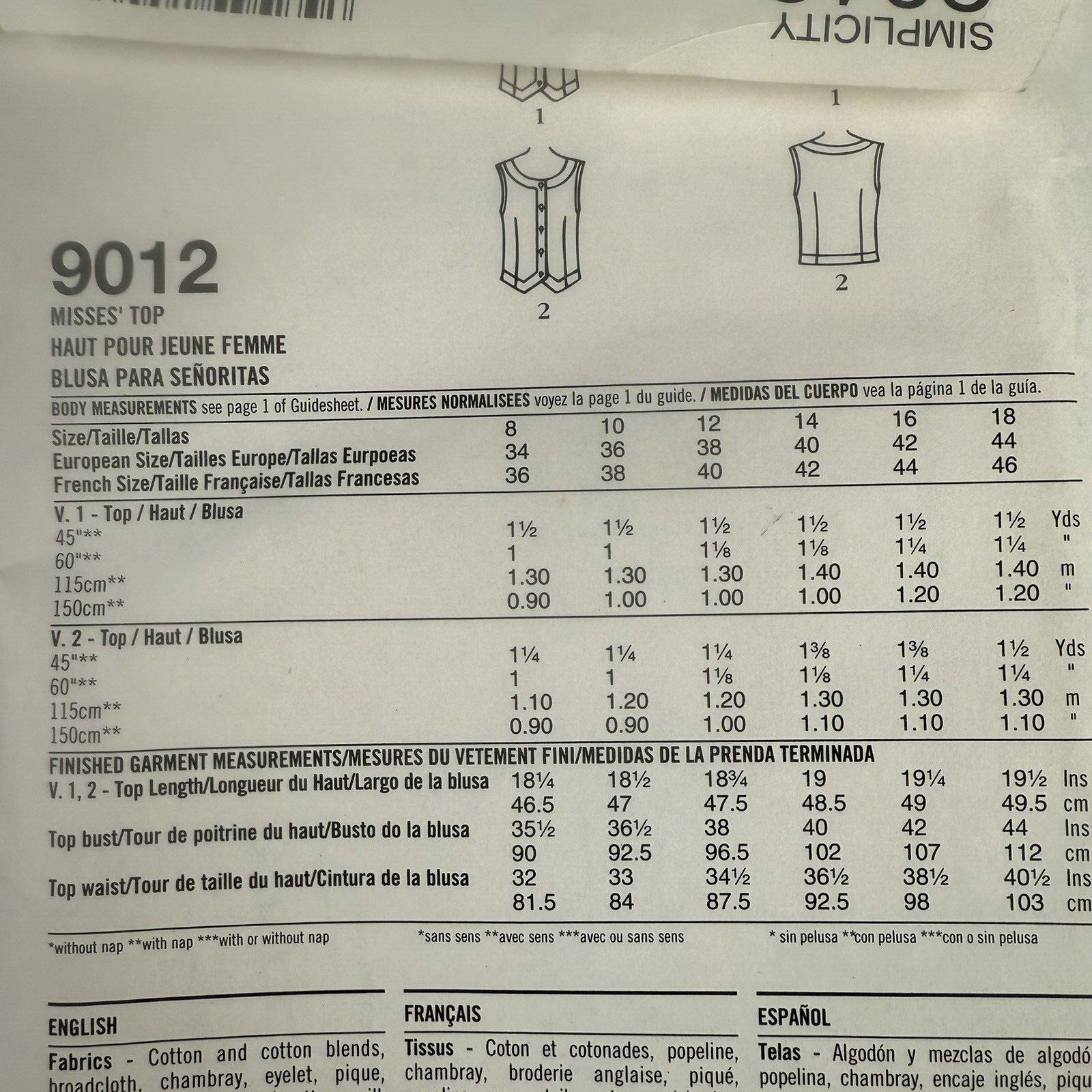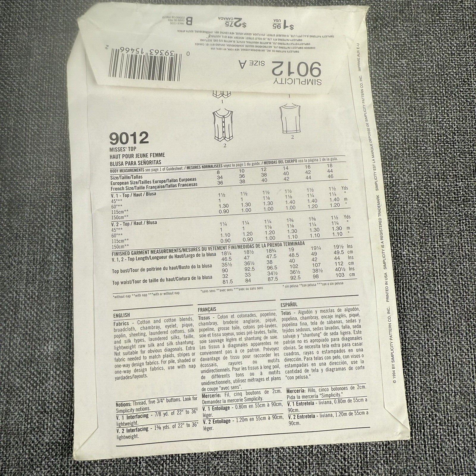 Simplicity #9012 - Ladies Scoop Neckline Top W/scalloped Hem Pattern 8-18