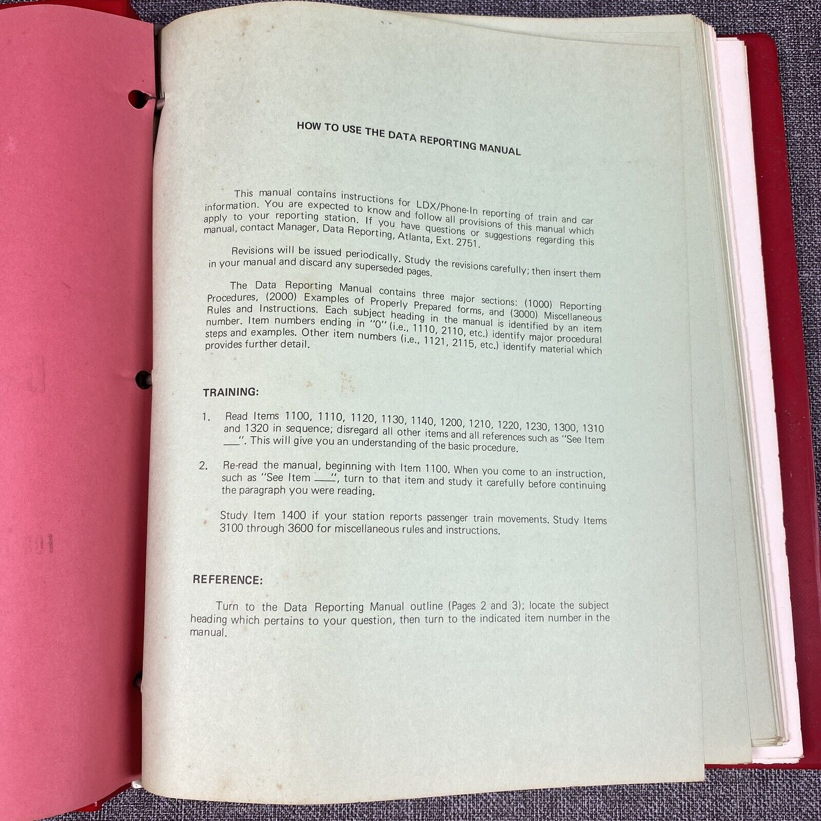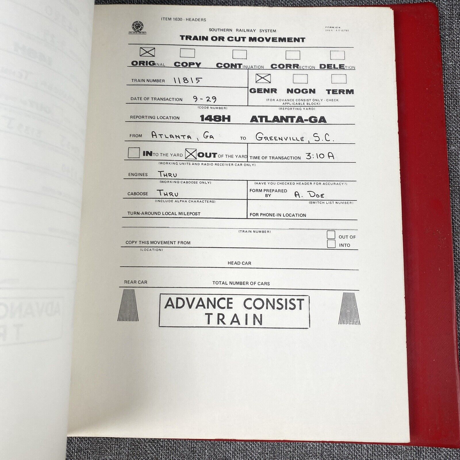 Southern Railway SOU RR Data Reporting Manual , Advance Consist , 1970's