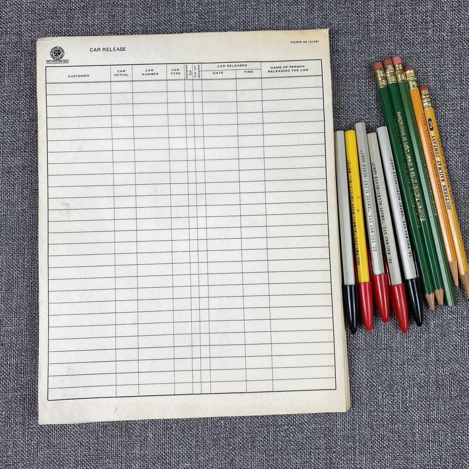 Southern Railway SOU RR lot of 50 Car Release Form #56 , Pencils and Pens, 1969