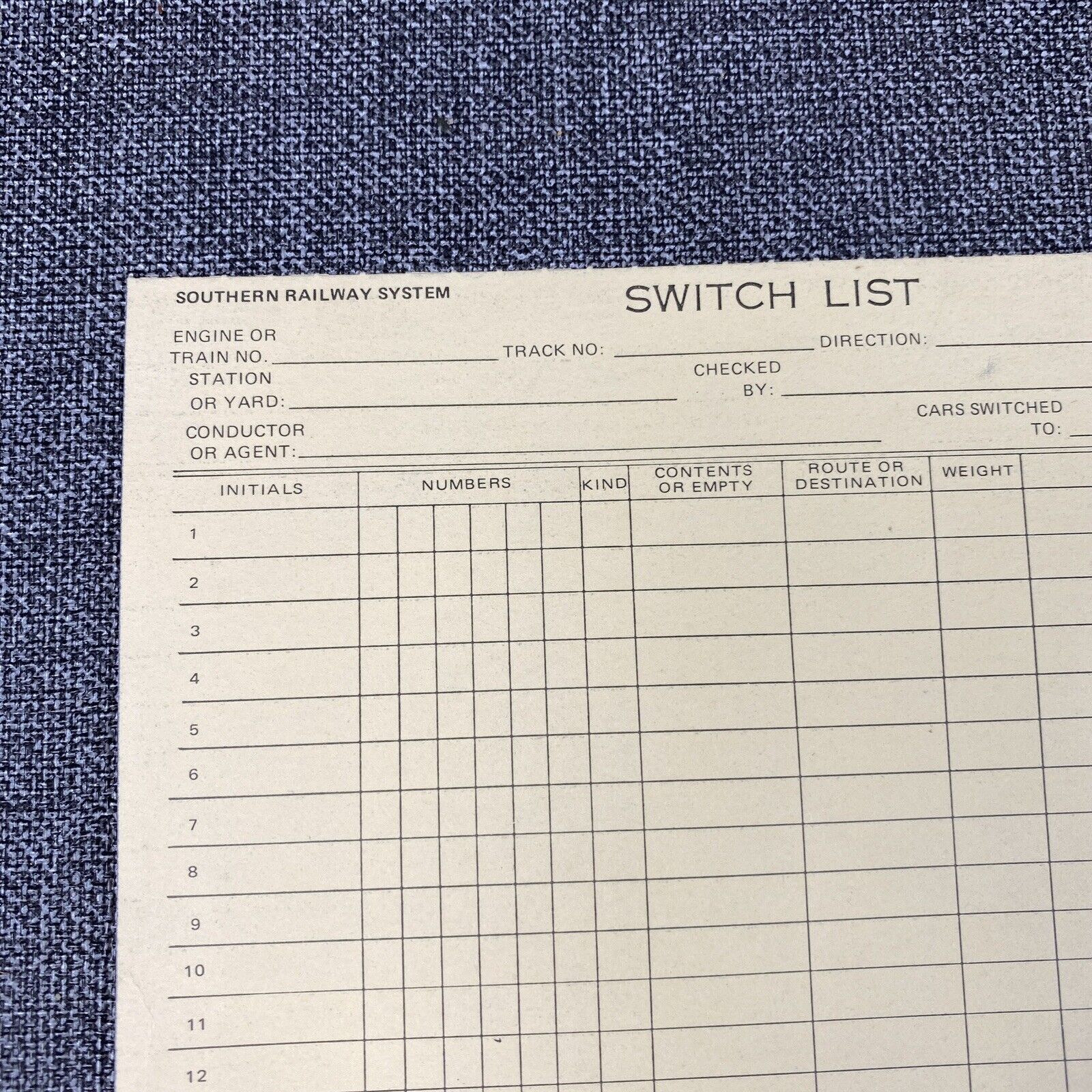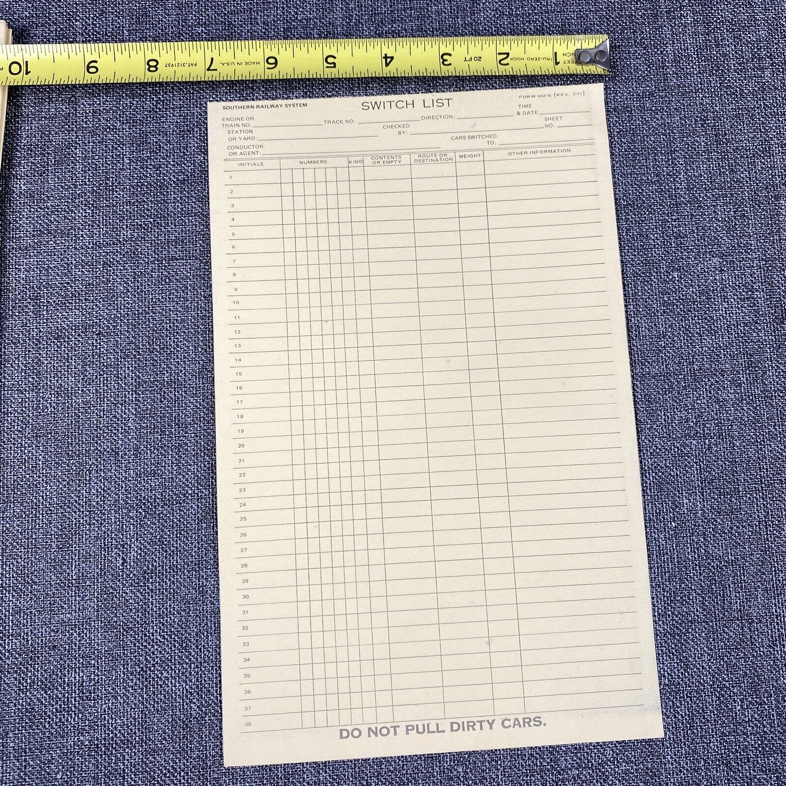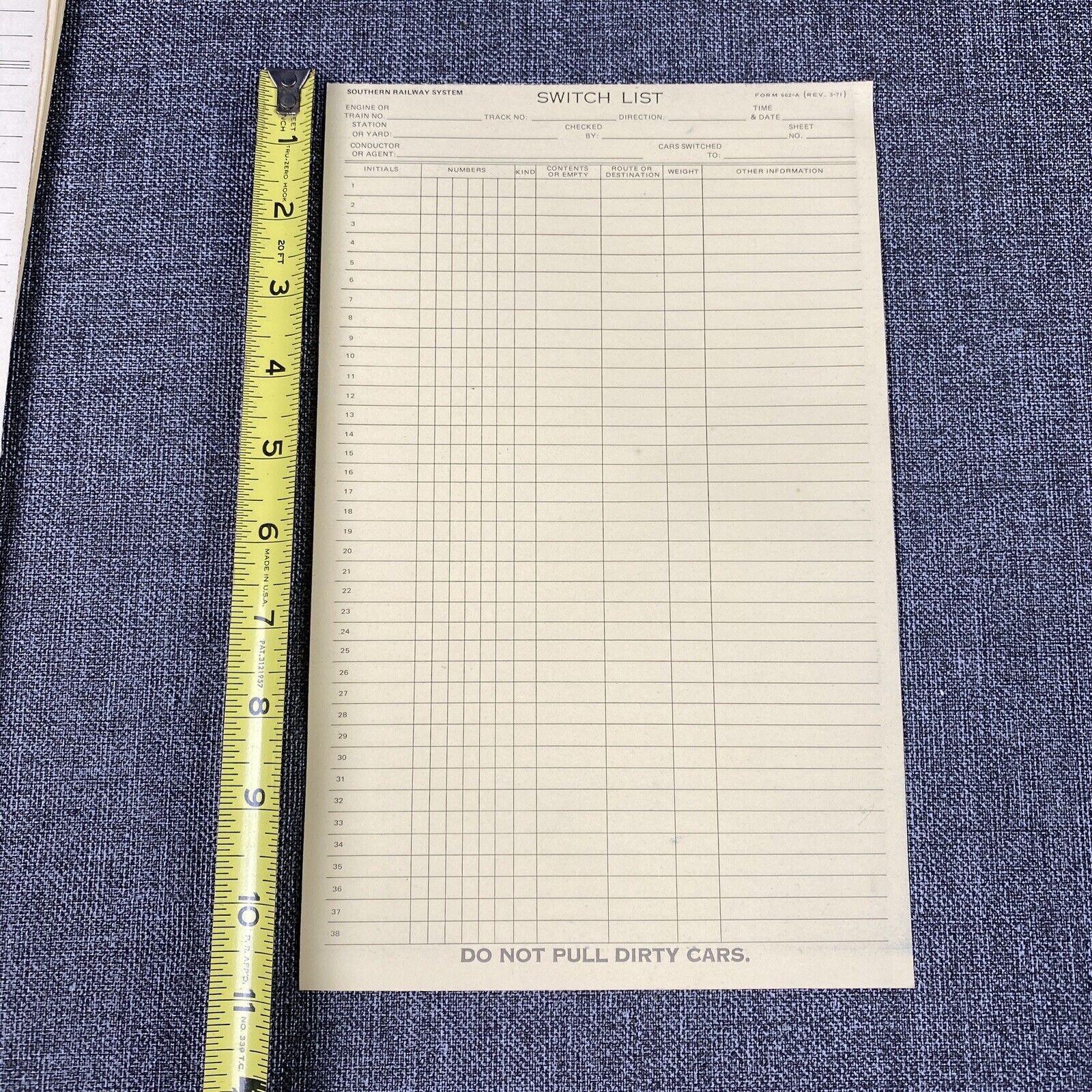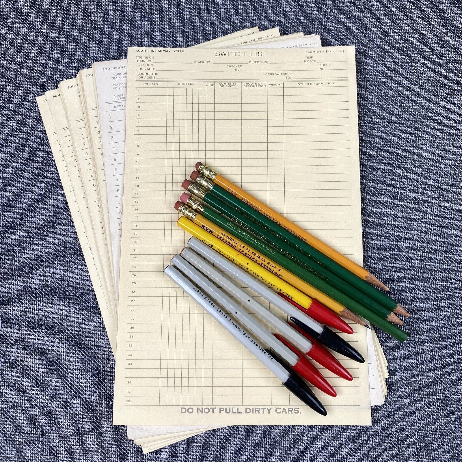 Southern Railway System SOU Switch List Form 662-A + Pencils and Pens, 1970's