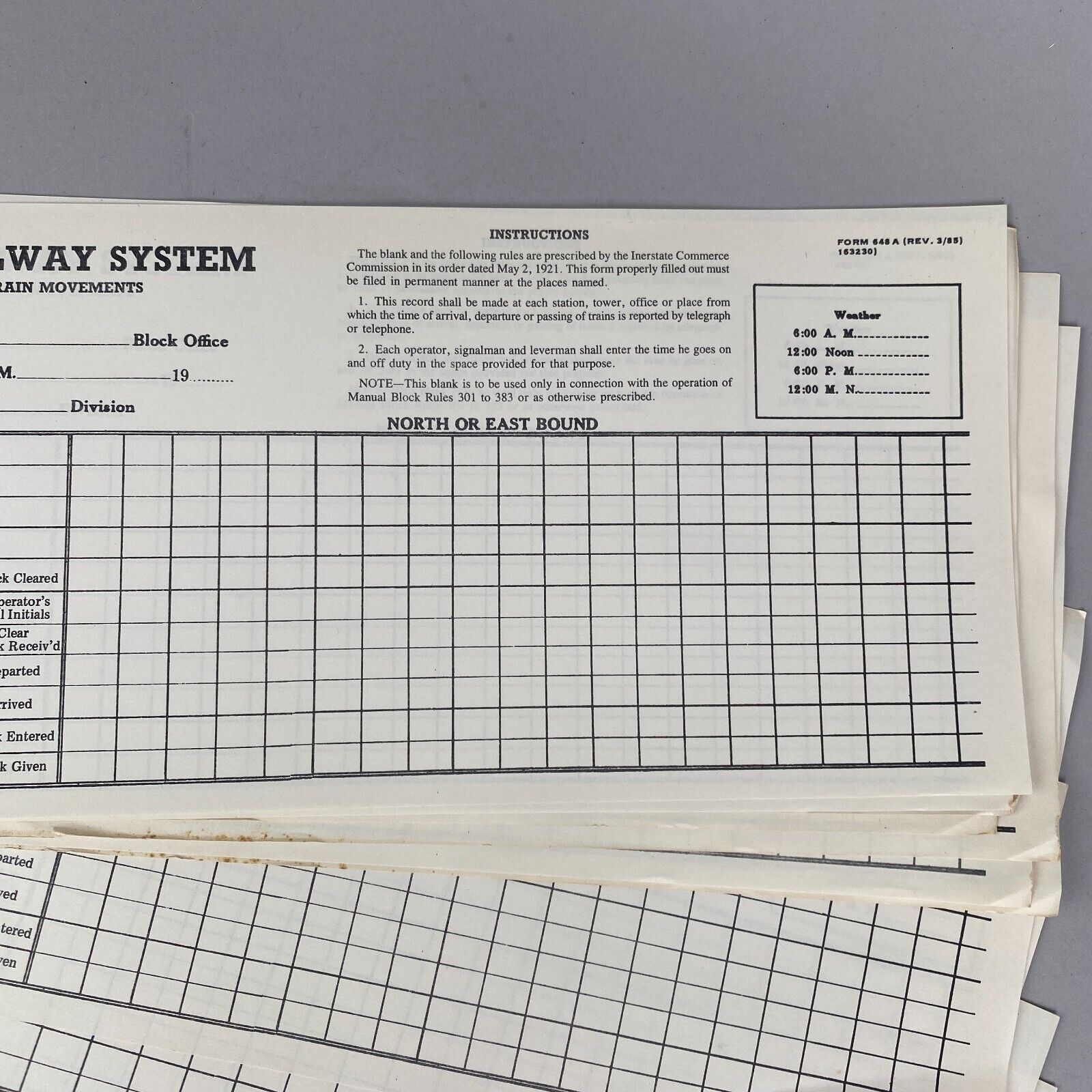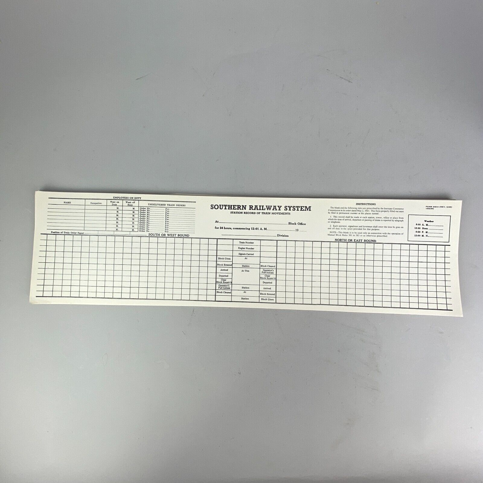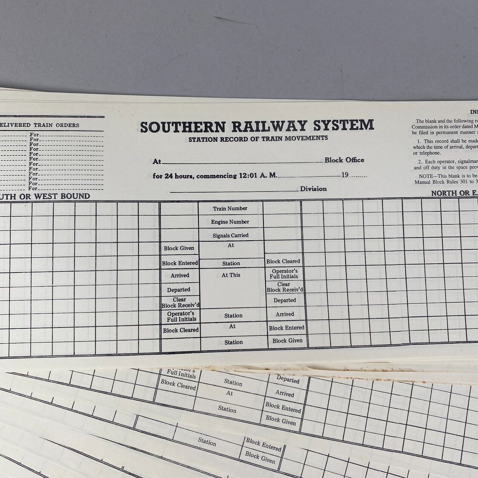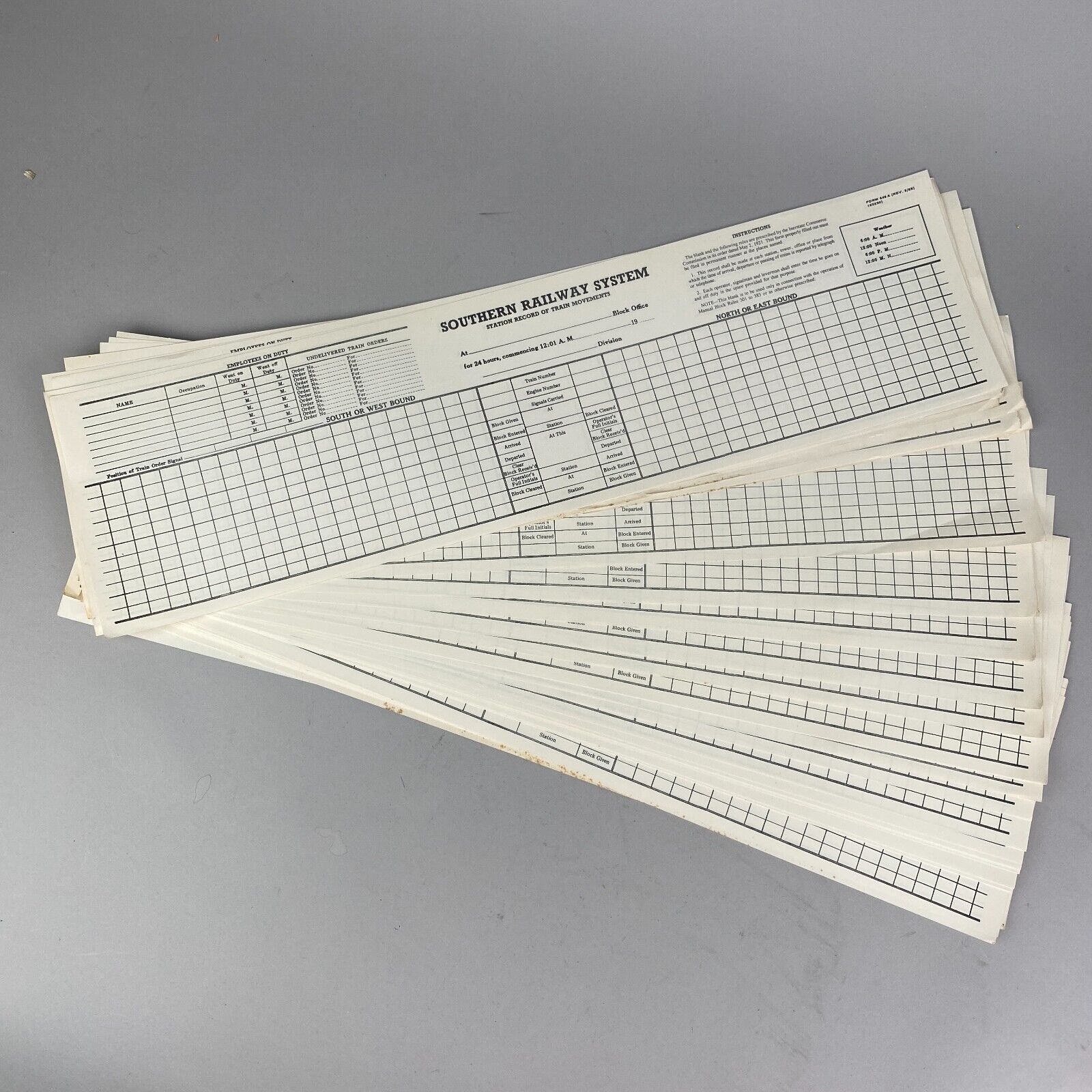 Southern Railway System Station Record of Train Movement Form 648A, 50 forms