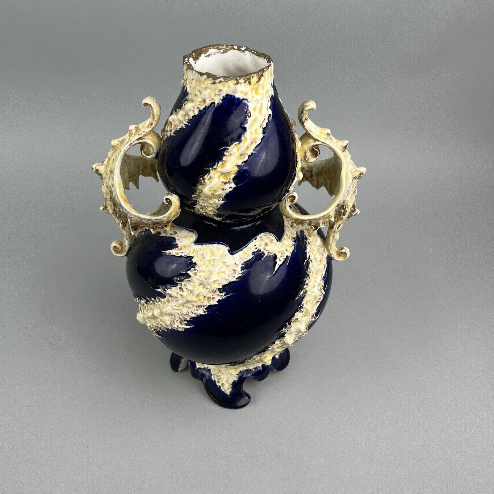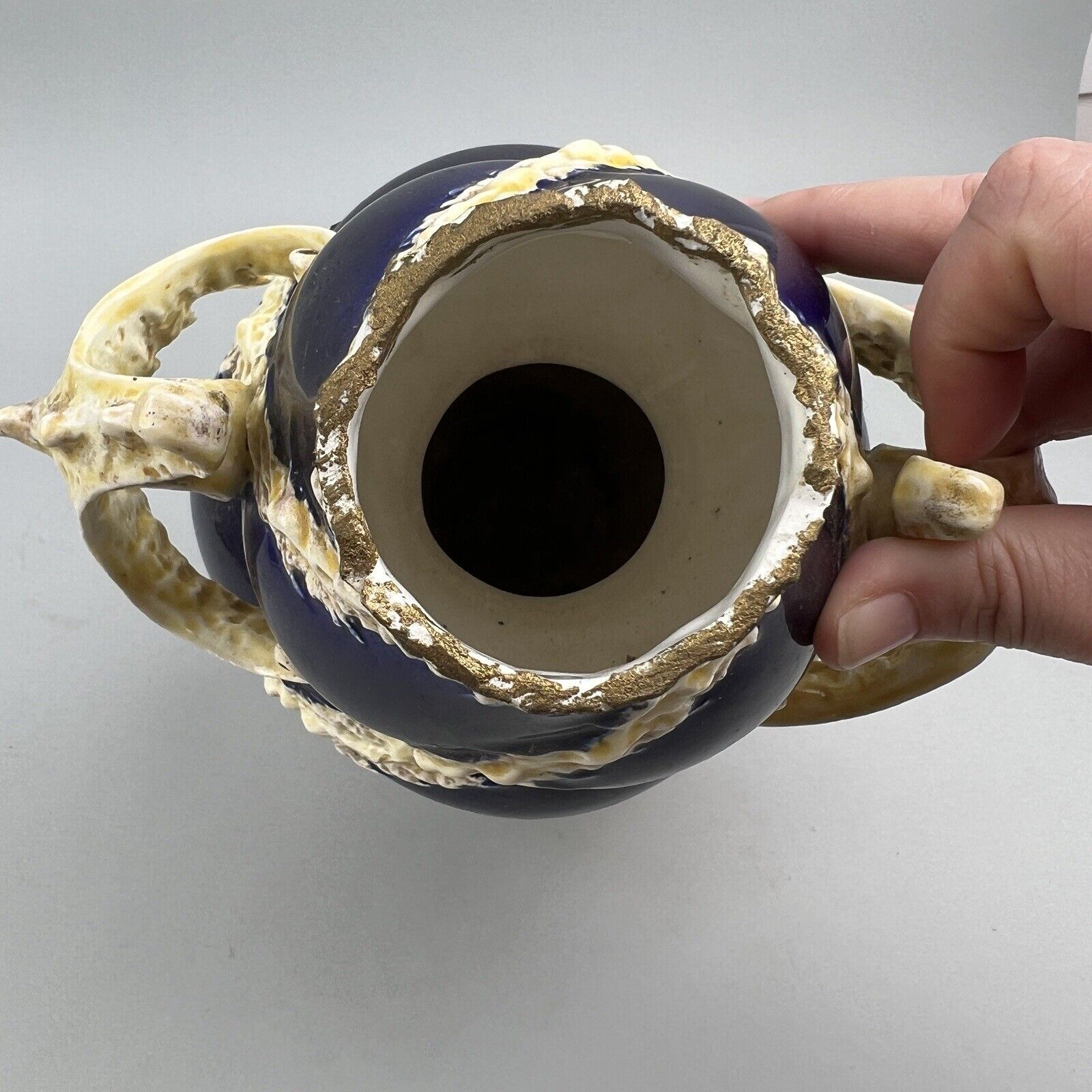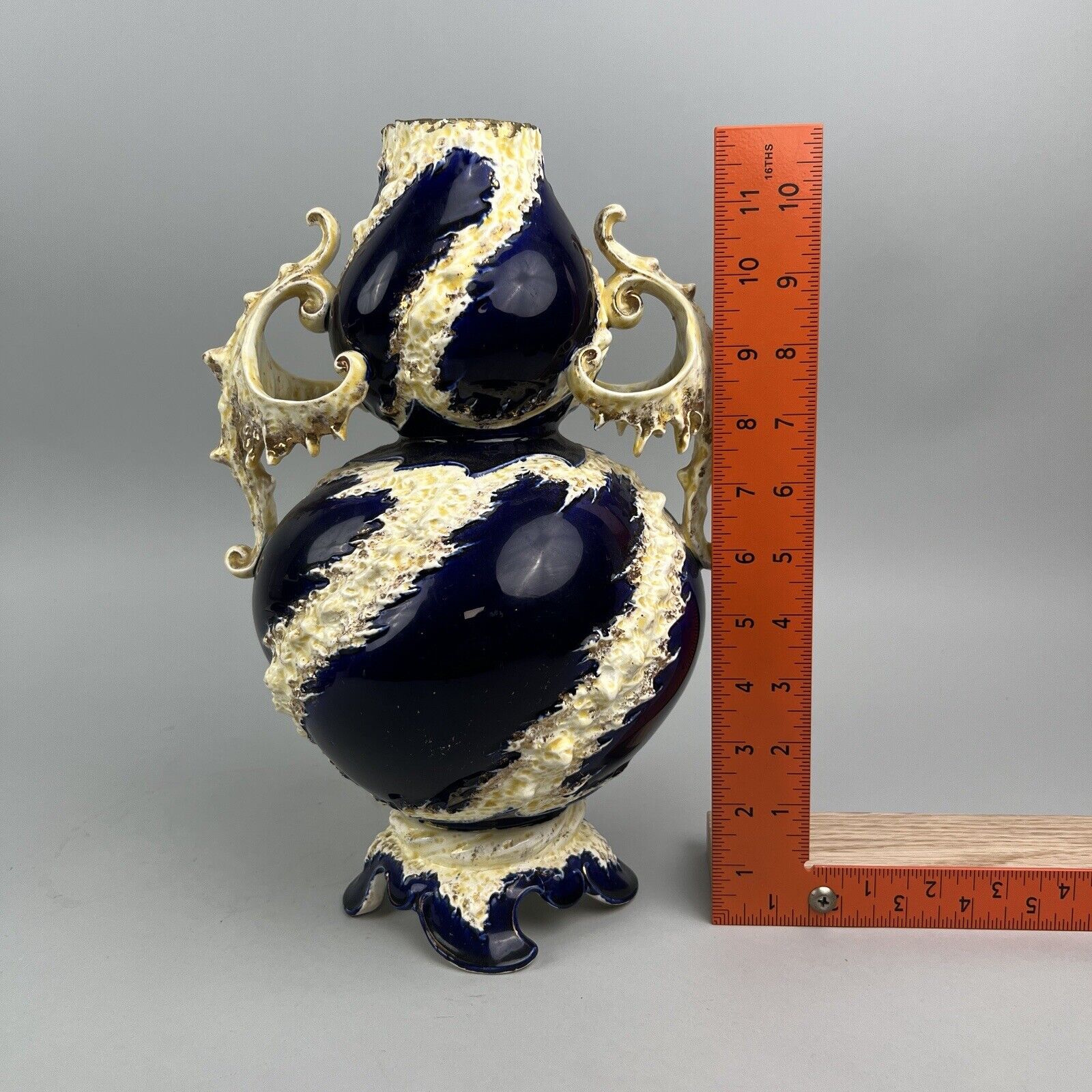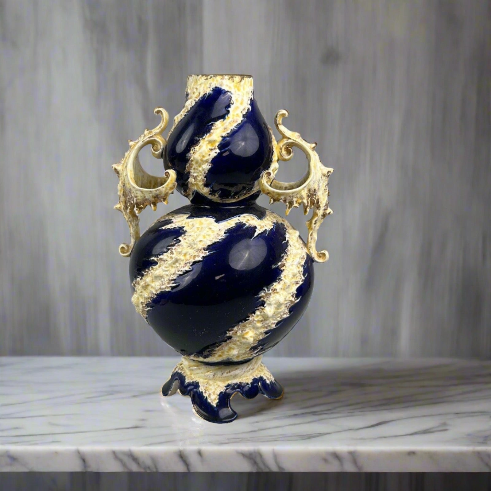 Springer & Co. Elbogen Circa 1890s - Cobalt Blue Pitcher w/ Gold Spiral Design