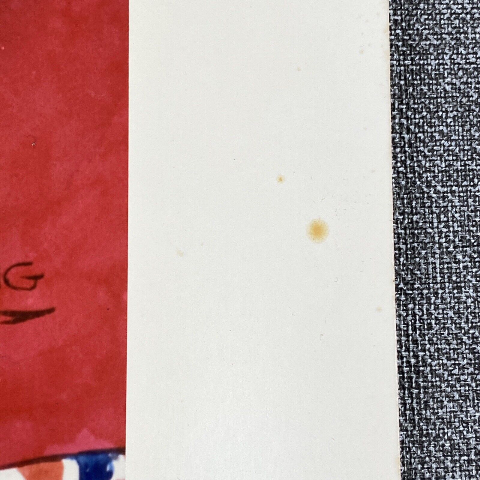 - good overall condition, it's been stored rolled in the case , 2 yellow age spots close to the border