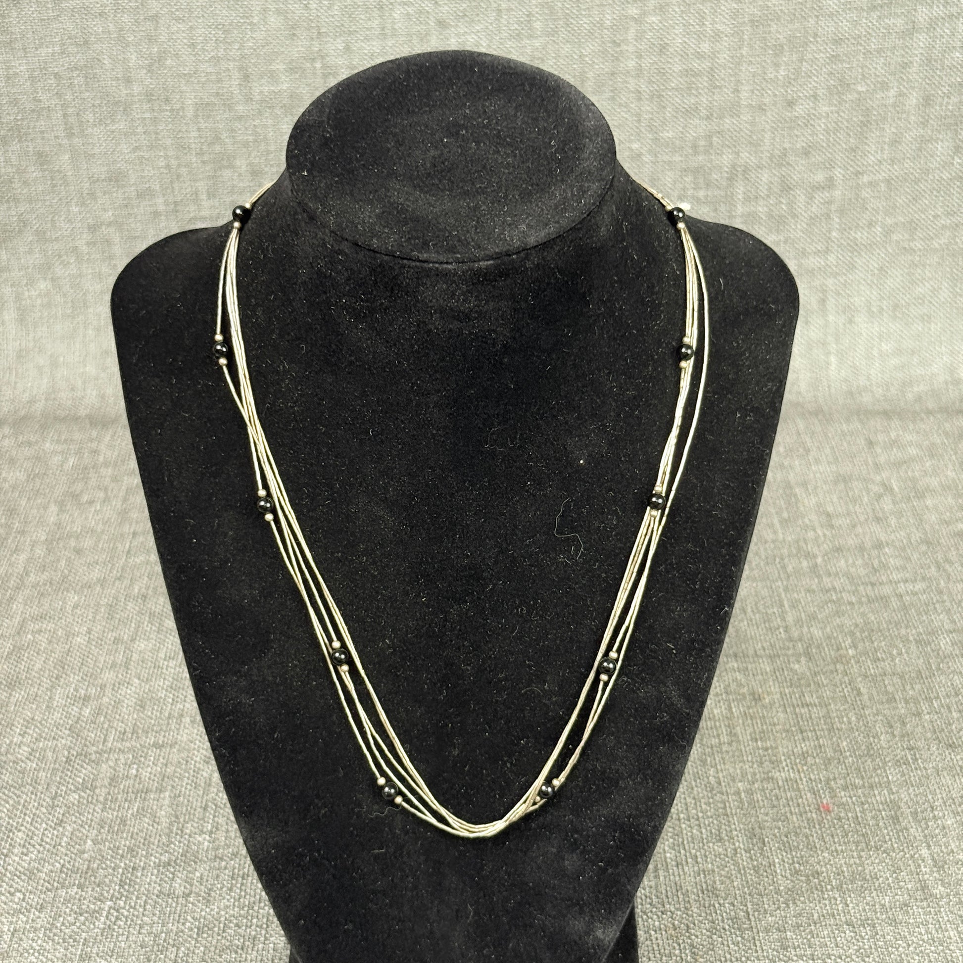Sterling Layered Necklace featuring striking black accents. At 18 inches, it sits perfectly to complement any outfit