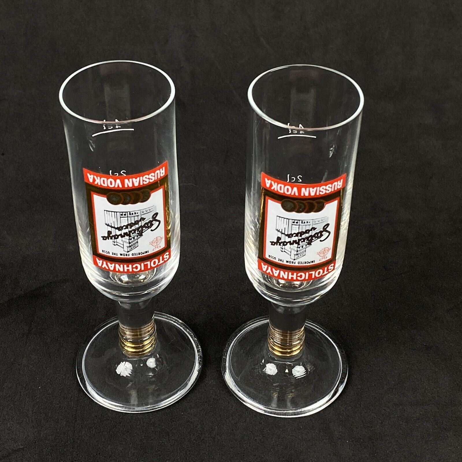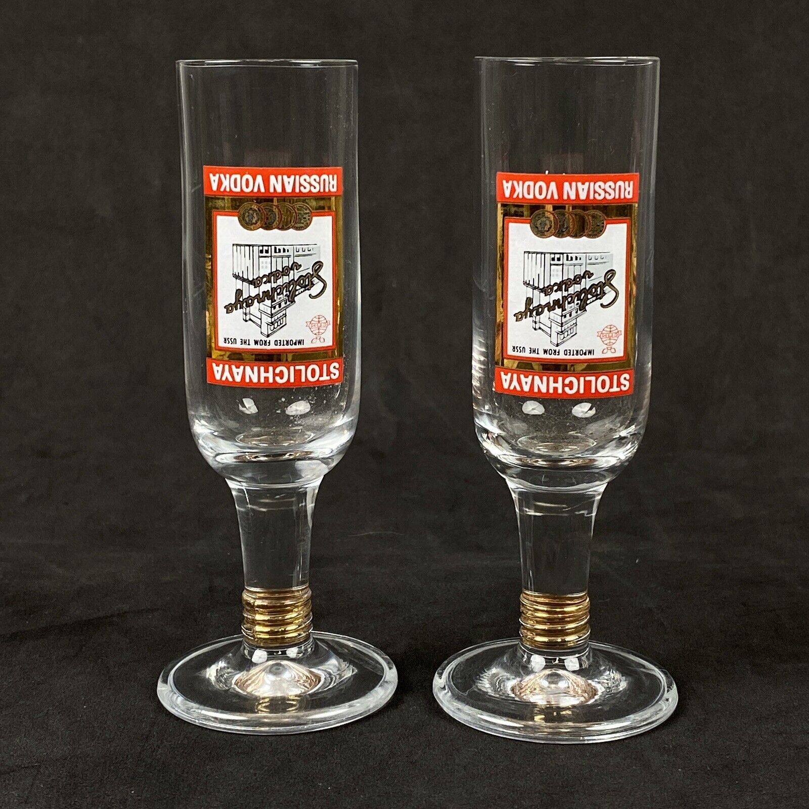 Stolichnaya Russian Vodka 4 Clear Glass Footed Upside Down Shot Glass. 5”