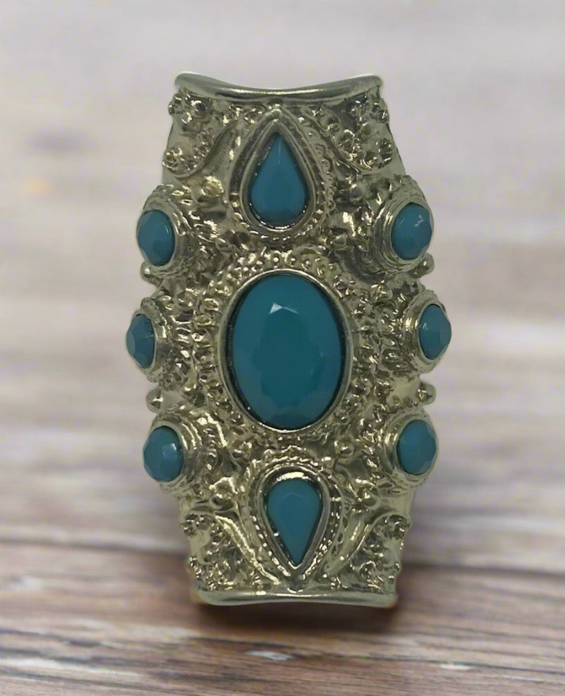 Teal and Gold Stone Stretch Ring