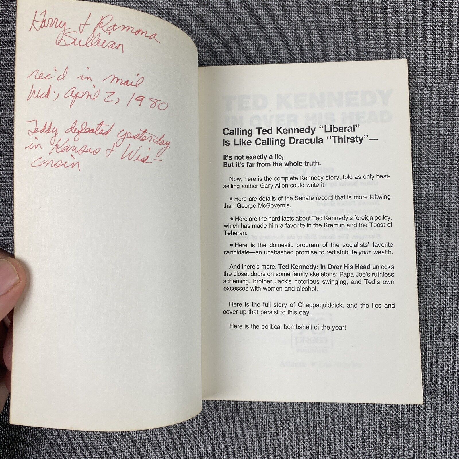 Ted Kennedy- In Over His Head By Gary Allen PB Book- First Printing (1980)