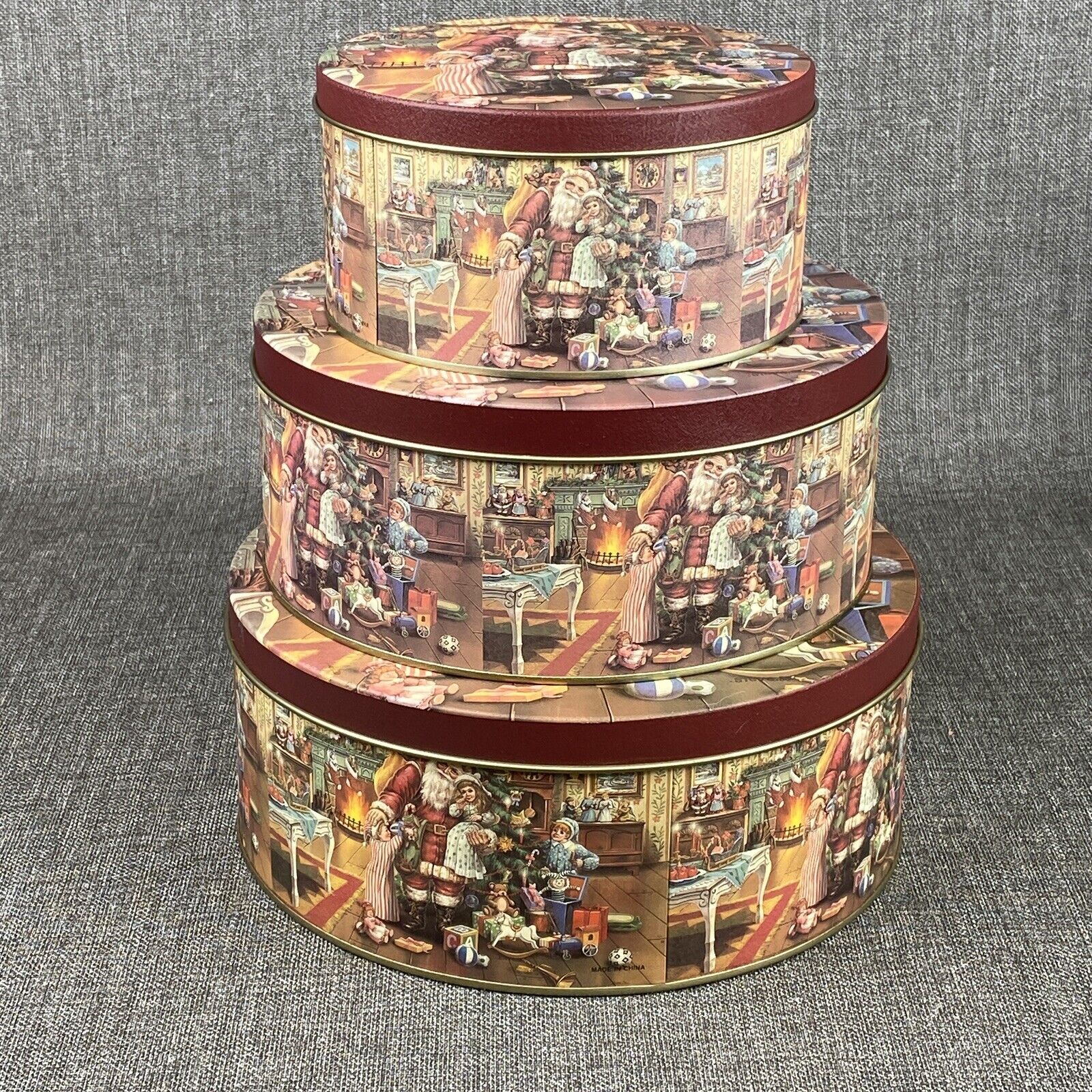 Unused Steve 88 Tin 3pc Canister Set Nested Christmas Scene Santa Presets Matted