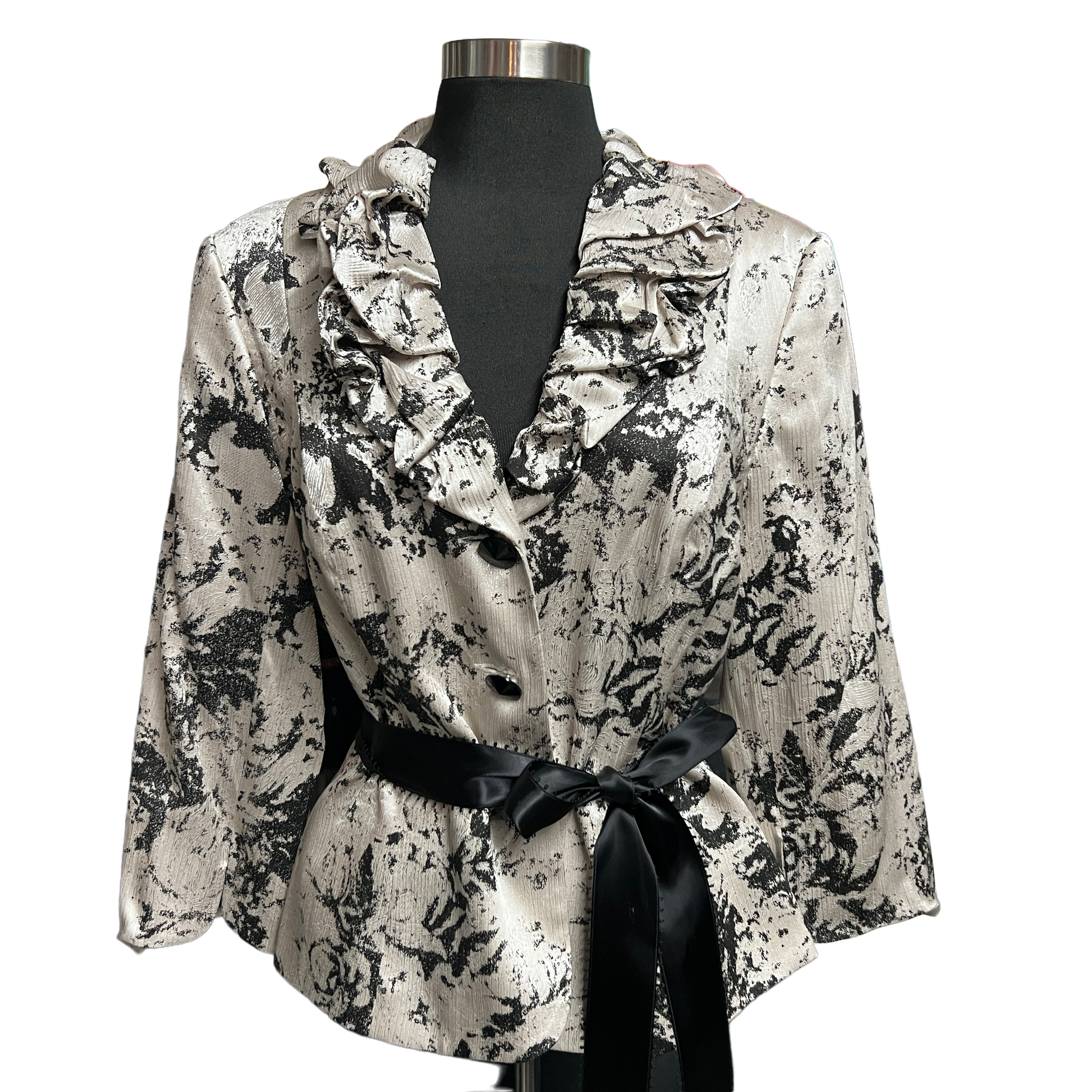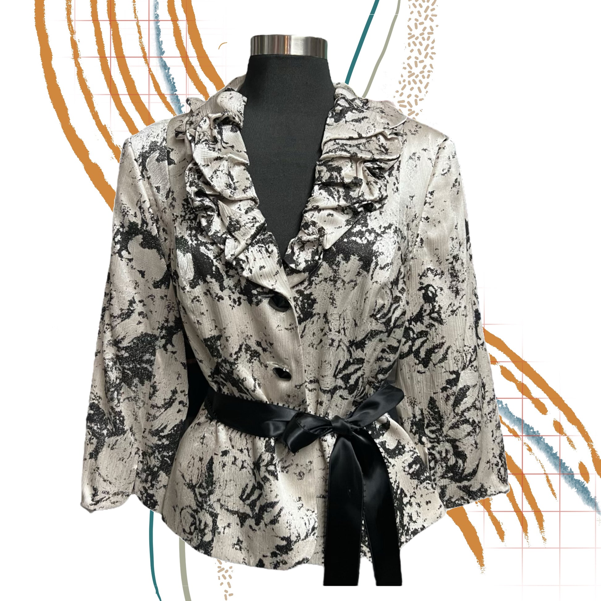 Victor Costa Gray Silver Elegant Blouse Size 12 Women's