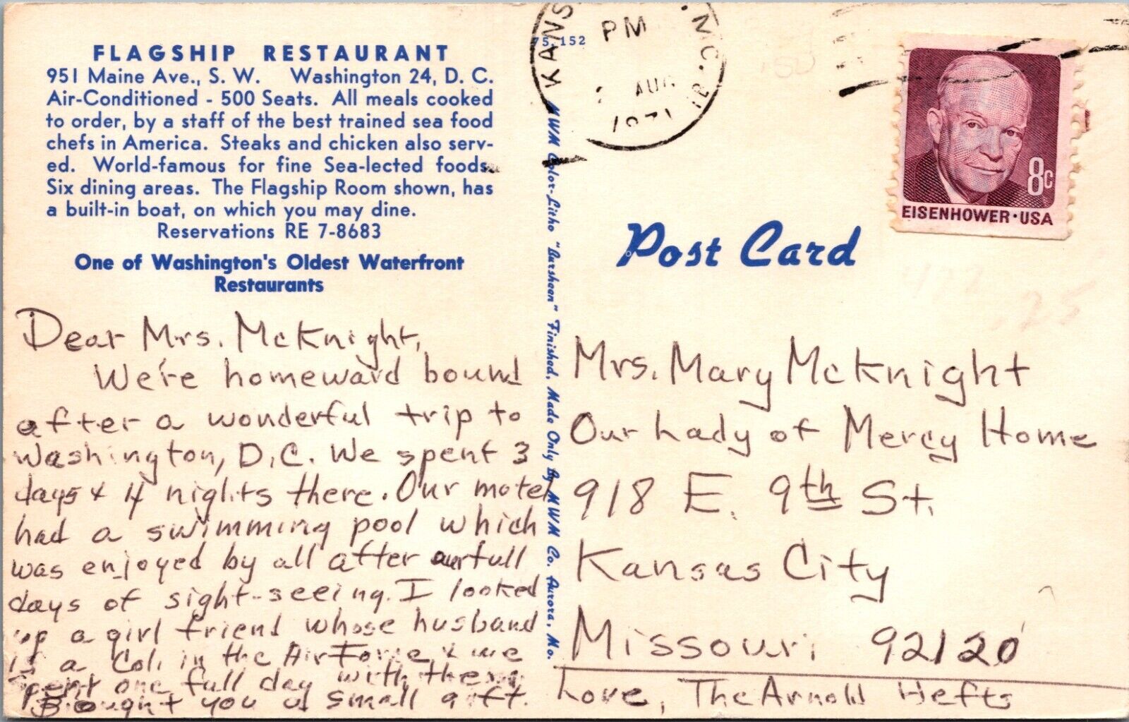 Vintage 1970s Postcard of Flagship Restaurant in Washington D.C.