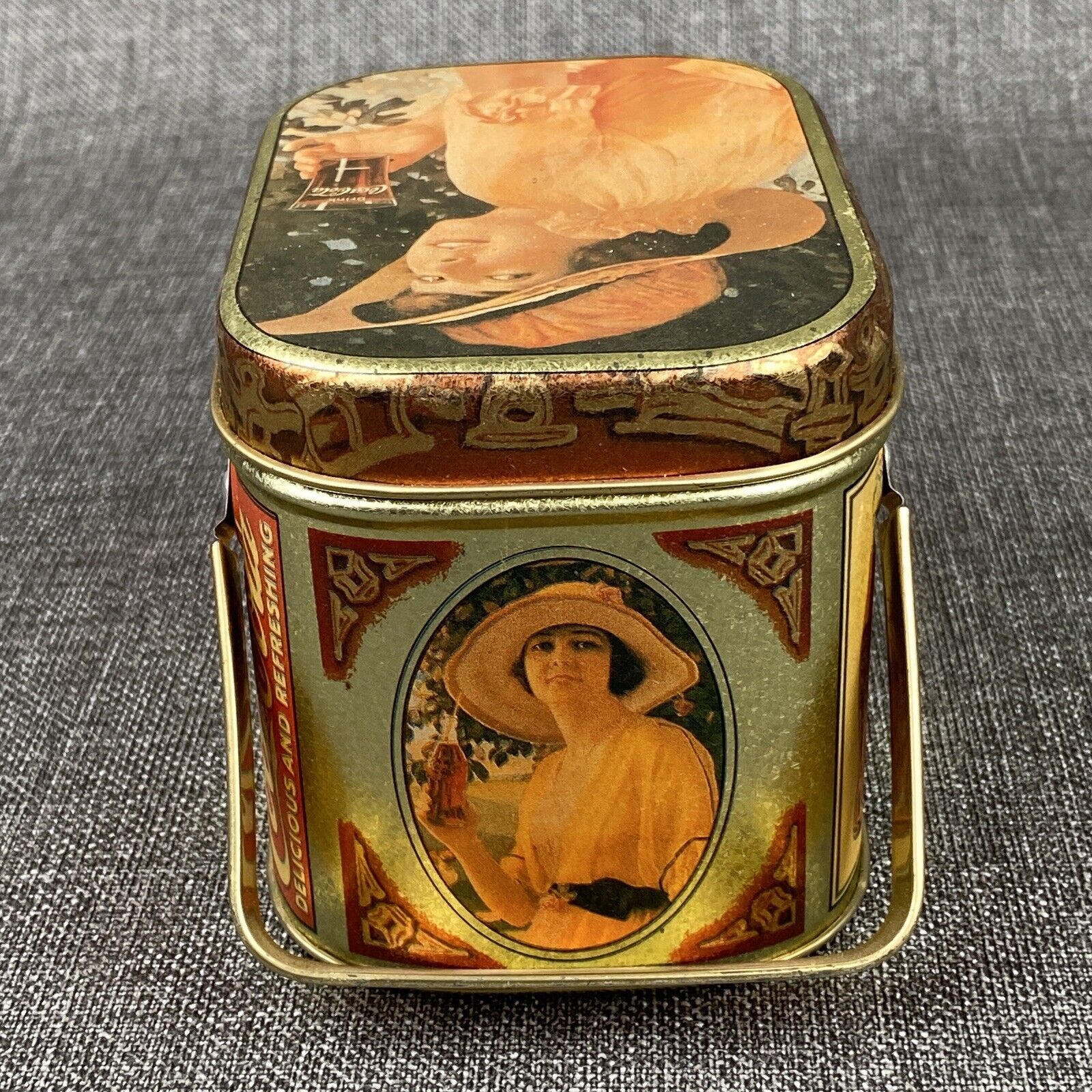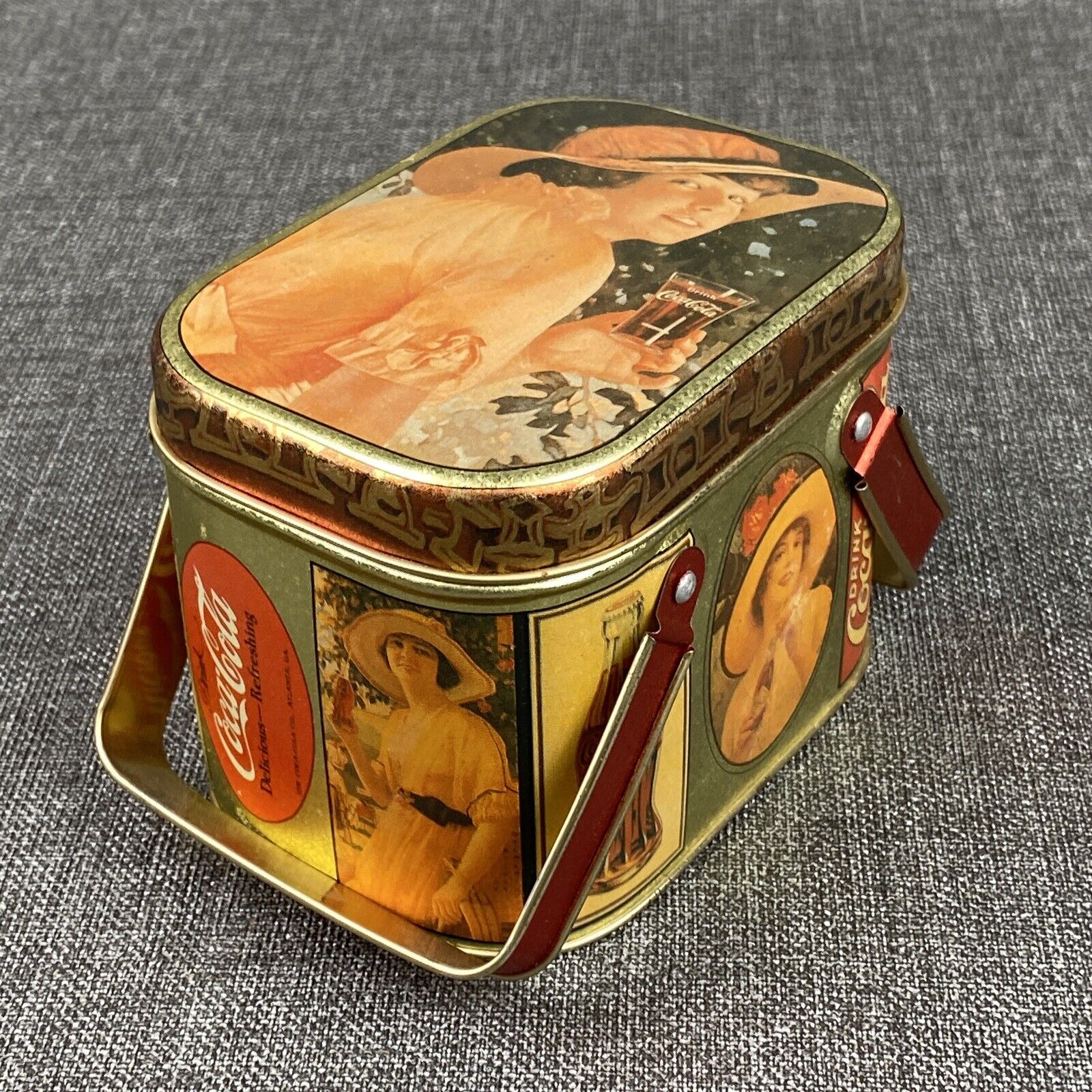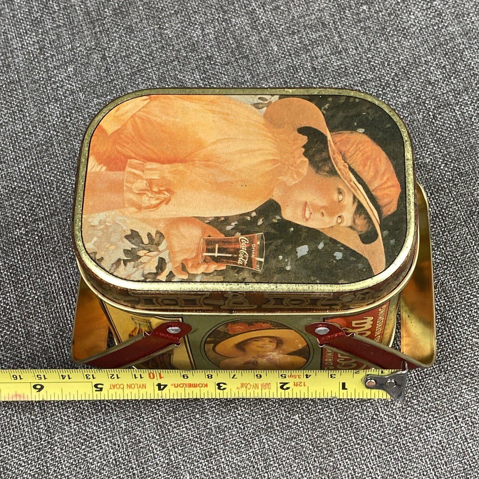 Vintage 1980's Drink Coca-Cola Metal Tin with Pictures of Ladies 2 Handles & Lid