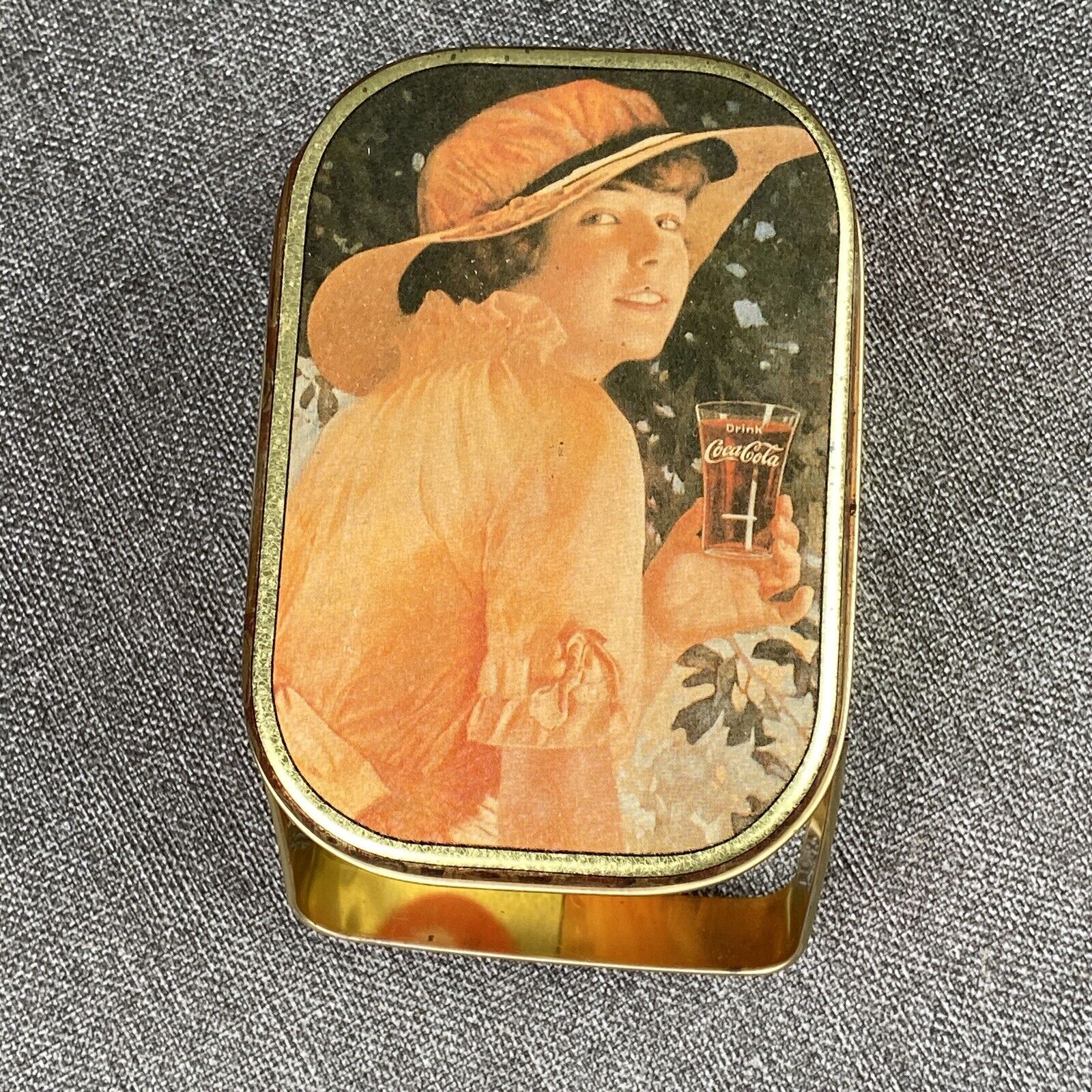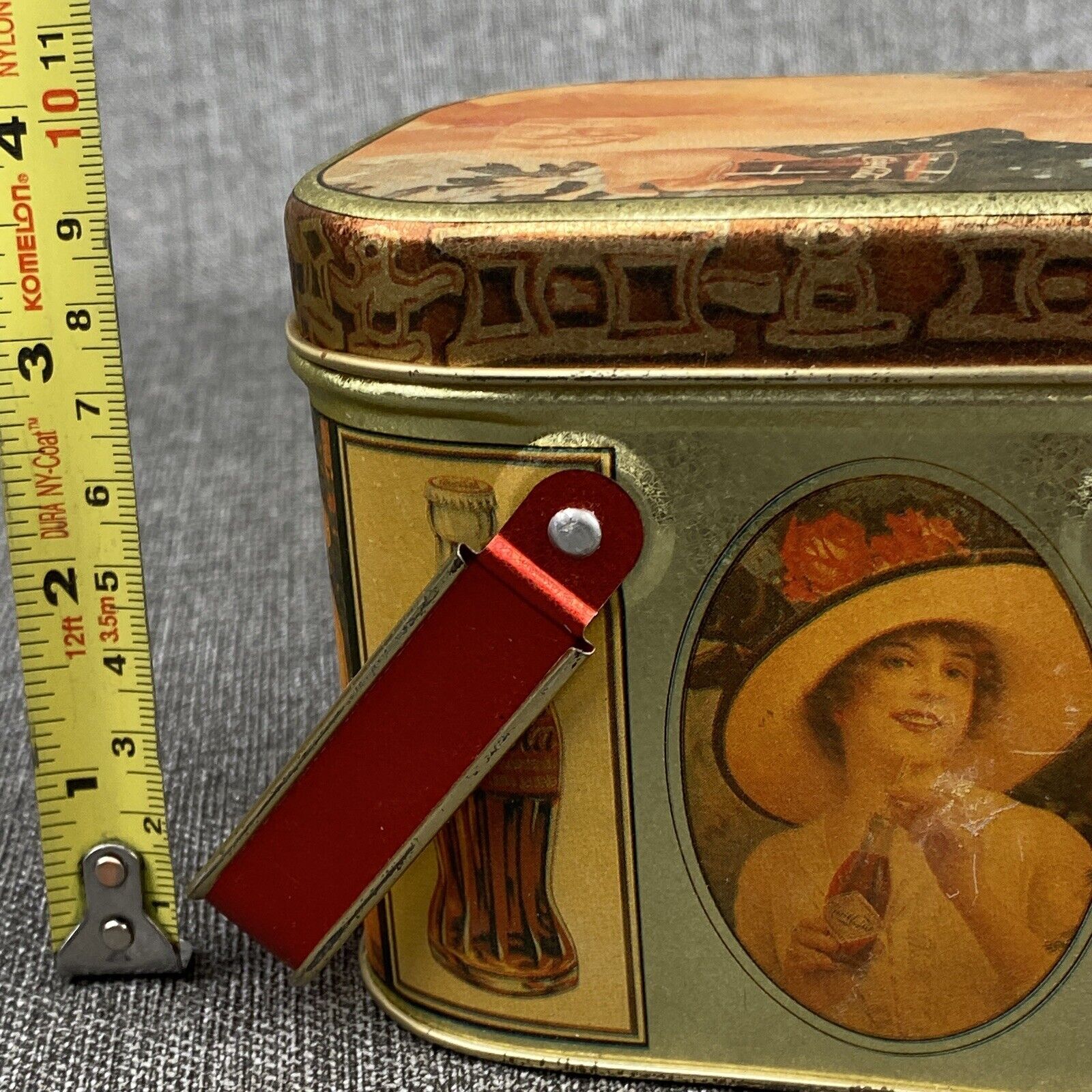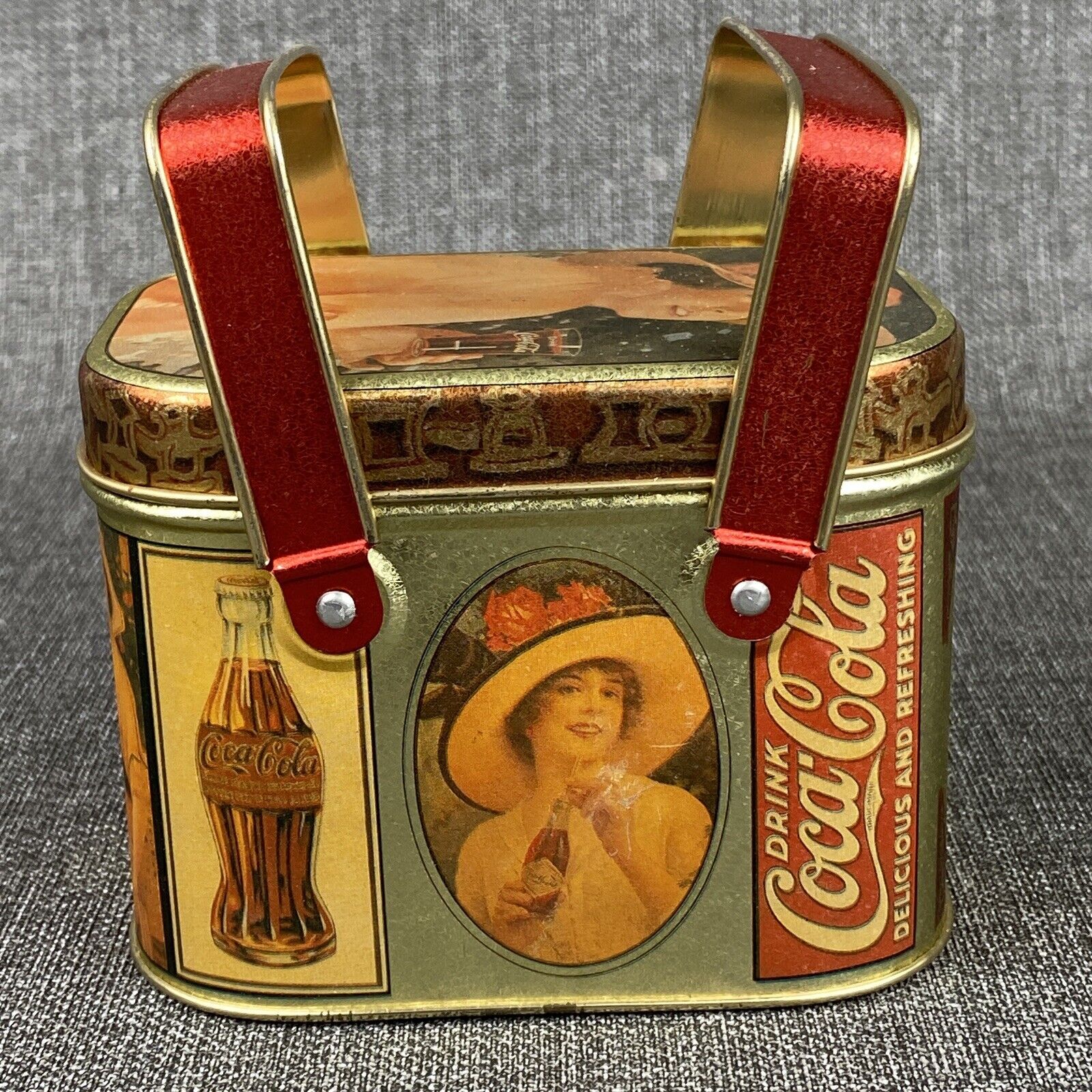 Vintage 1980's Drink Coca-Cola Metal Tin with Pictures of Ladies 2 Handles & Lid
