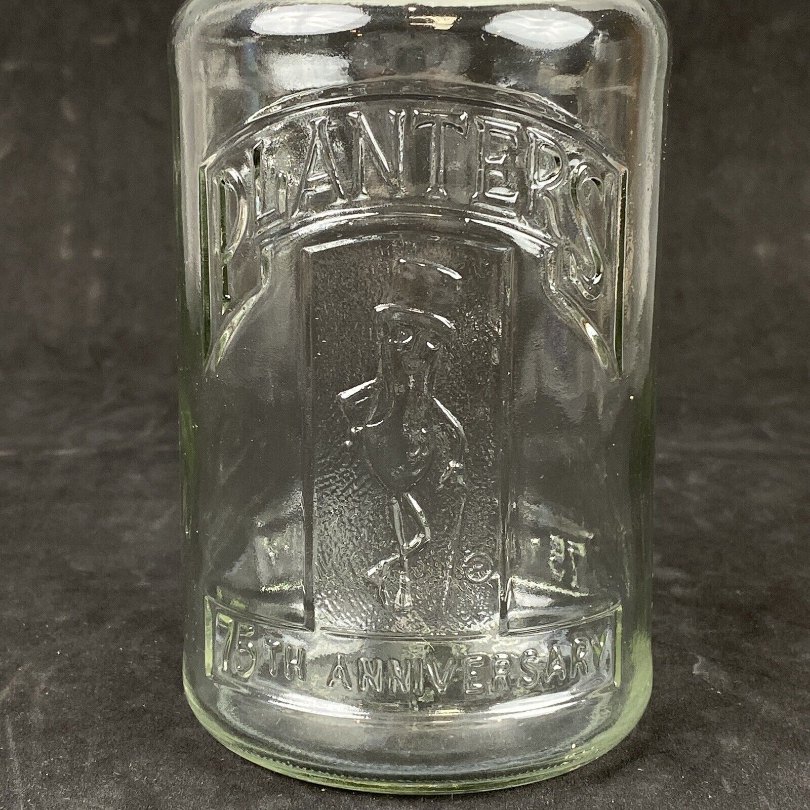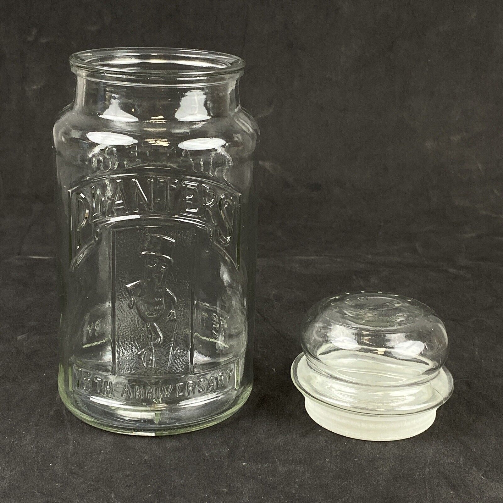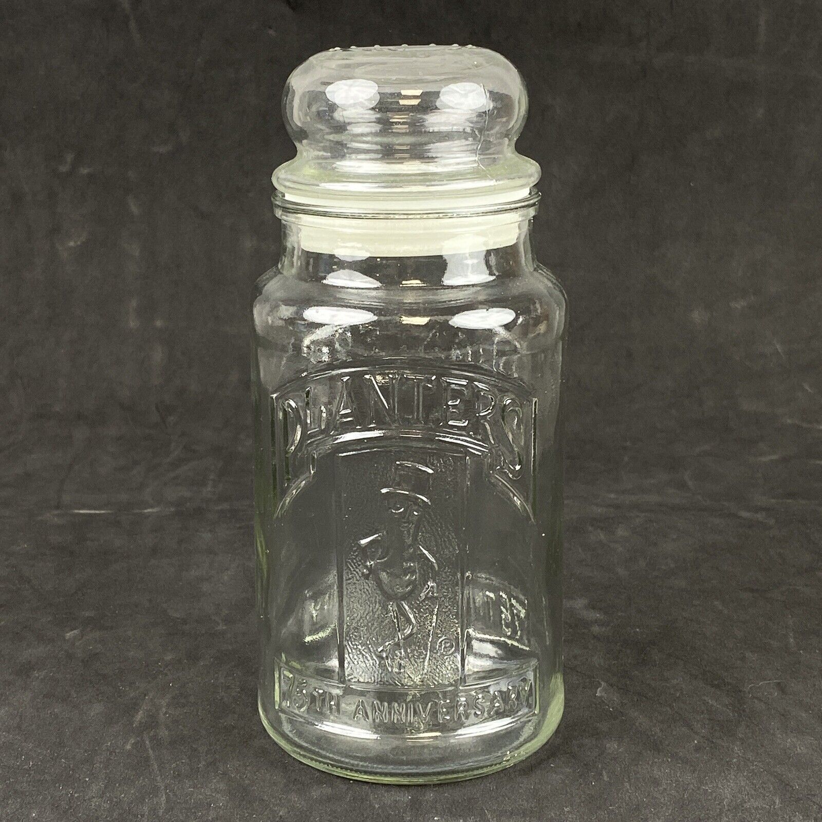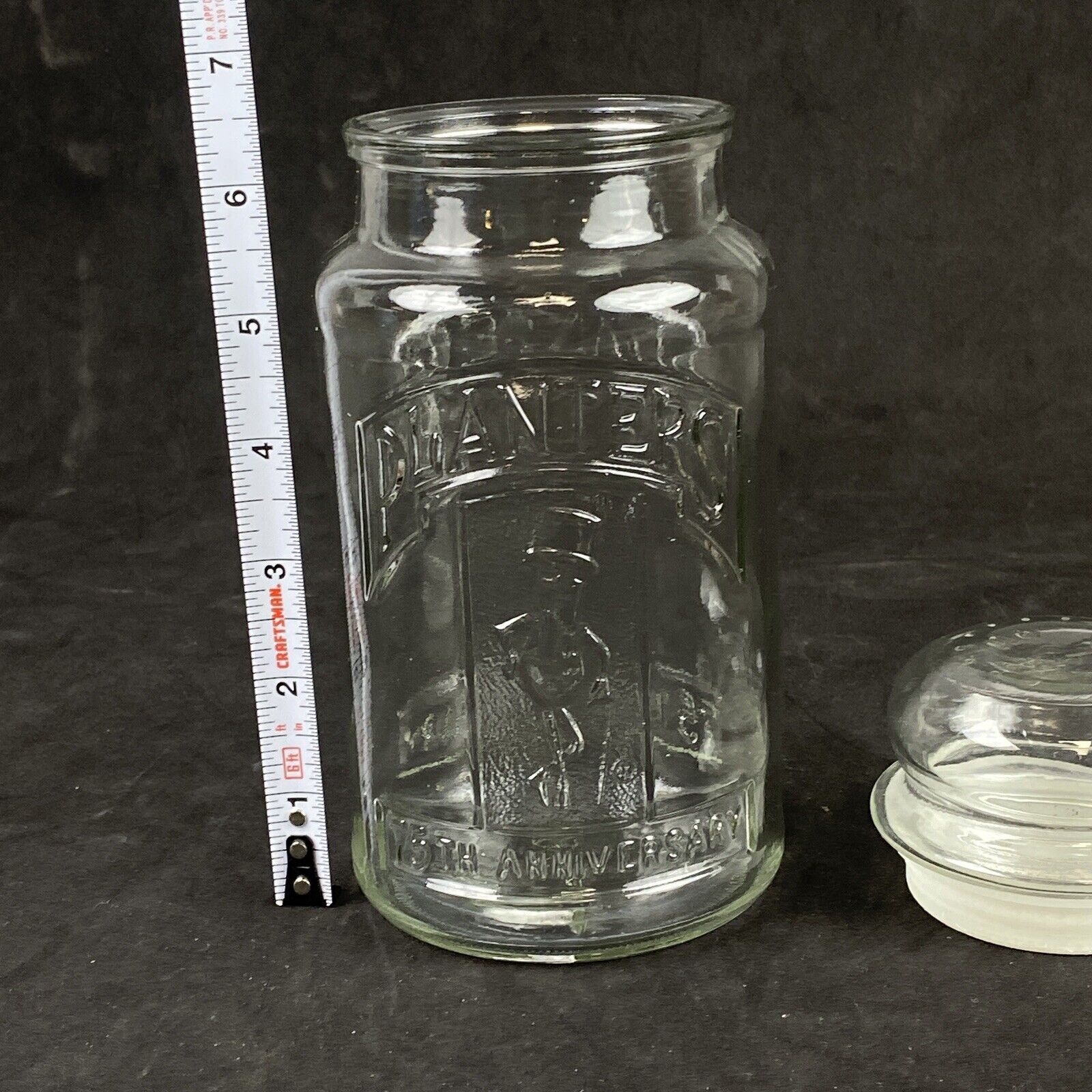 Vintage 1981 Planters Glass Jar Canister 75th Anniversary Mr. Peanut 8” with Lid