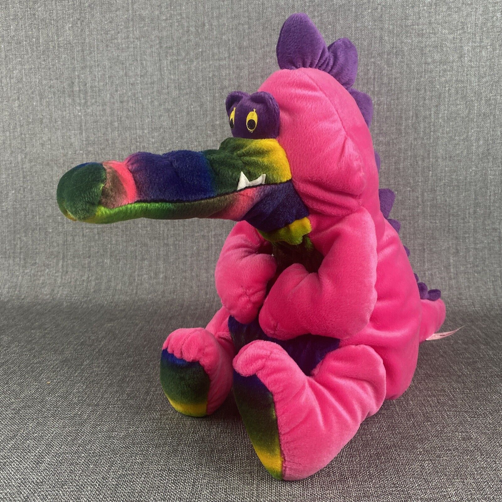 Vintage 2000 Stuffins Pink Rainbow Dinosaur Monster 13" Stuffed Animal Plush
