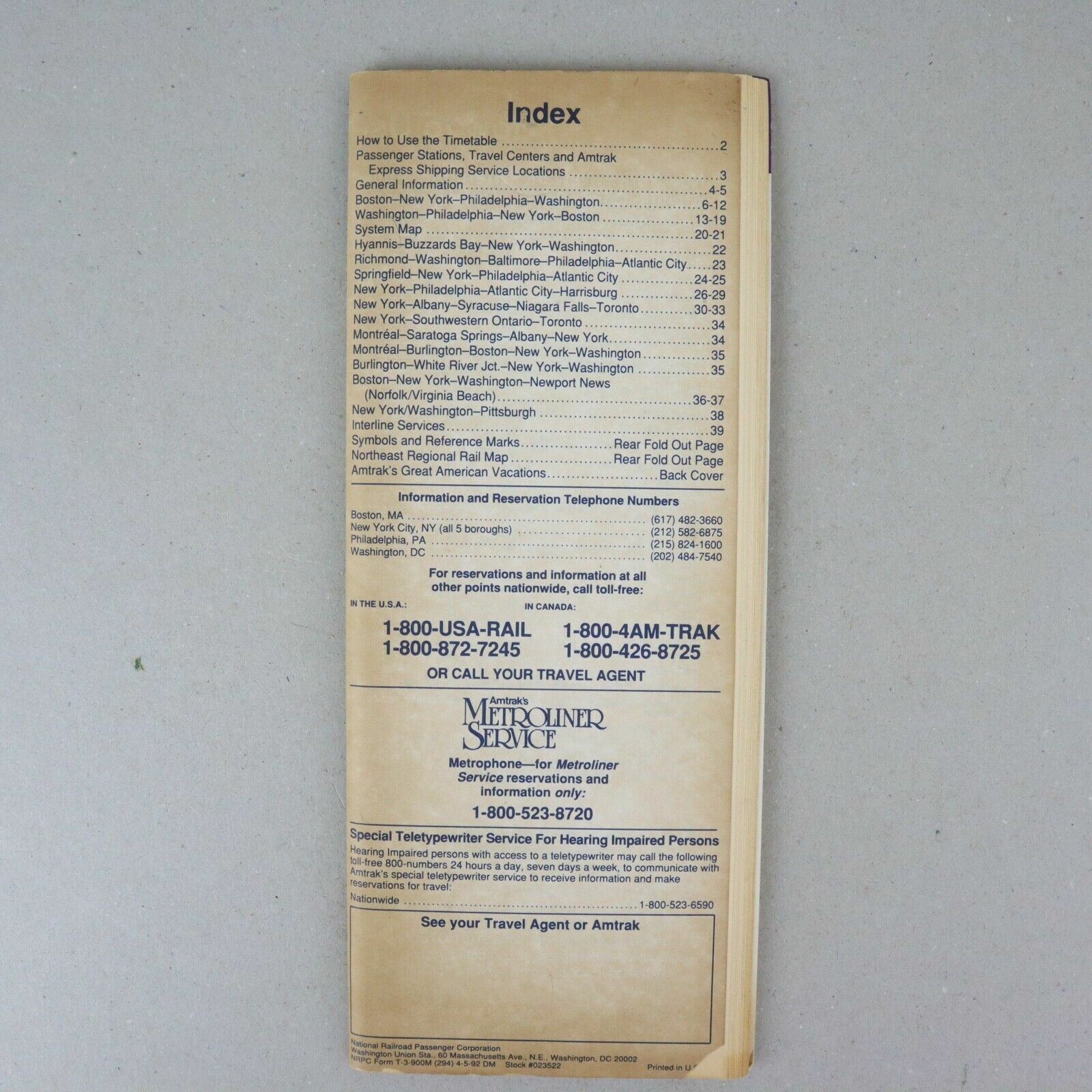 Vintage Amtrak 1992 Spring/Summer Northeast Schedules Timetable