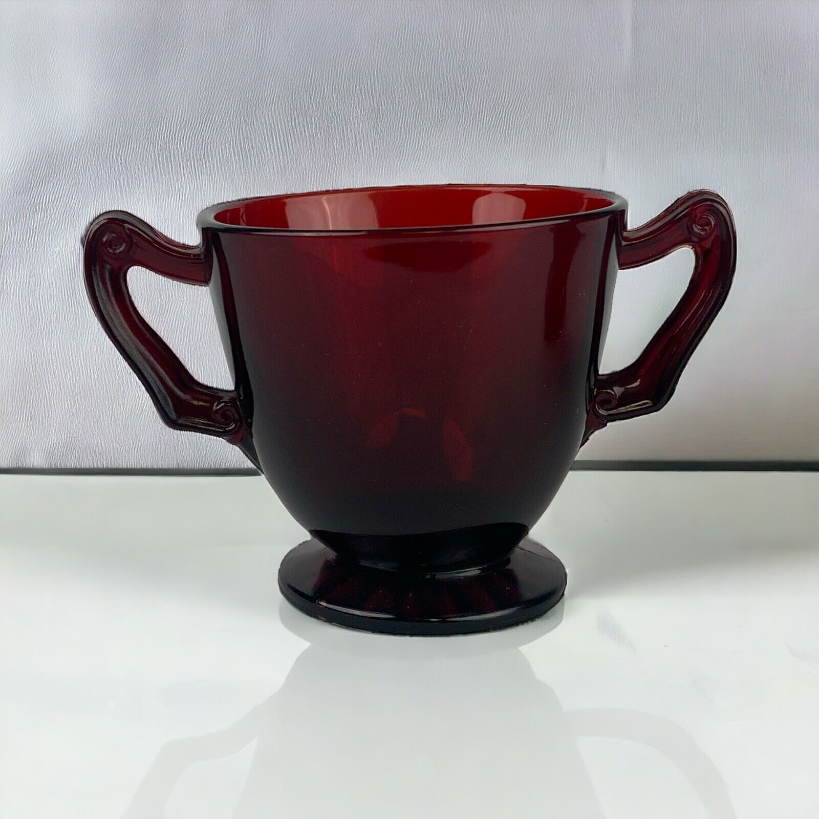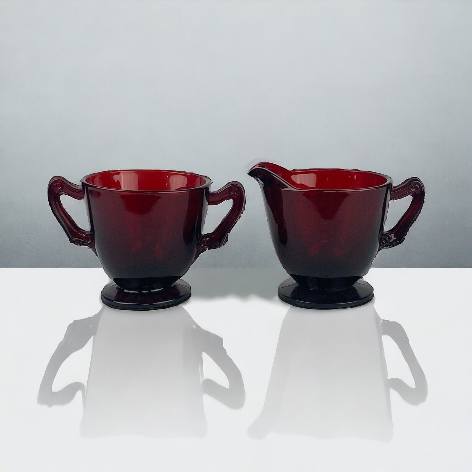 Vintage Anchor Hocking Royal Ruby Red Glass Footed Creamer and Open Sugar Bowl