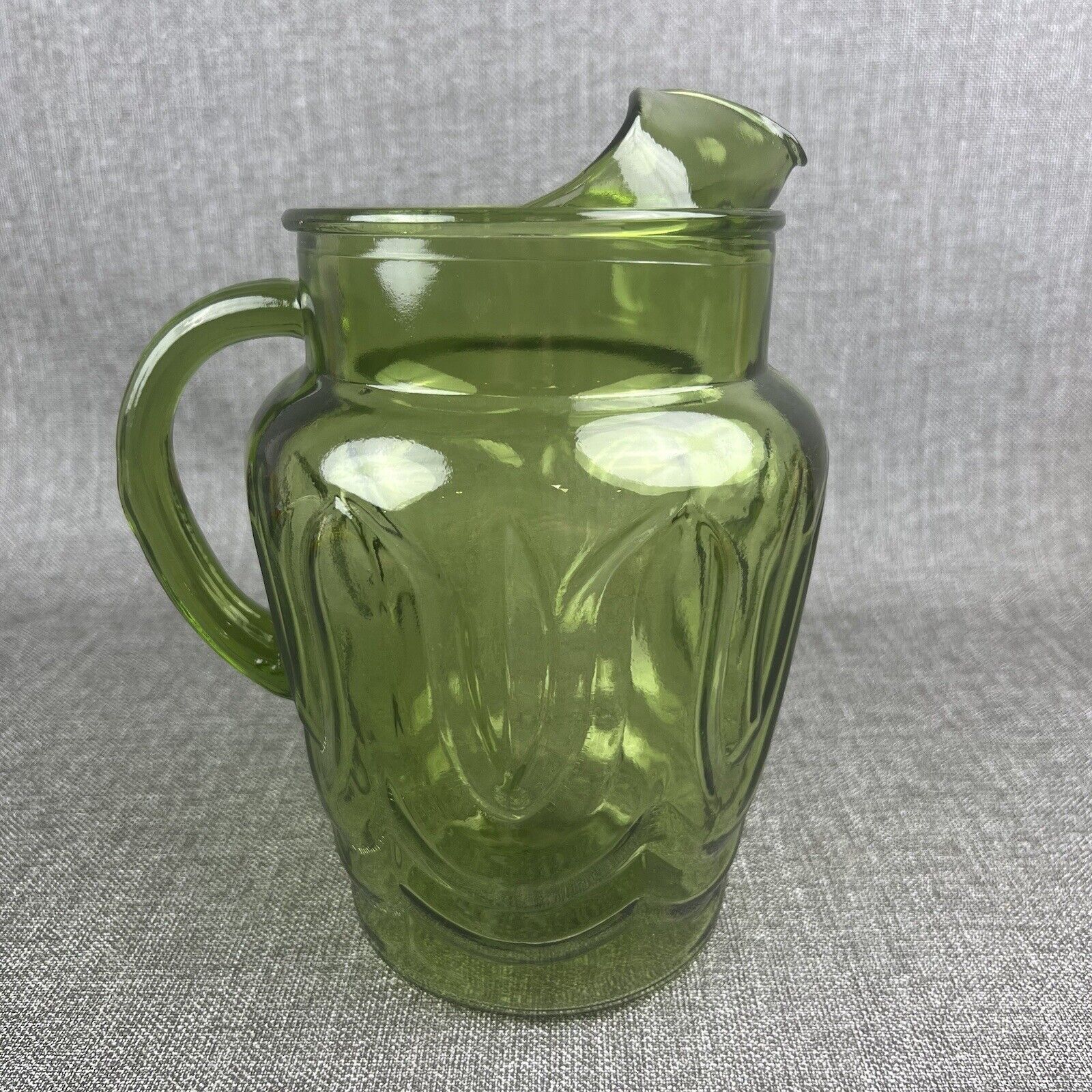 Vintage Anchor Hocking Tulip Green Glass Pitcher