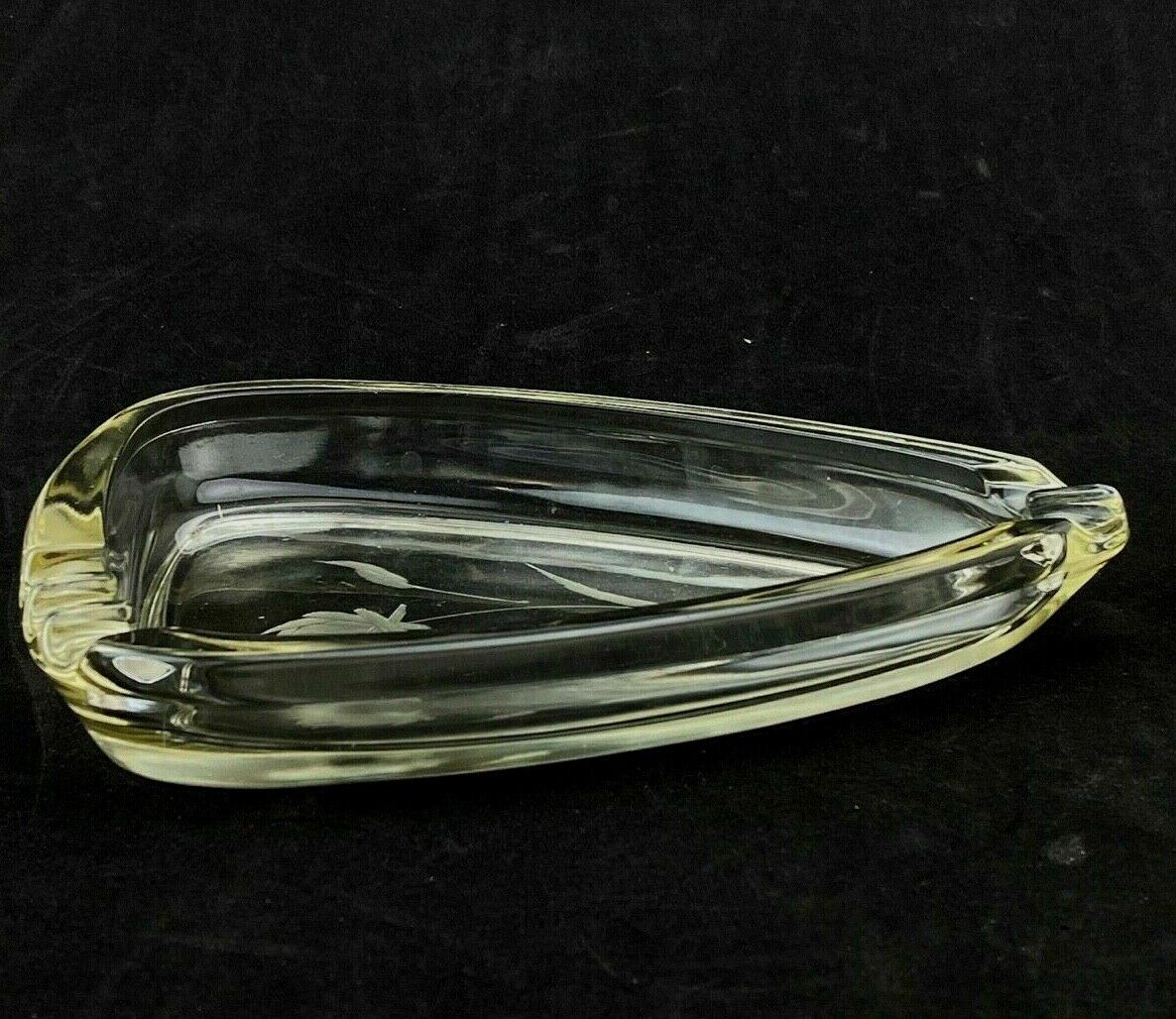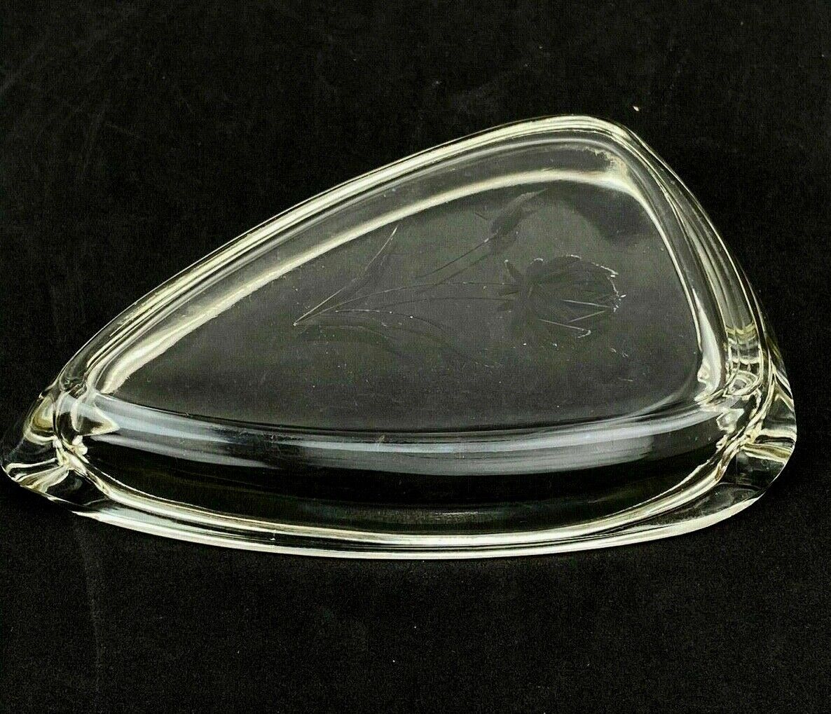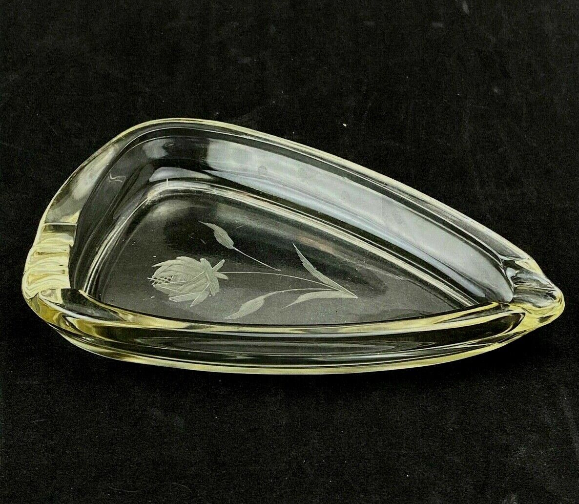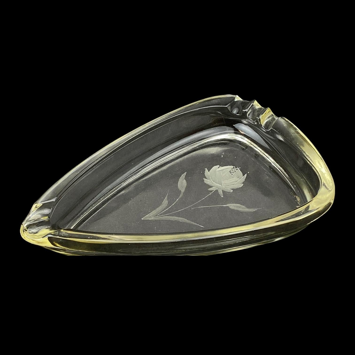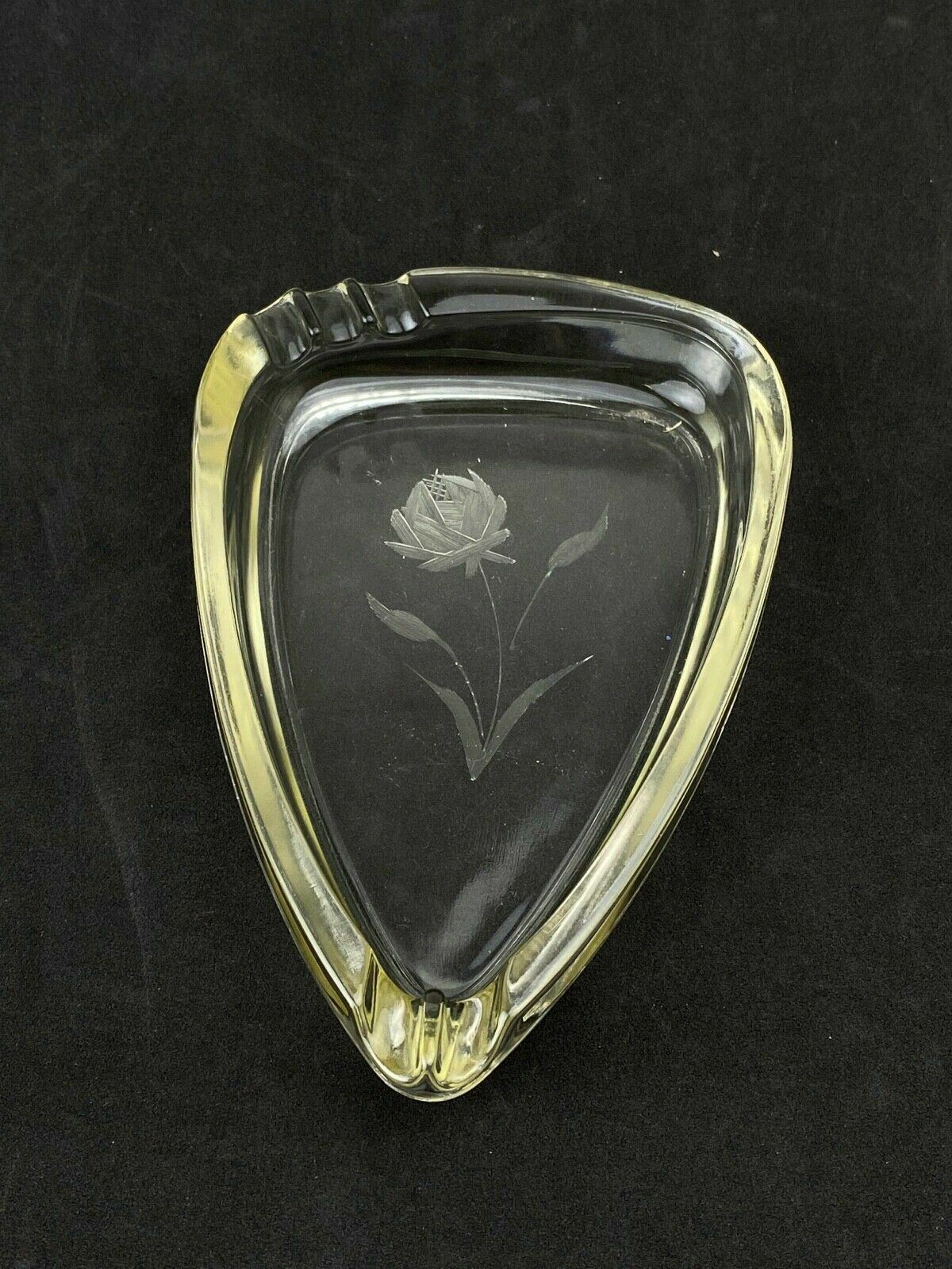 Vintage Art Deco Glass Ashtray with Flower Rose (7.5" at its longest point)