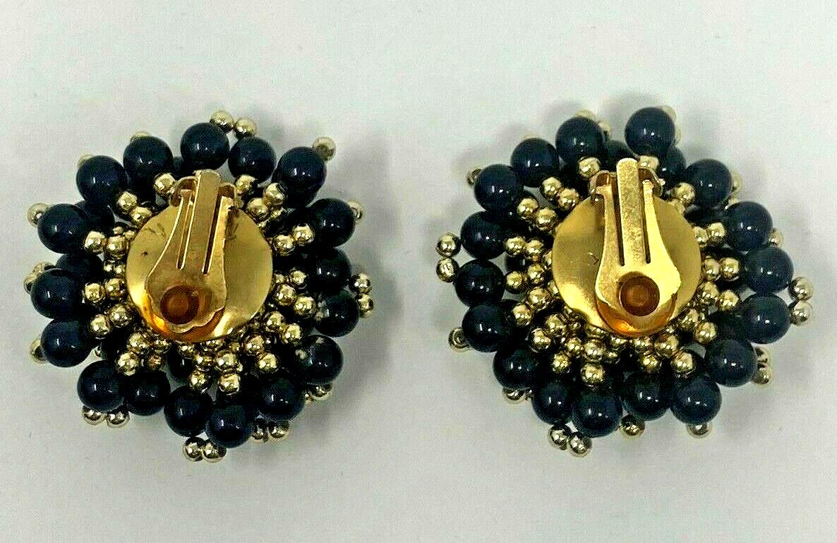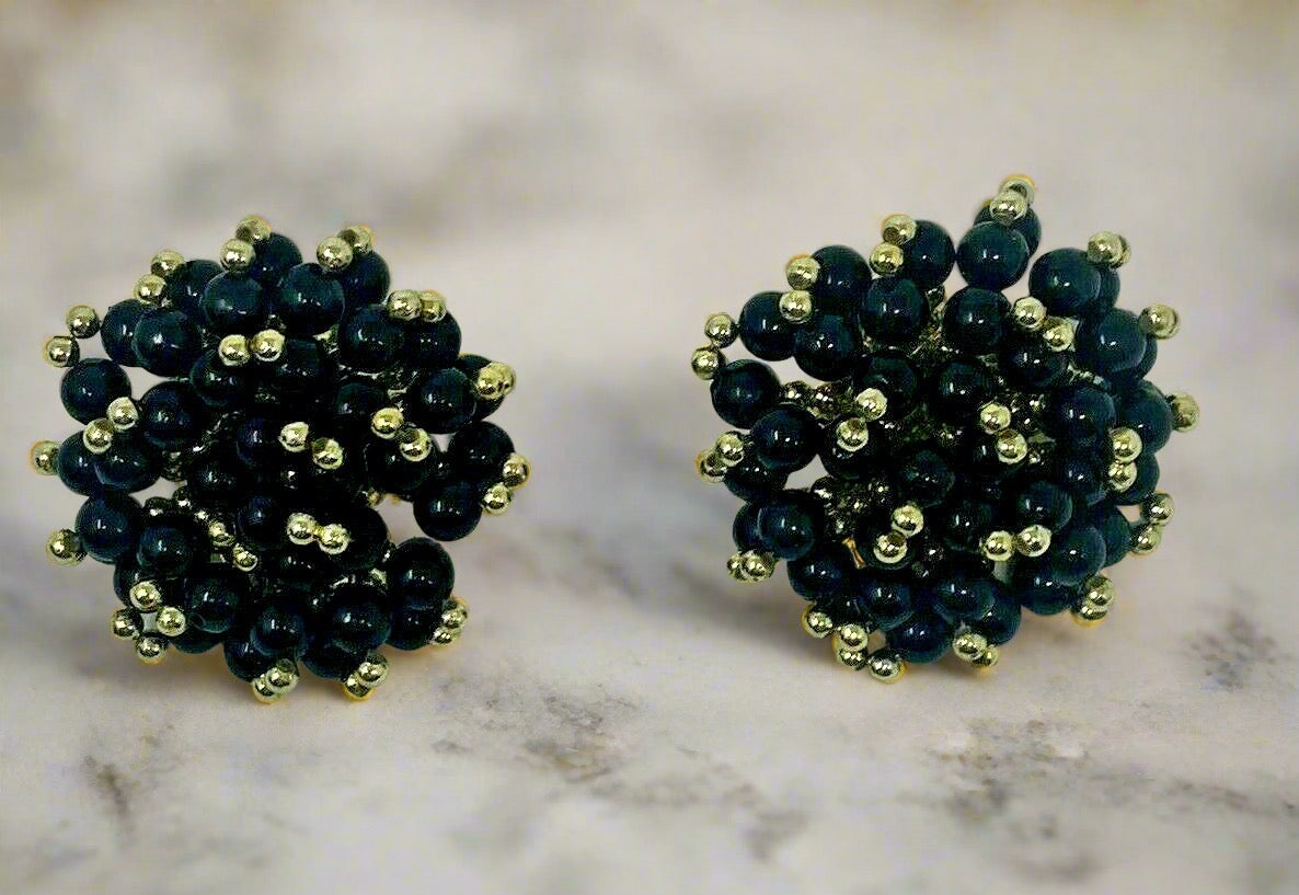 Vintage Black Clip On Cluster Beaded Earring