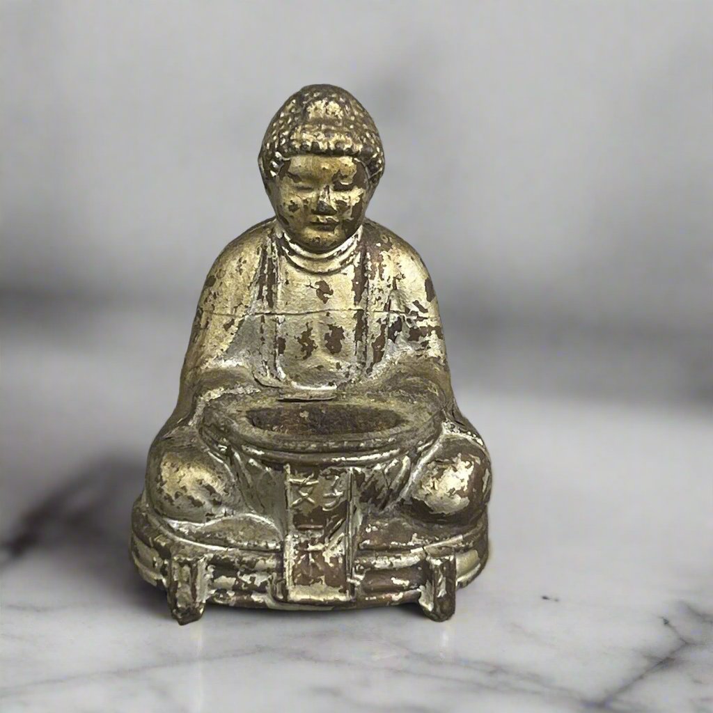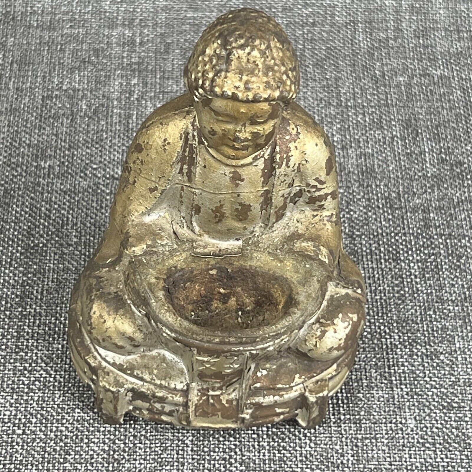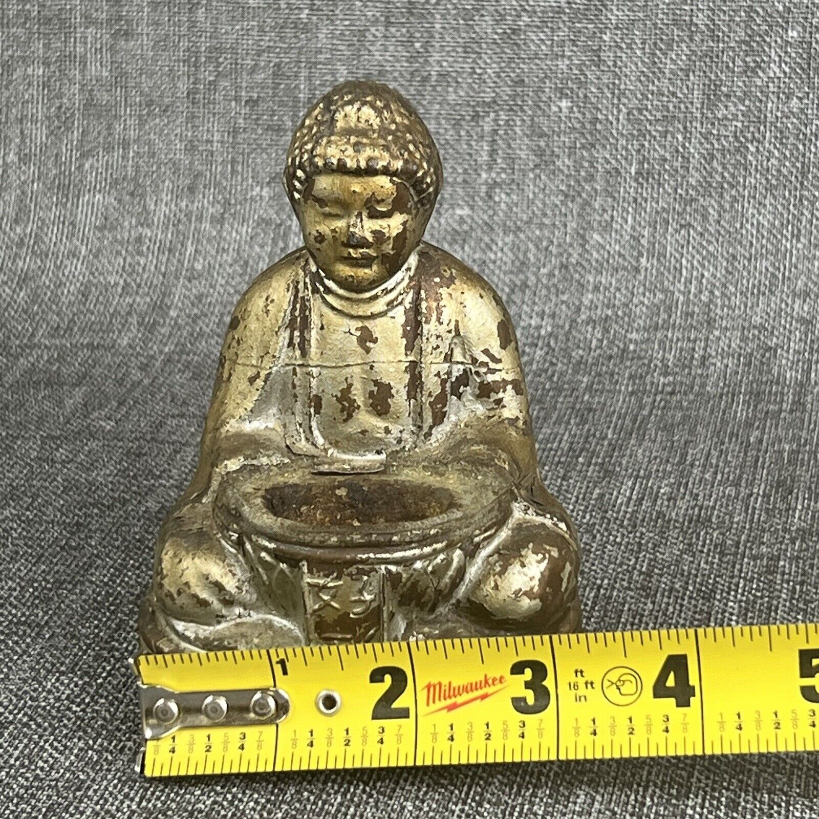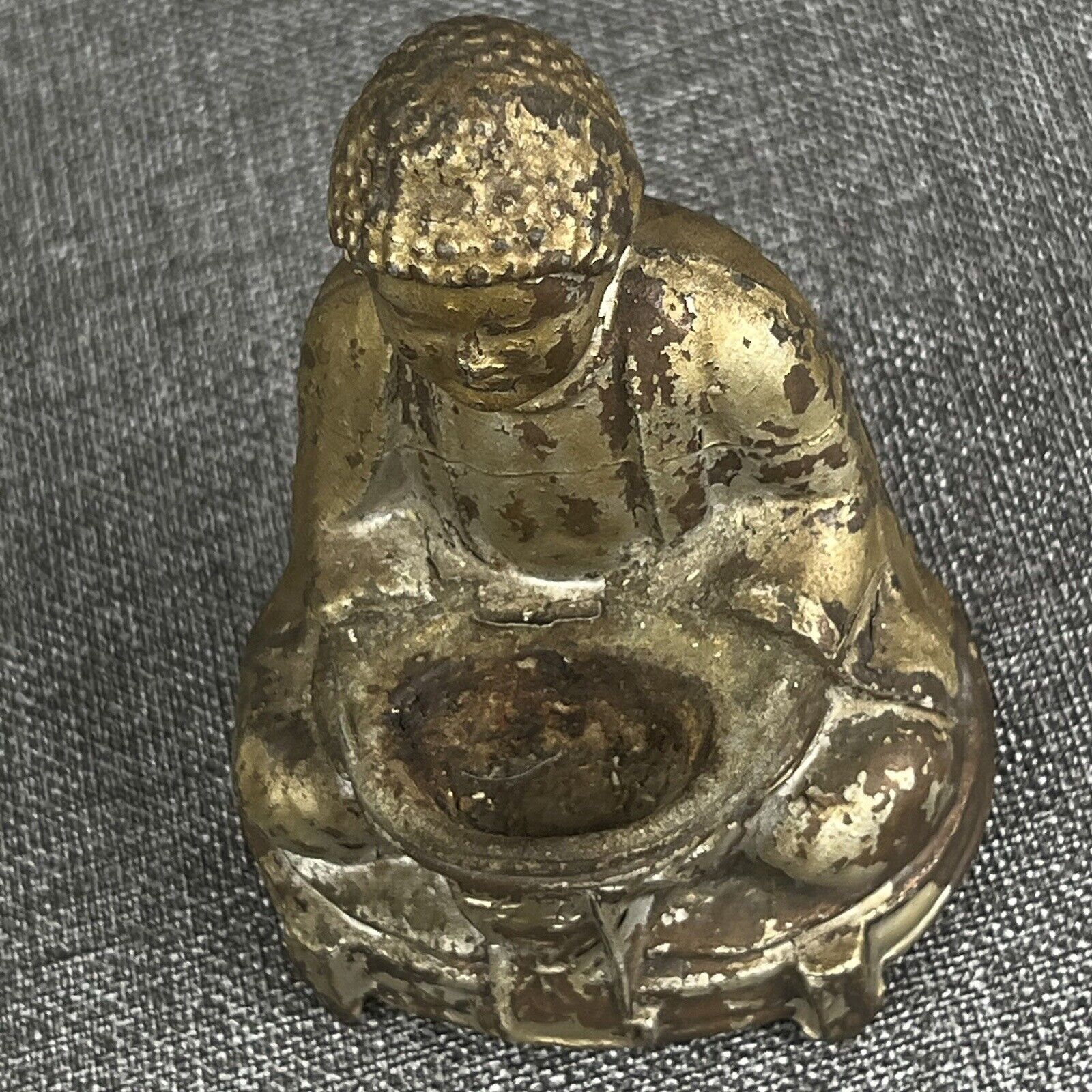 Vintage CAST IRON BUDDHA statue figure INCENSE BURNER 4.5" tall