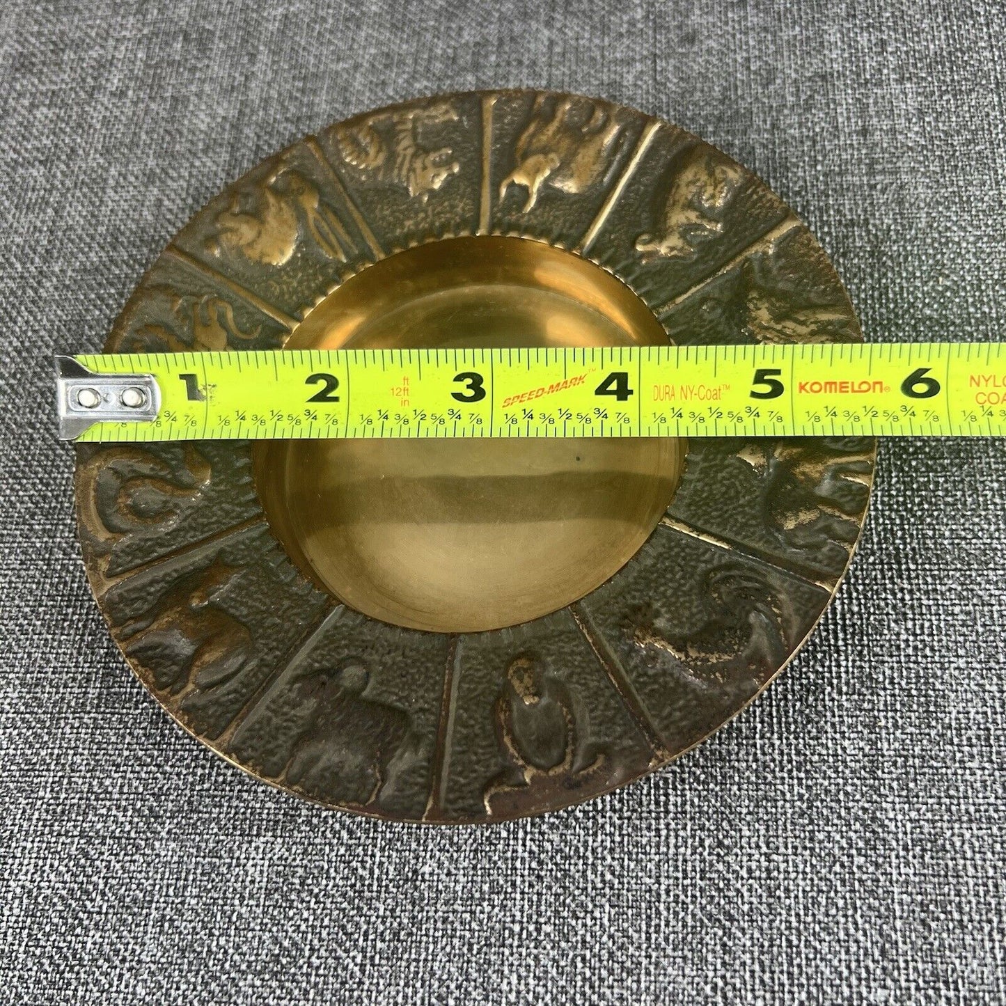 Vintage Chinese Zodiac Astrological Brass Ashtray Bowl Made In Korea 5 1/2 Inch