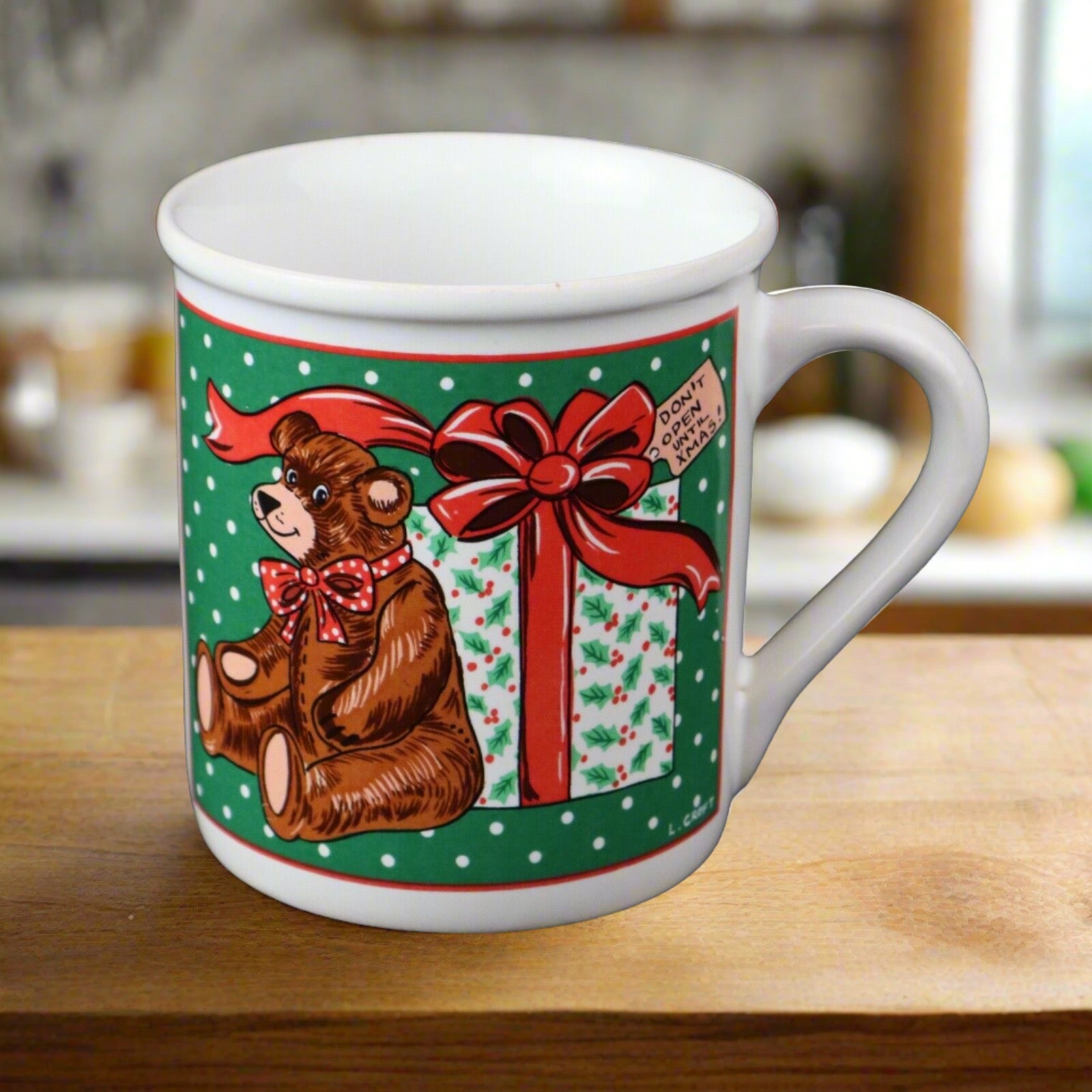 Vintage Christmas Bear Present Ceramic Coffee Mug Cup(Do not open until xmas)