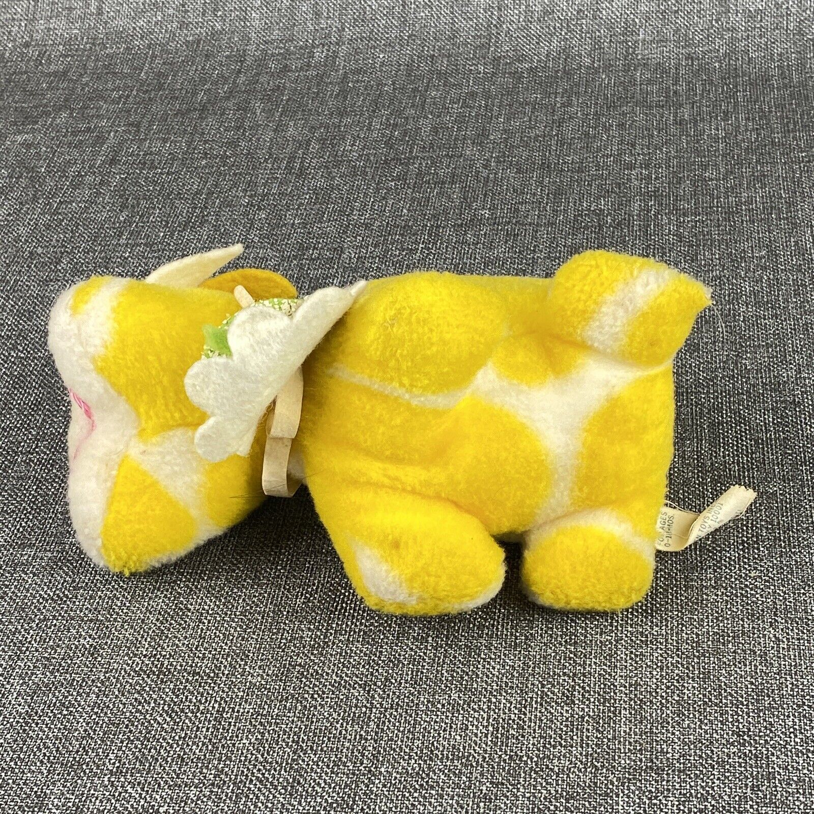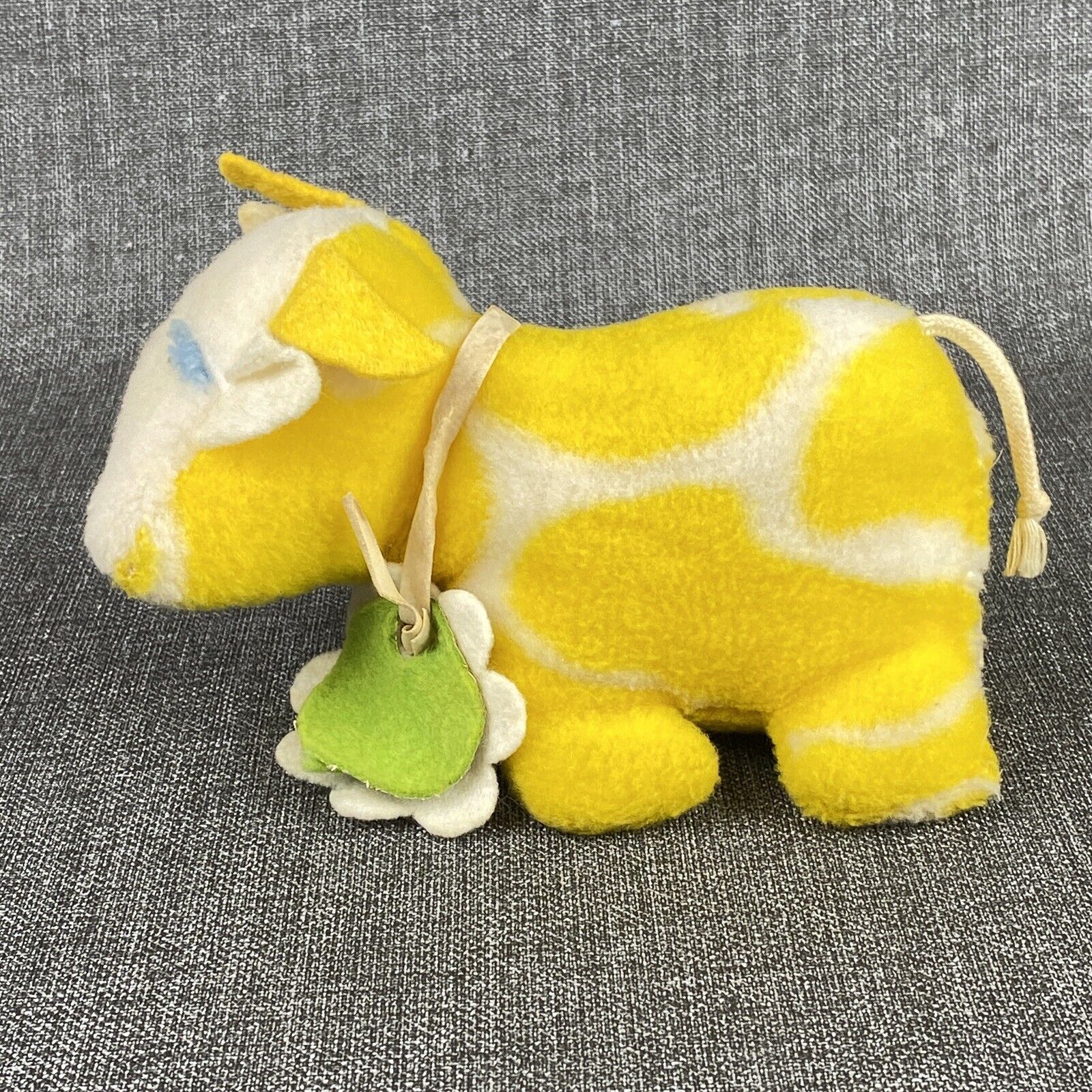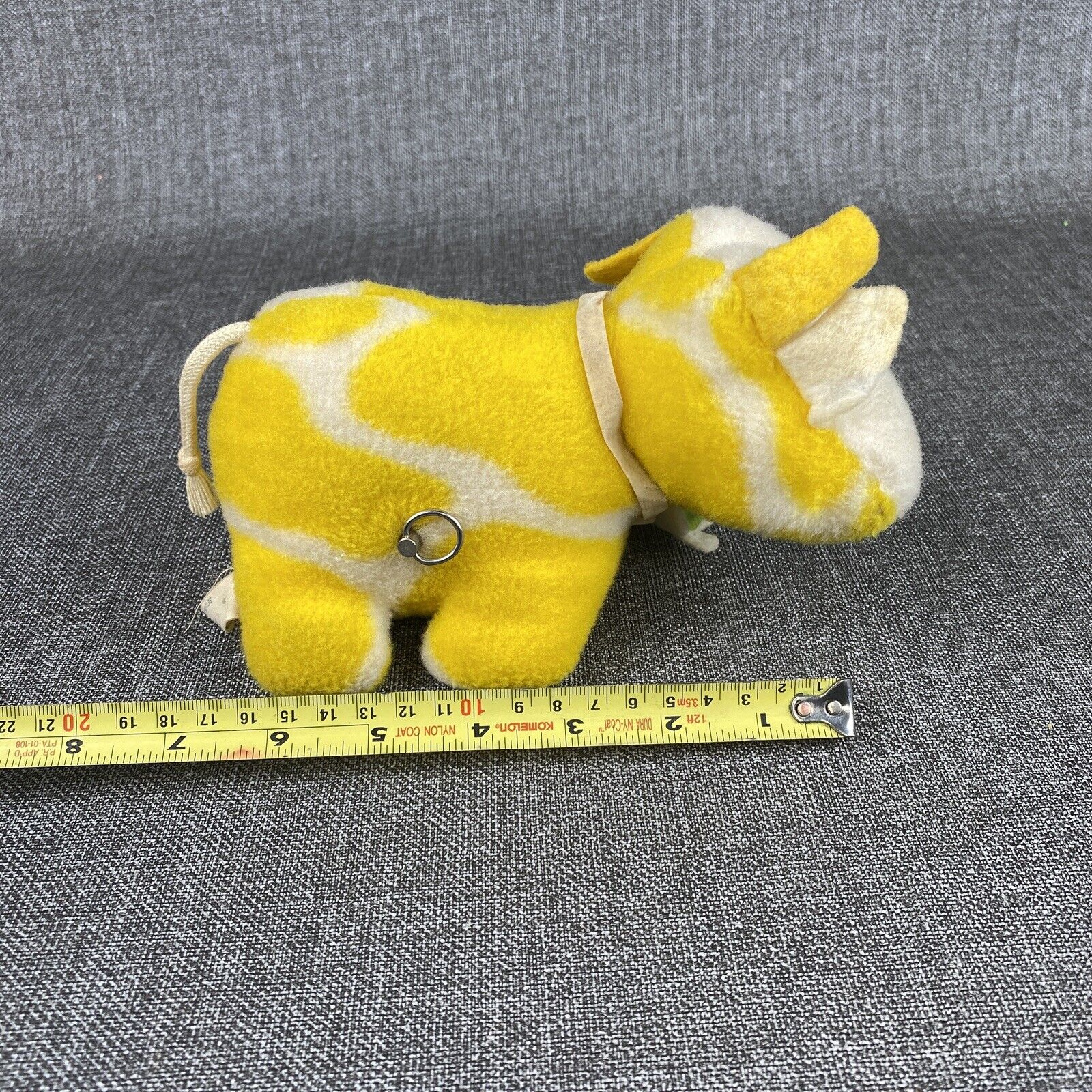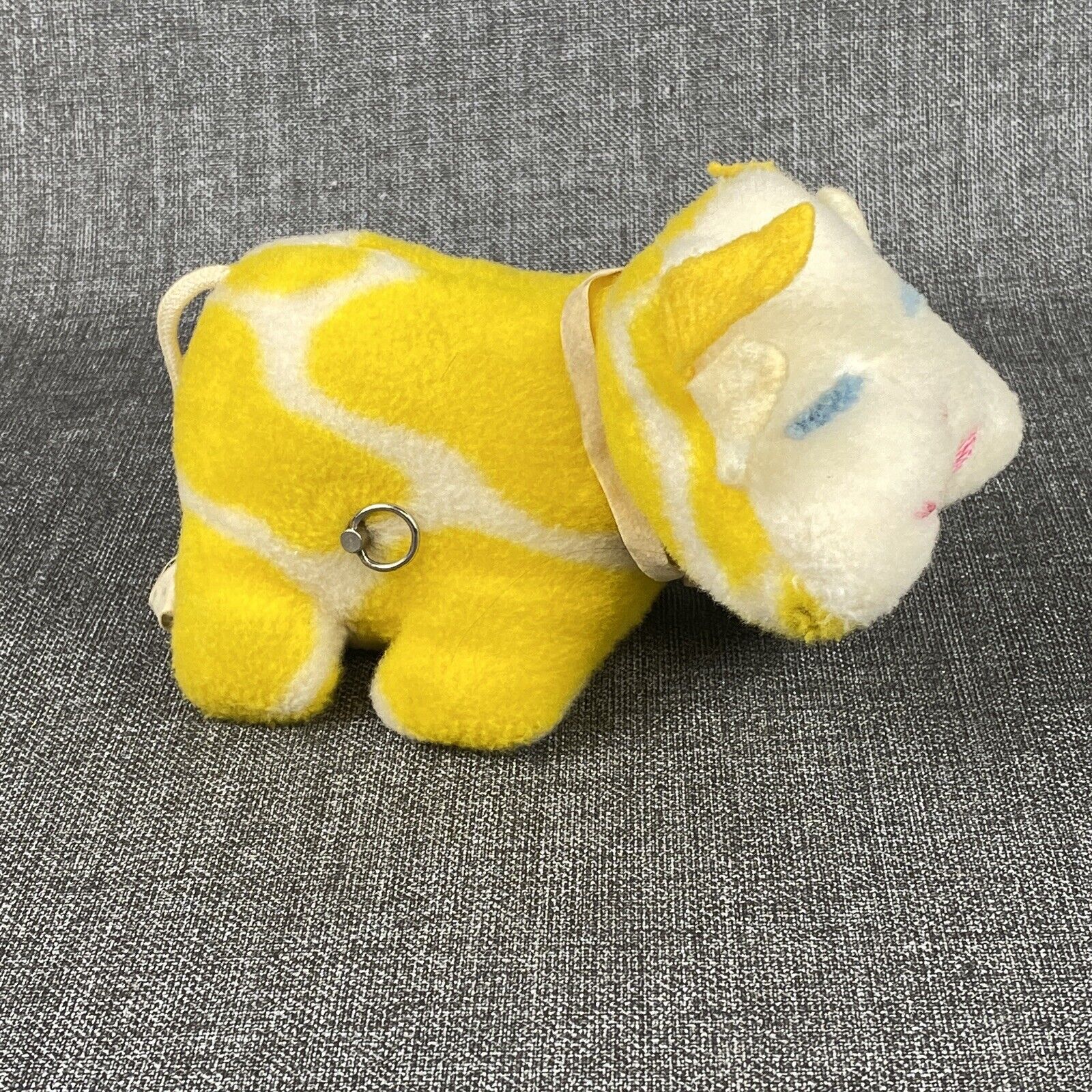 Vintage Eden Wind-Up Musical Yellow Cow Plush Toy Head Moves - Works! VIDEO