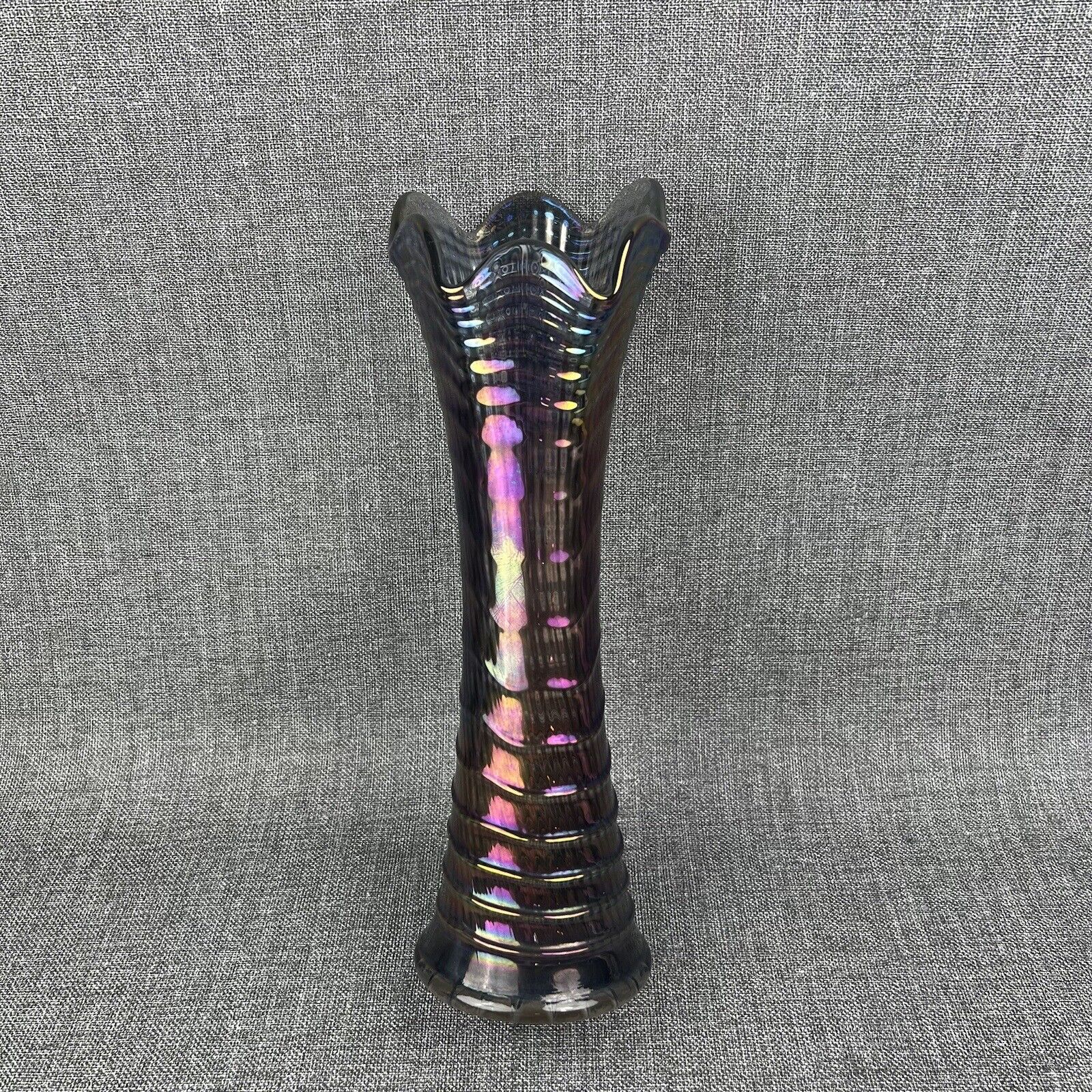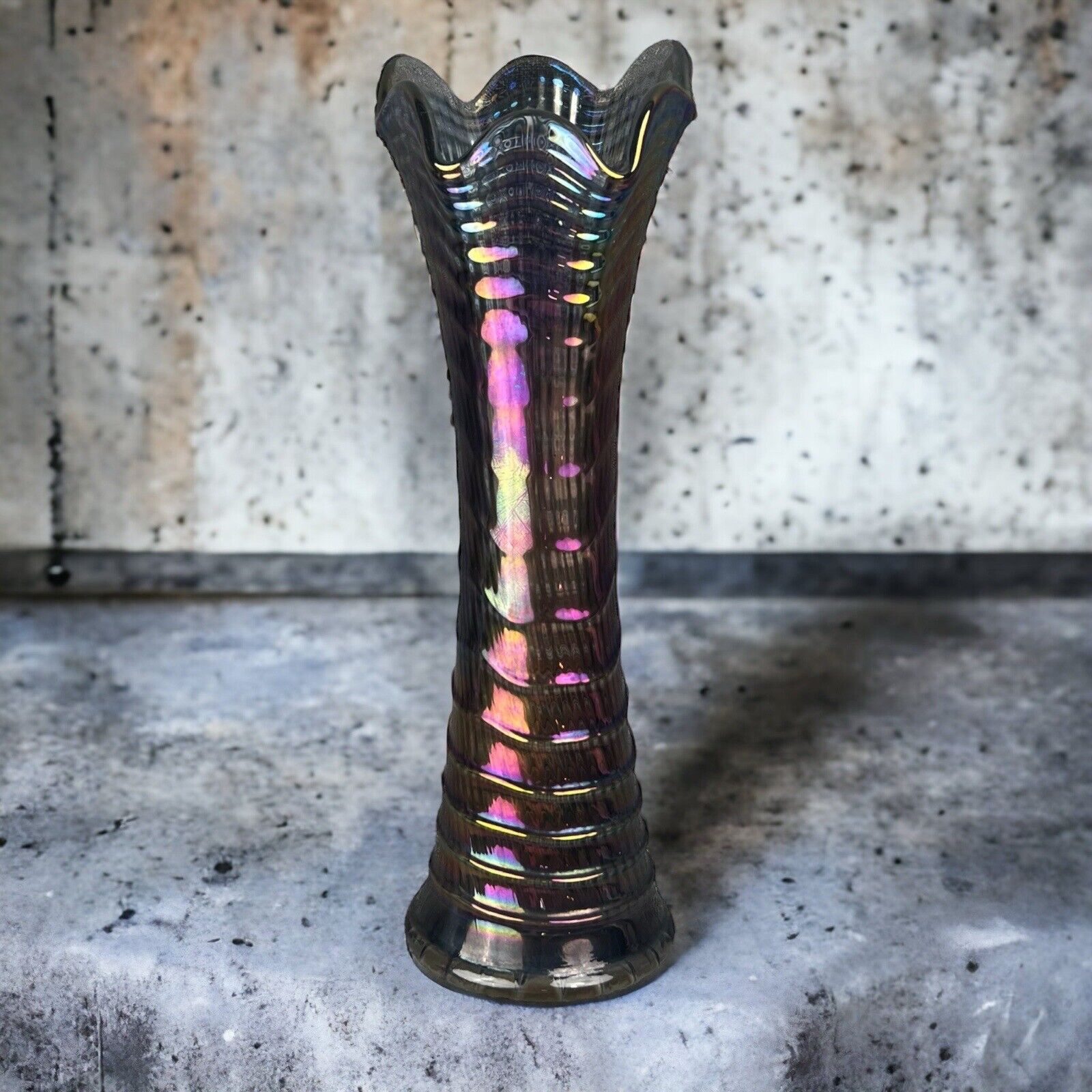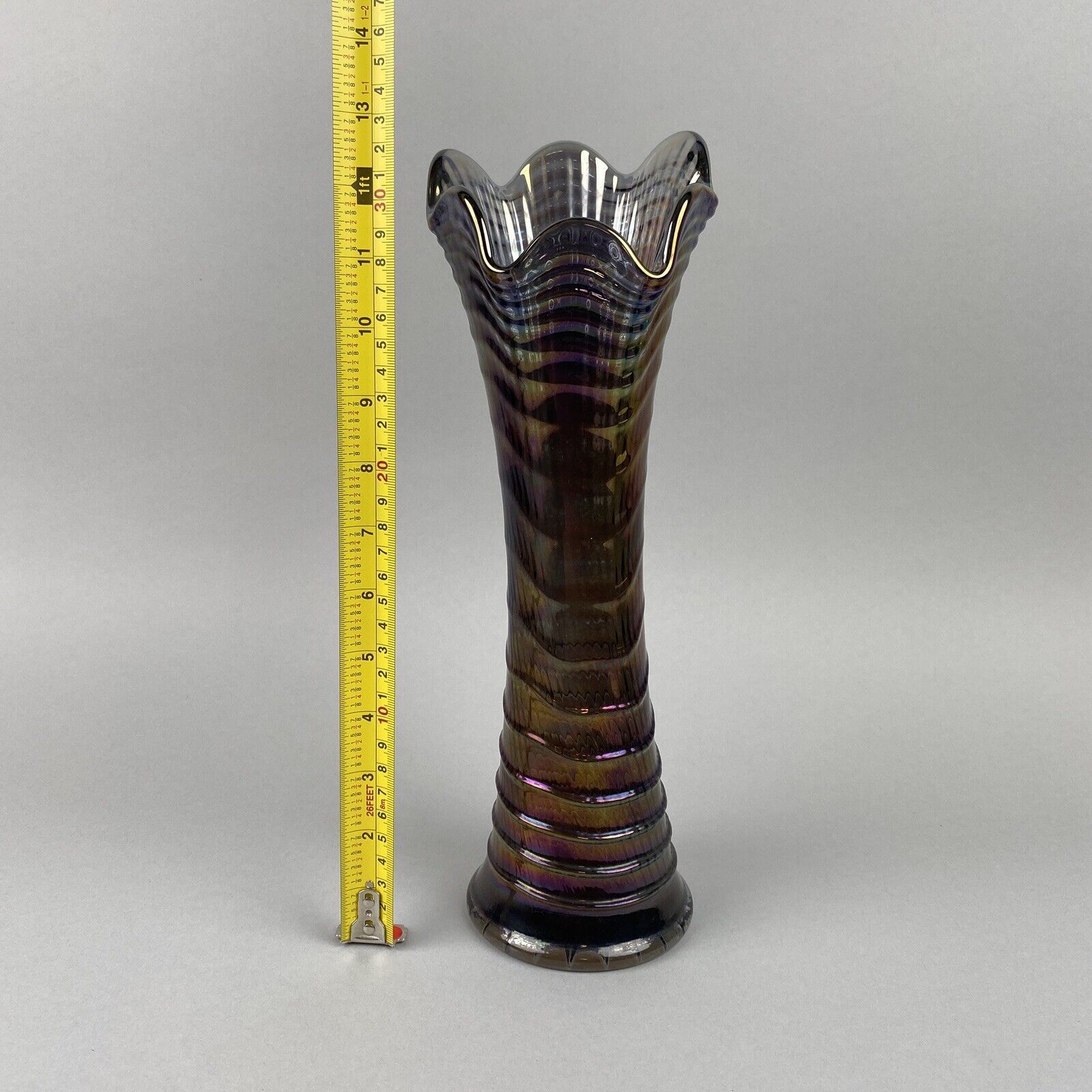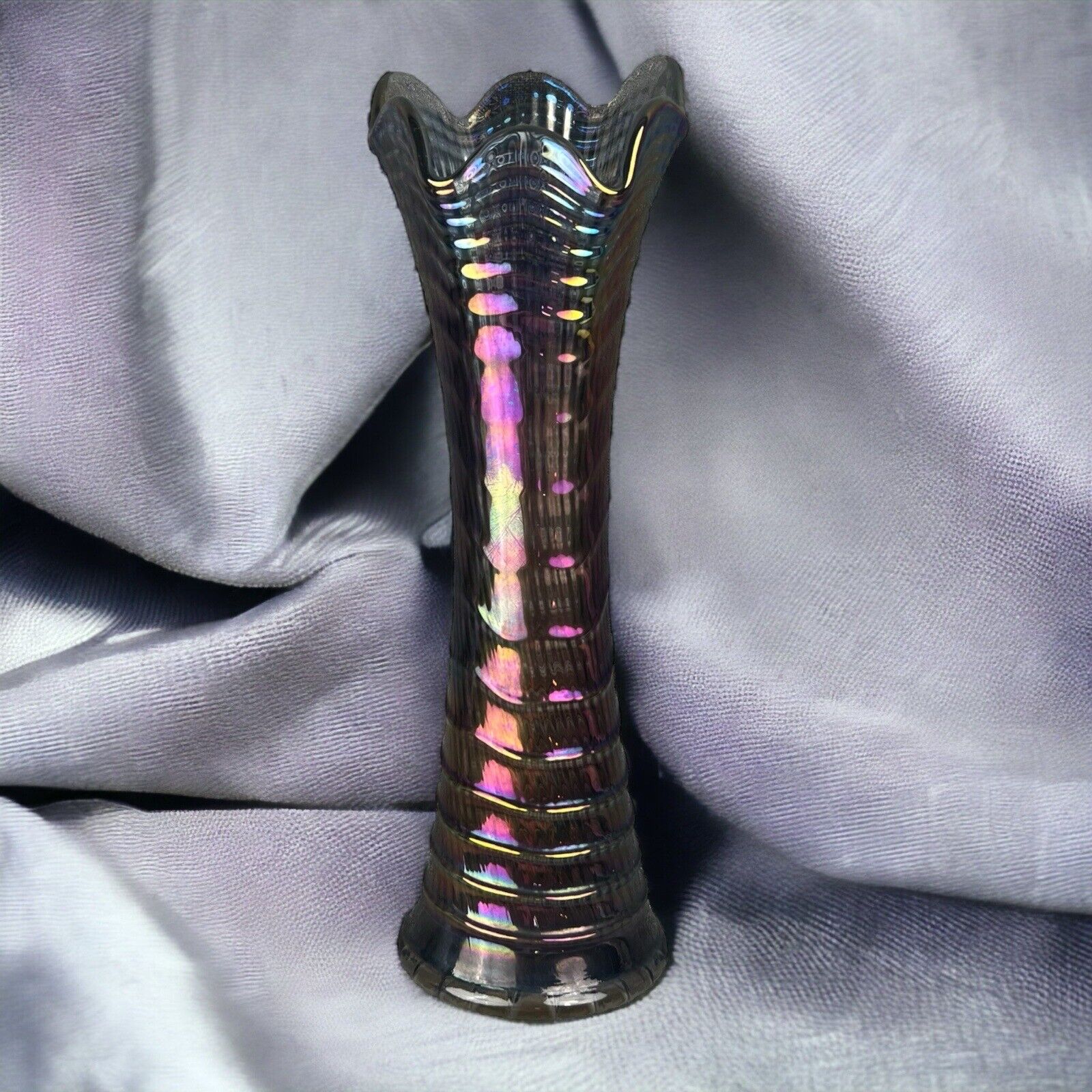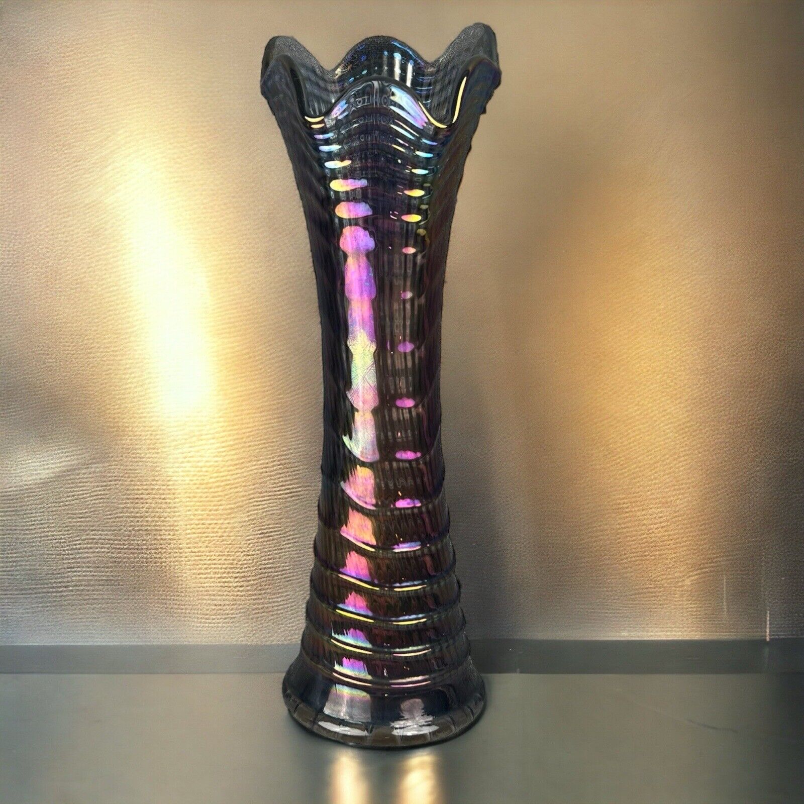 Vintage Electric Purple 12'' Amethyst Carnival Glass Vase Imperial Ripple