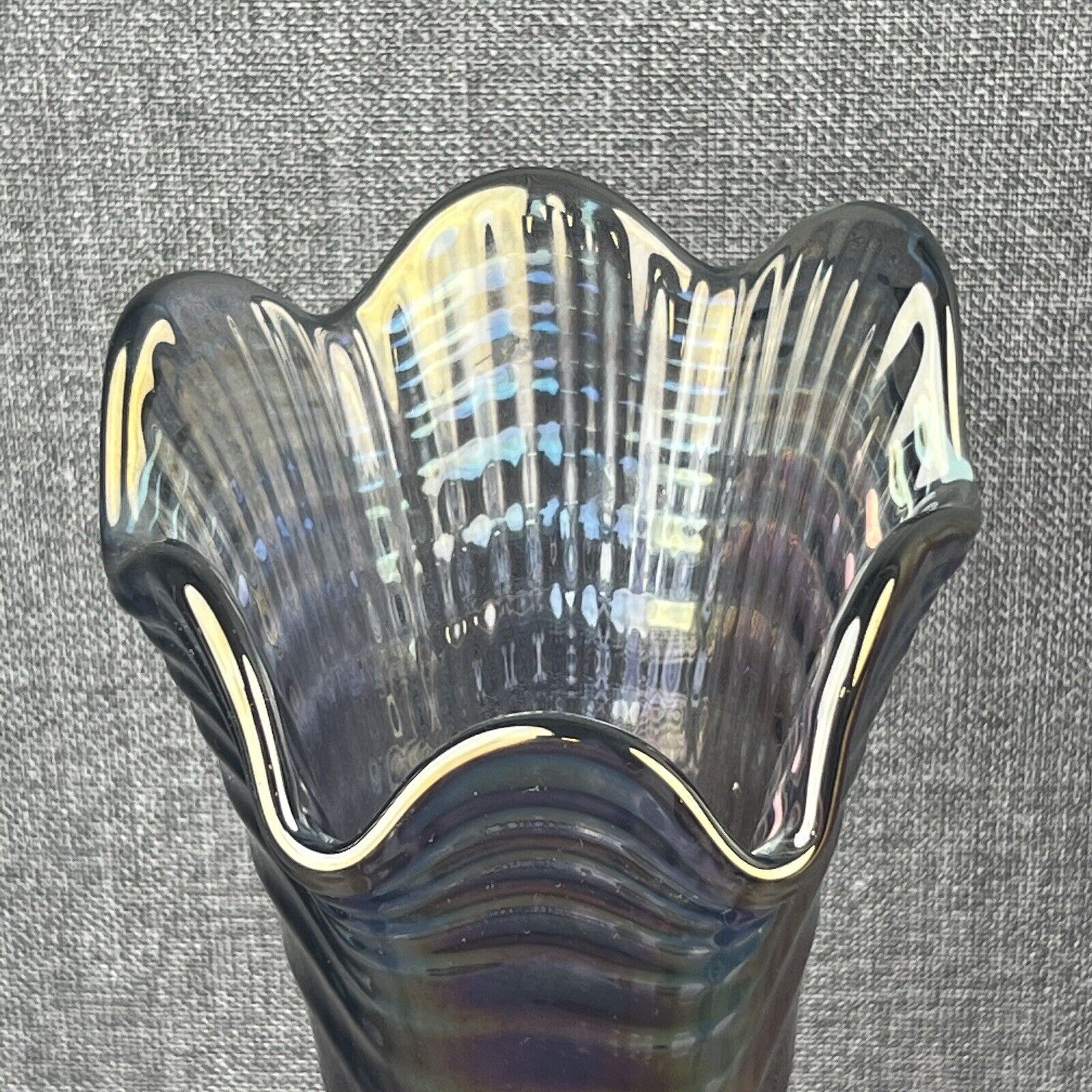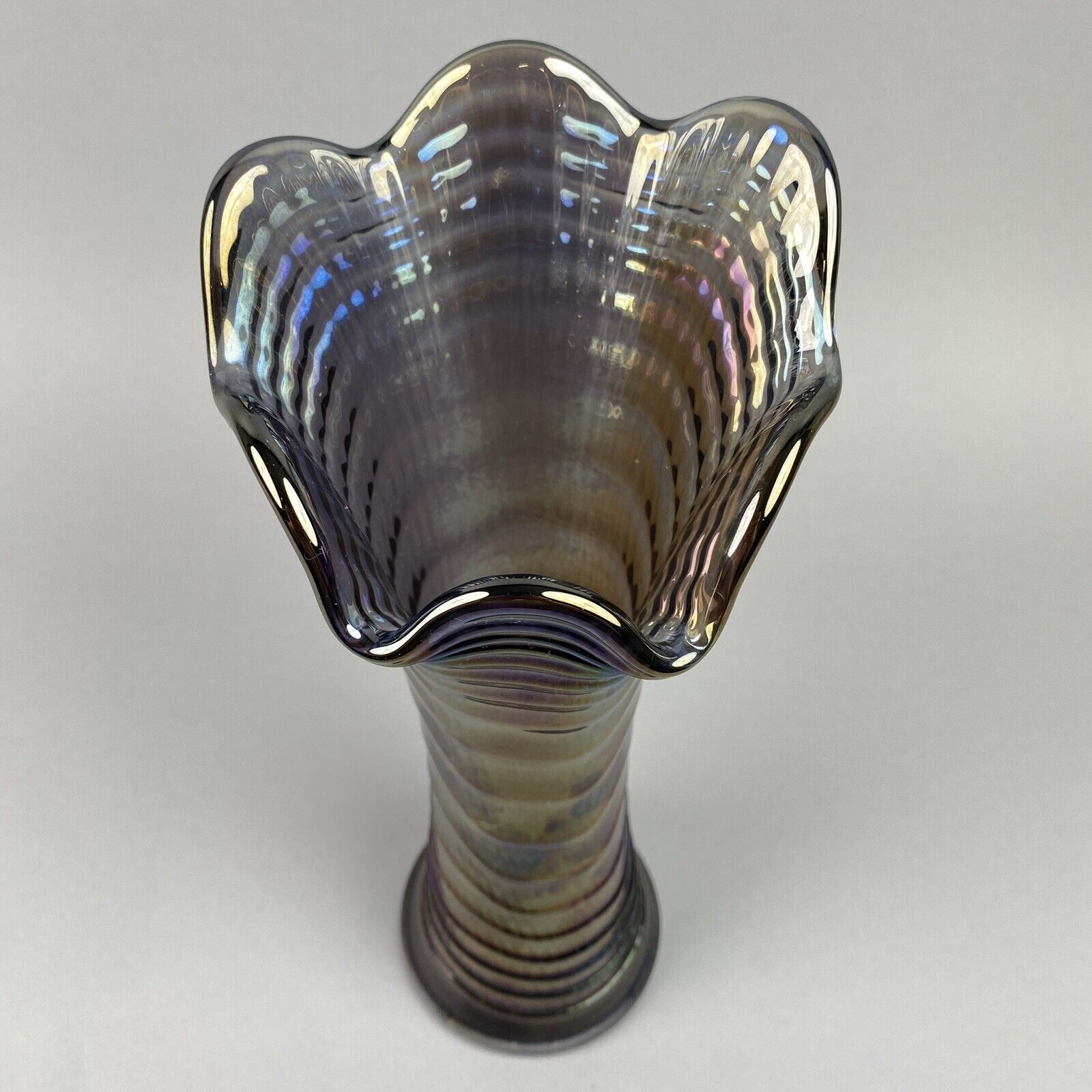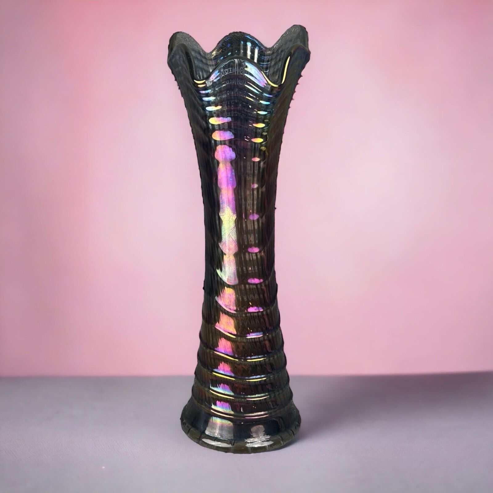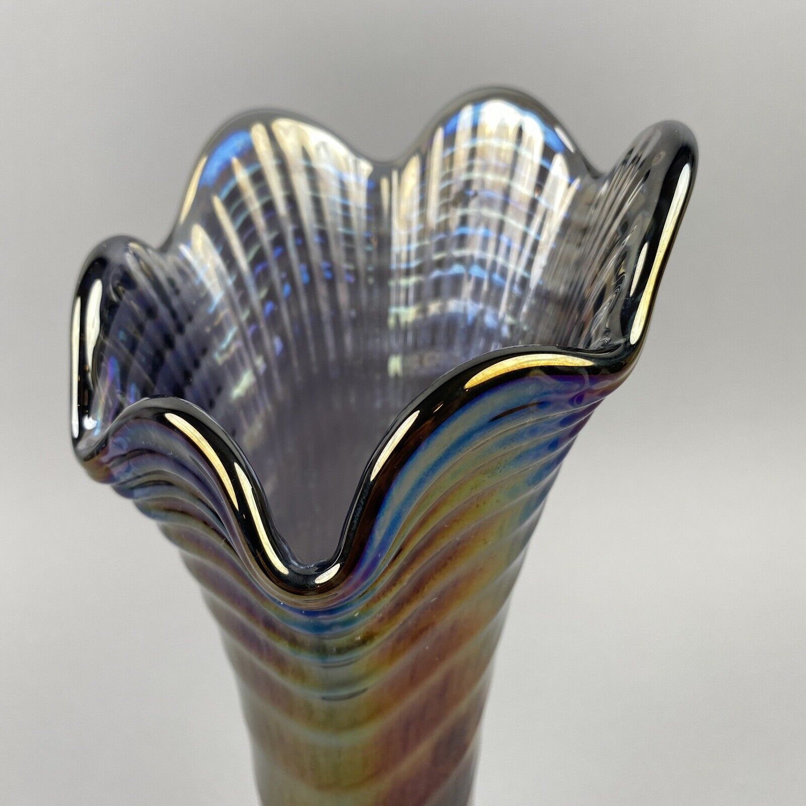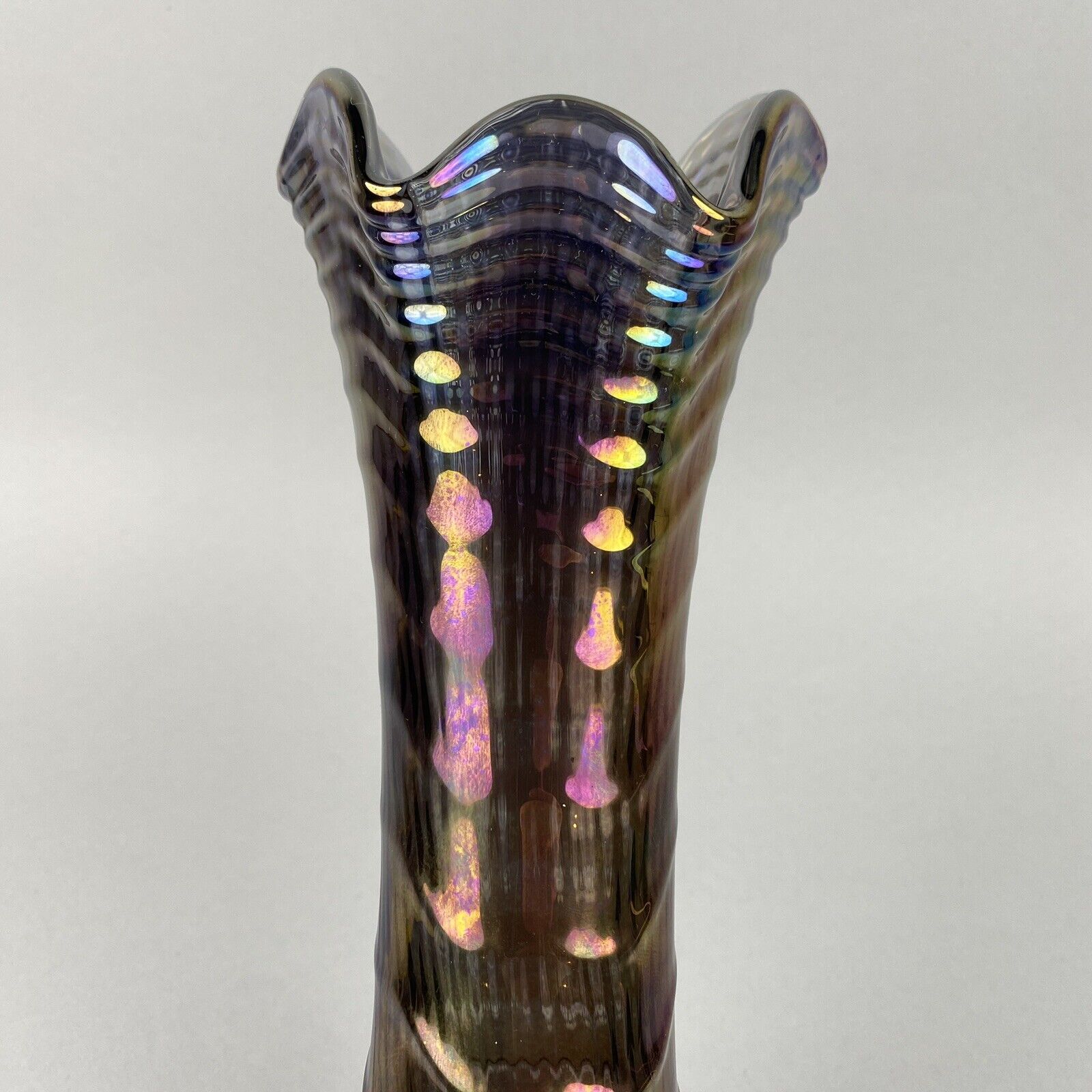 Vintage Electric Purple 12'' Amethyst Carnival Glass Vase Imperial Ripple